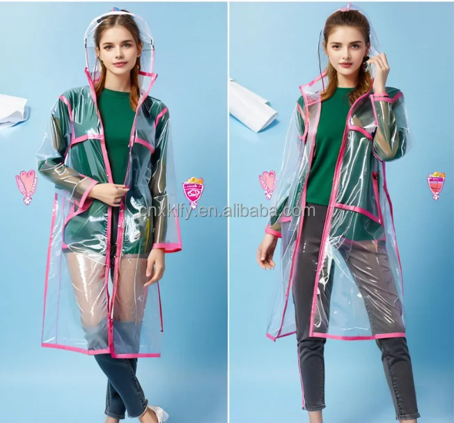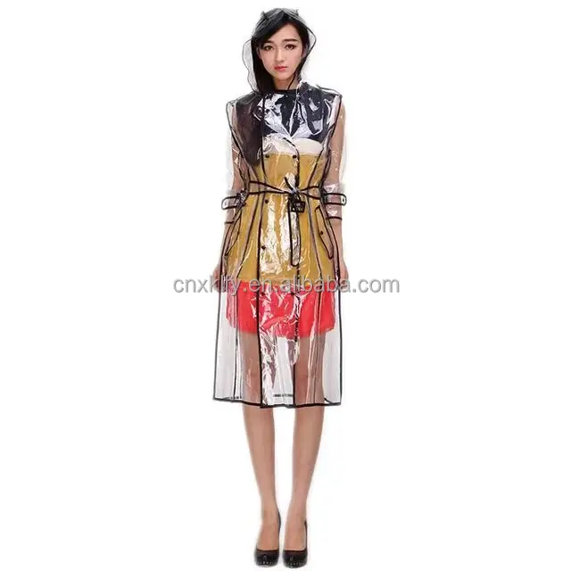 2025 Custom Transparent Waterproof Clear Plastic EVA Adult Raincoat Poncho Hiking Thickening Rainwear EVA Rain Poncho Raincoat