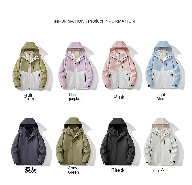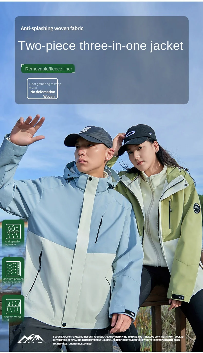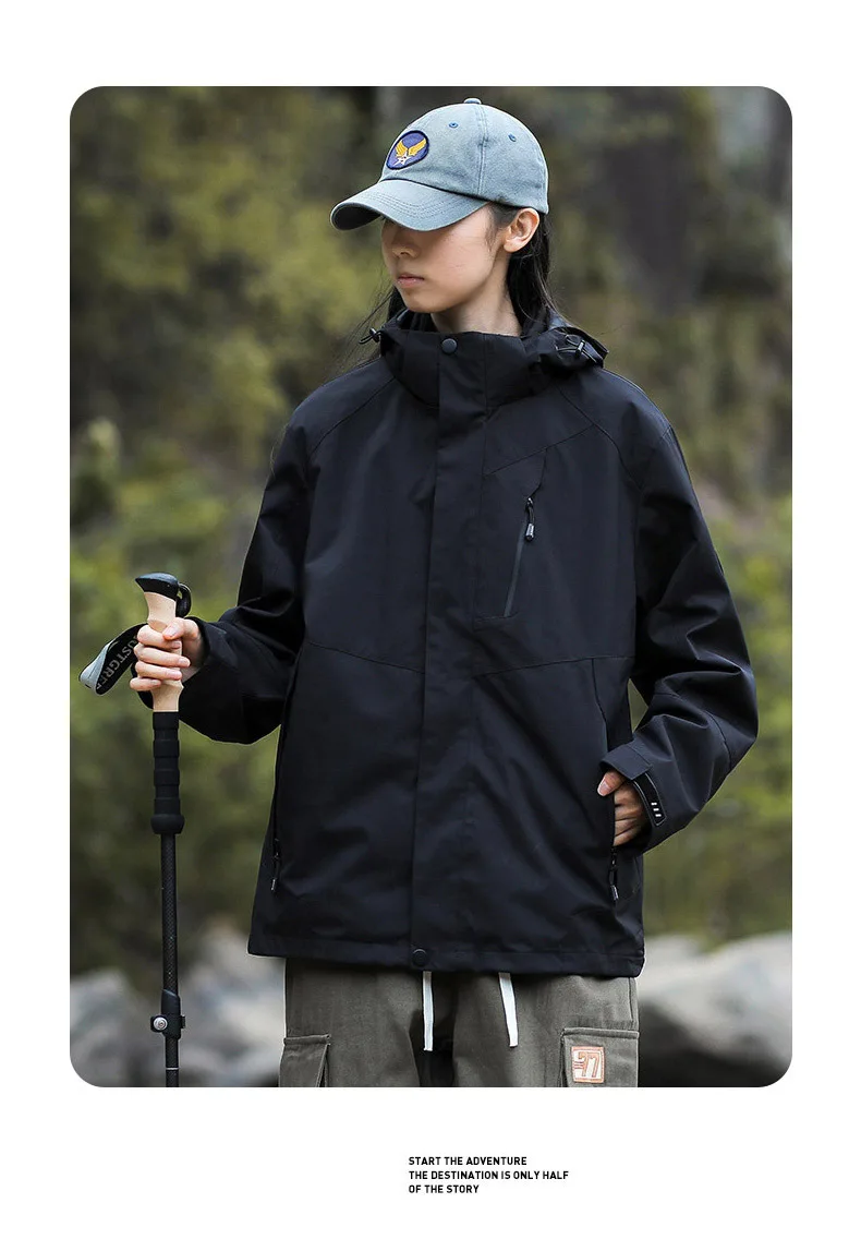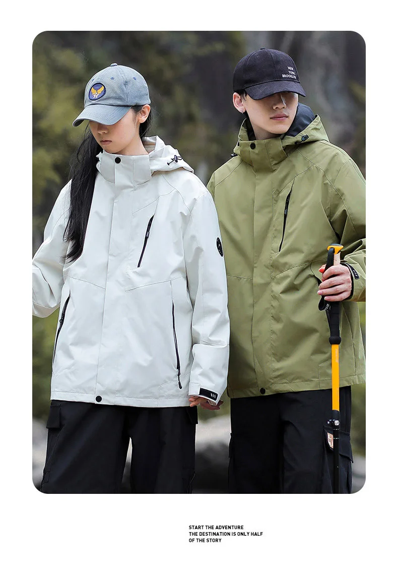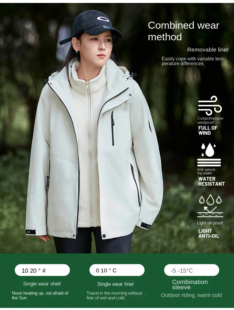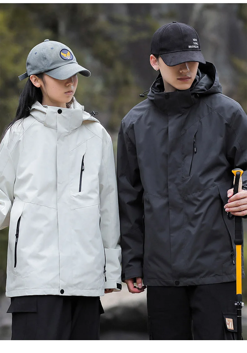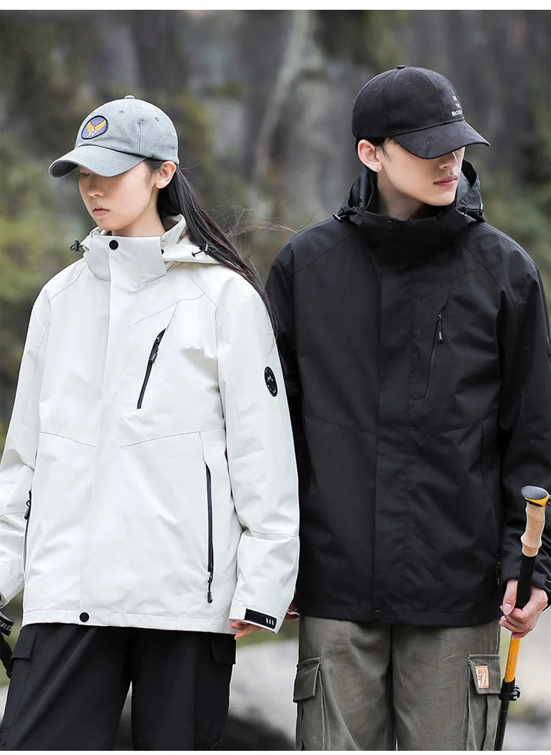 2025 Outdoor Three-in-One Coat for Men Women Hard Shell Soft Polyester Fill Stand Collar Zipper Closure XL-for Autumn Fitness