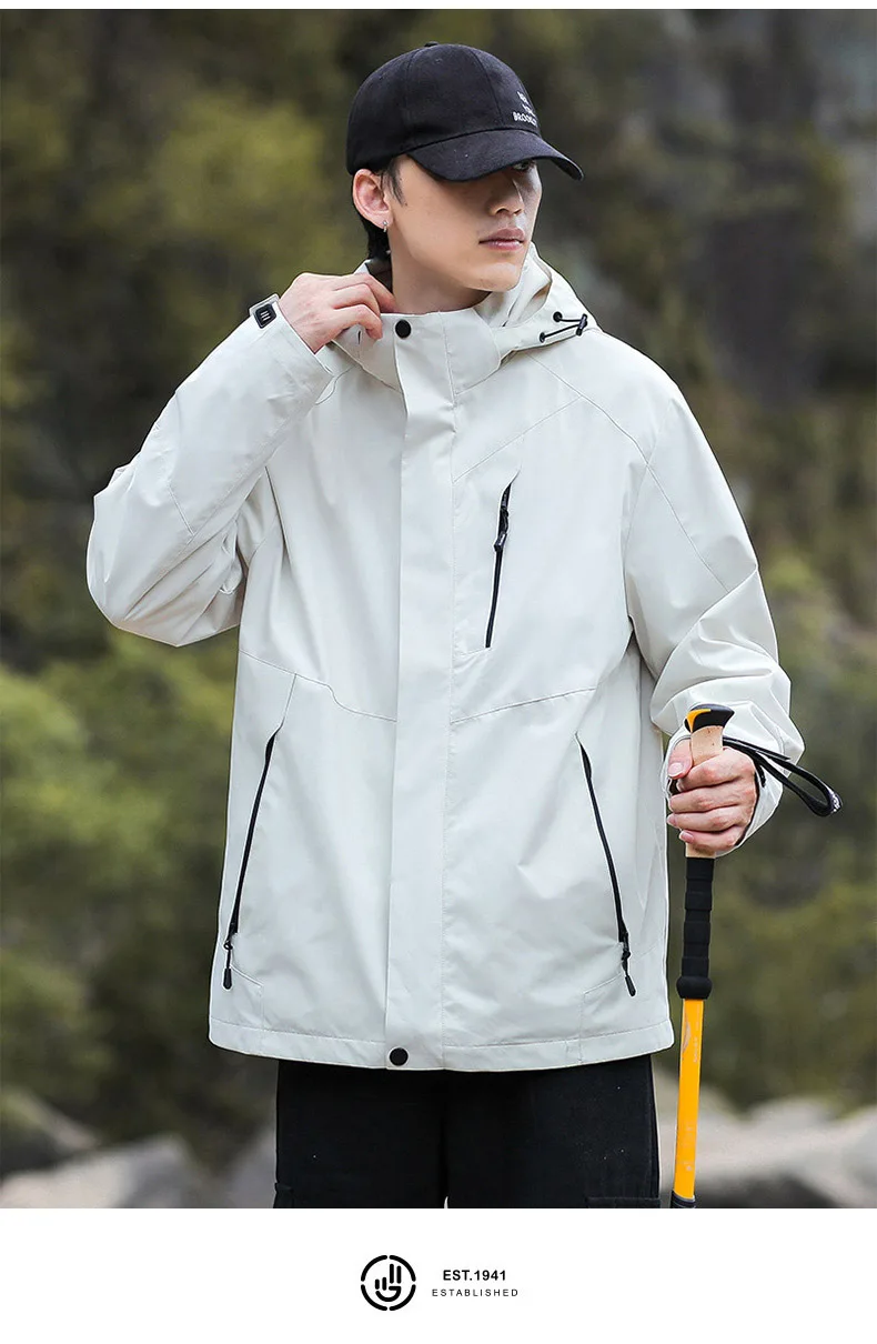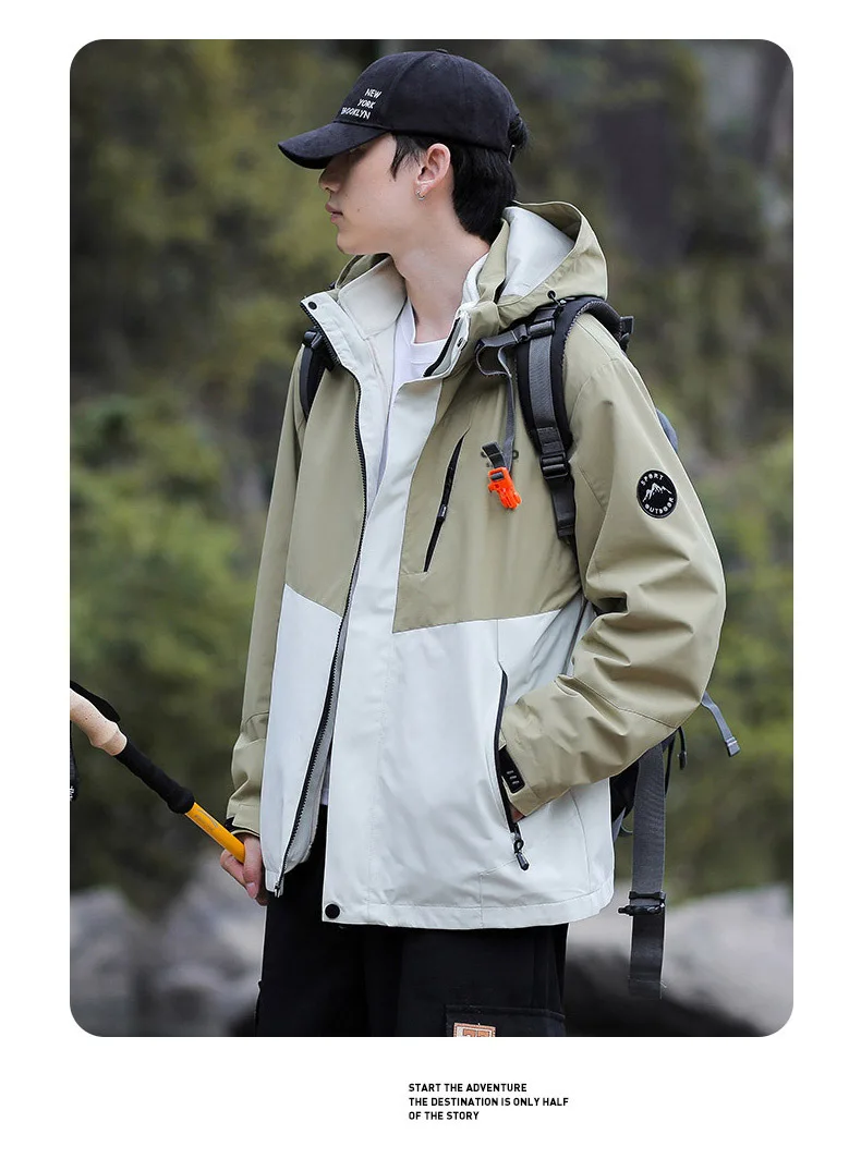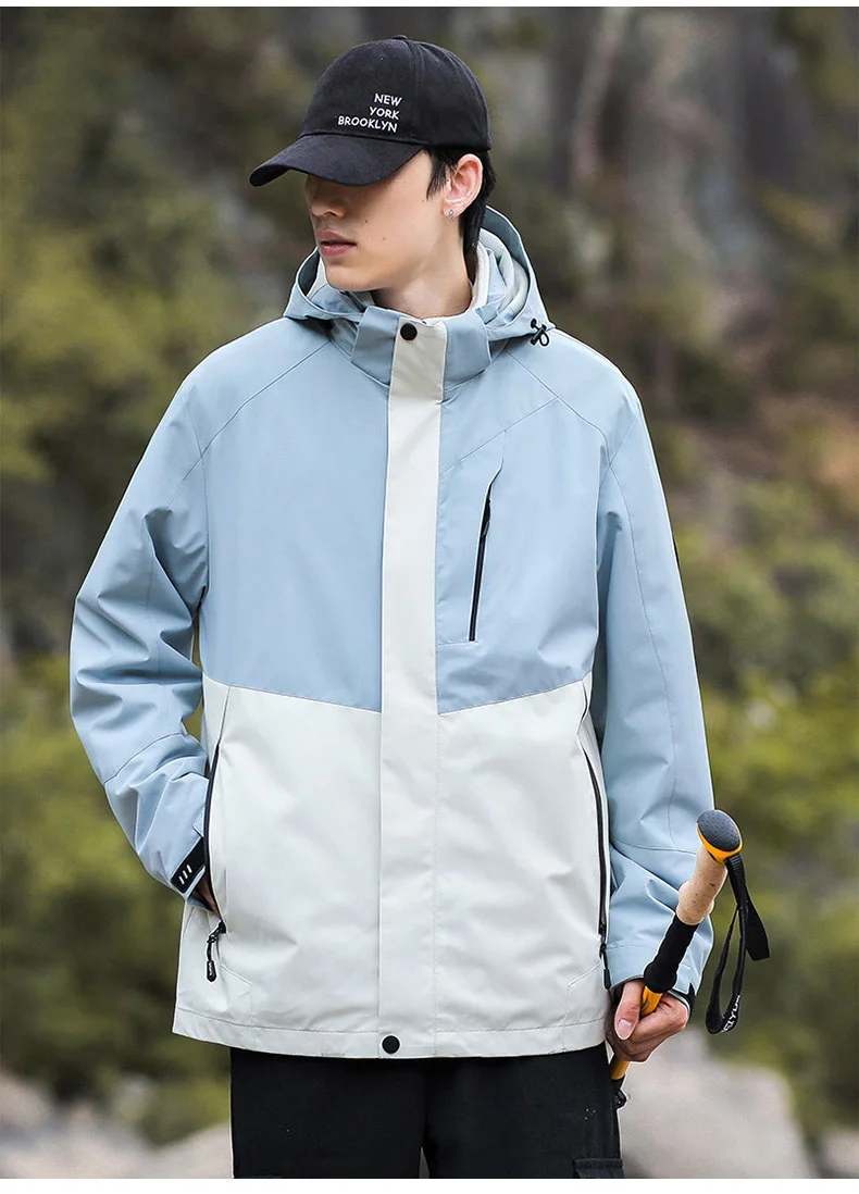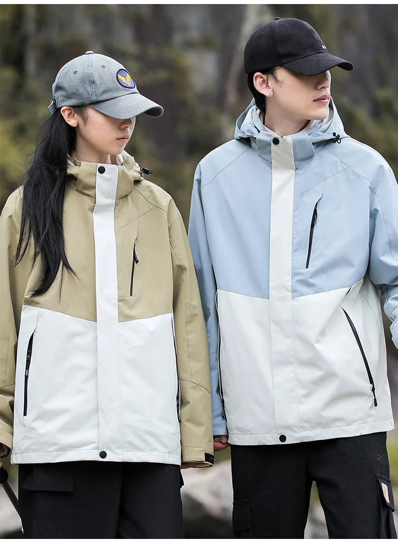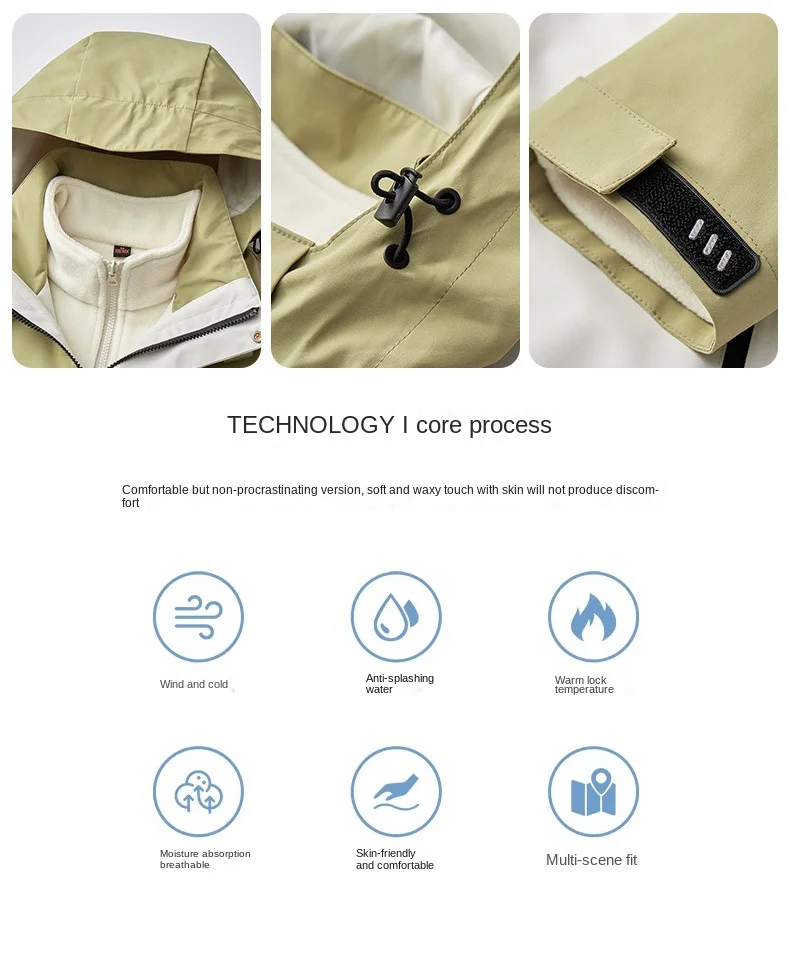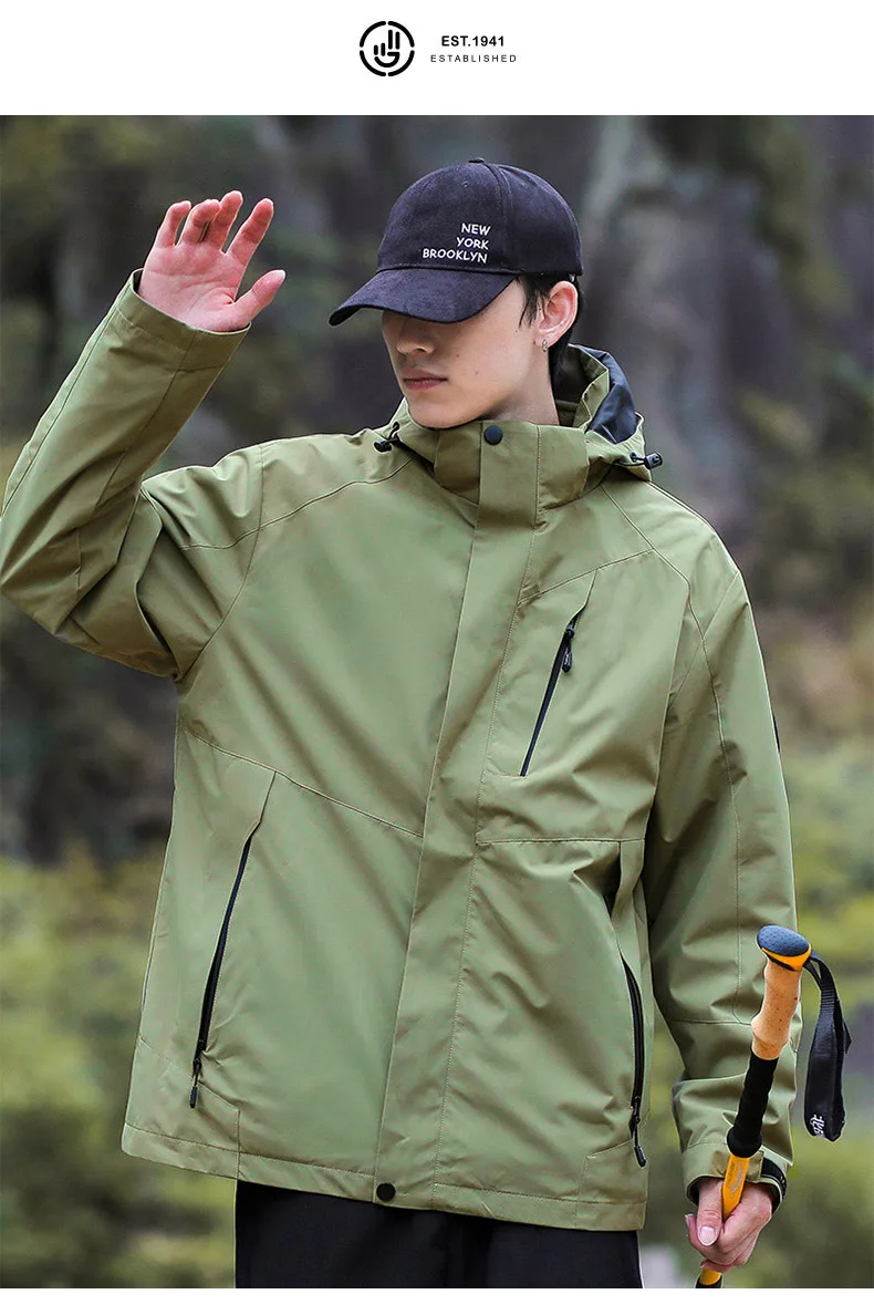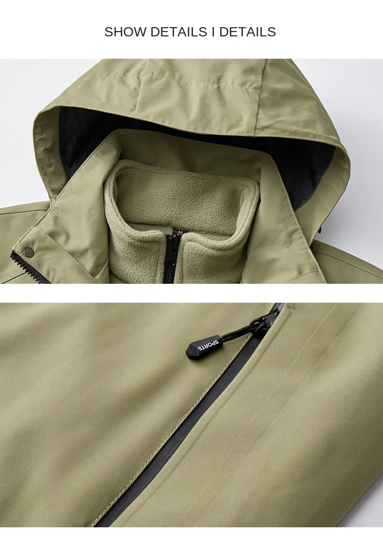 2025 Outdoor Three-in-One Coat for Men Women Hard Shell Soft Polyester Fill Stand Collar Zipper Closure XL-for Autumn Fitness