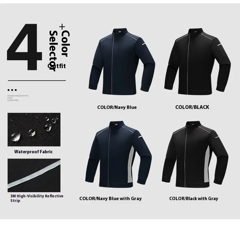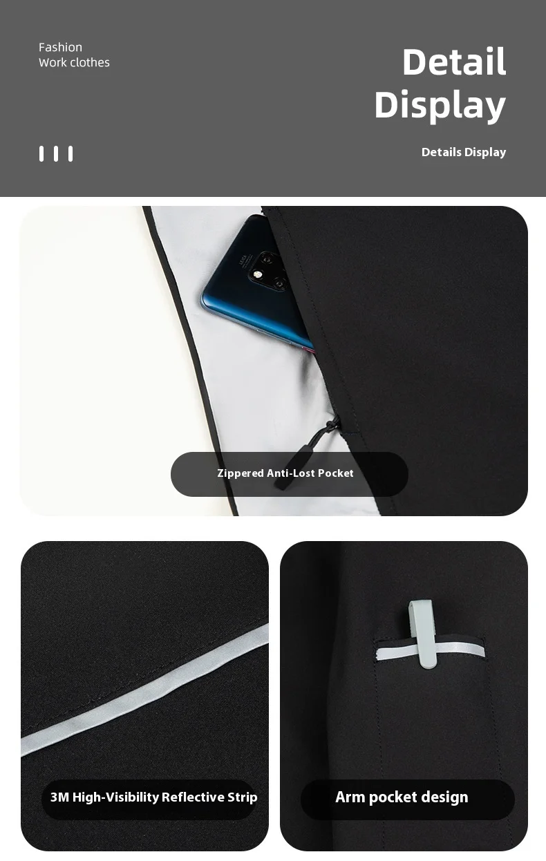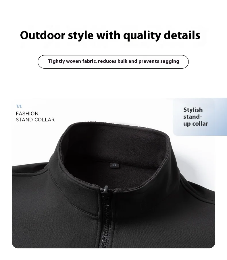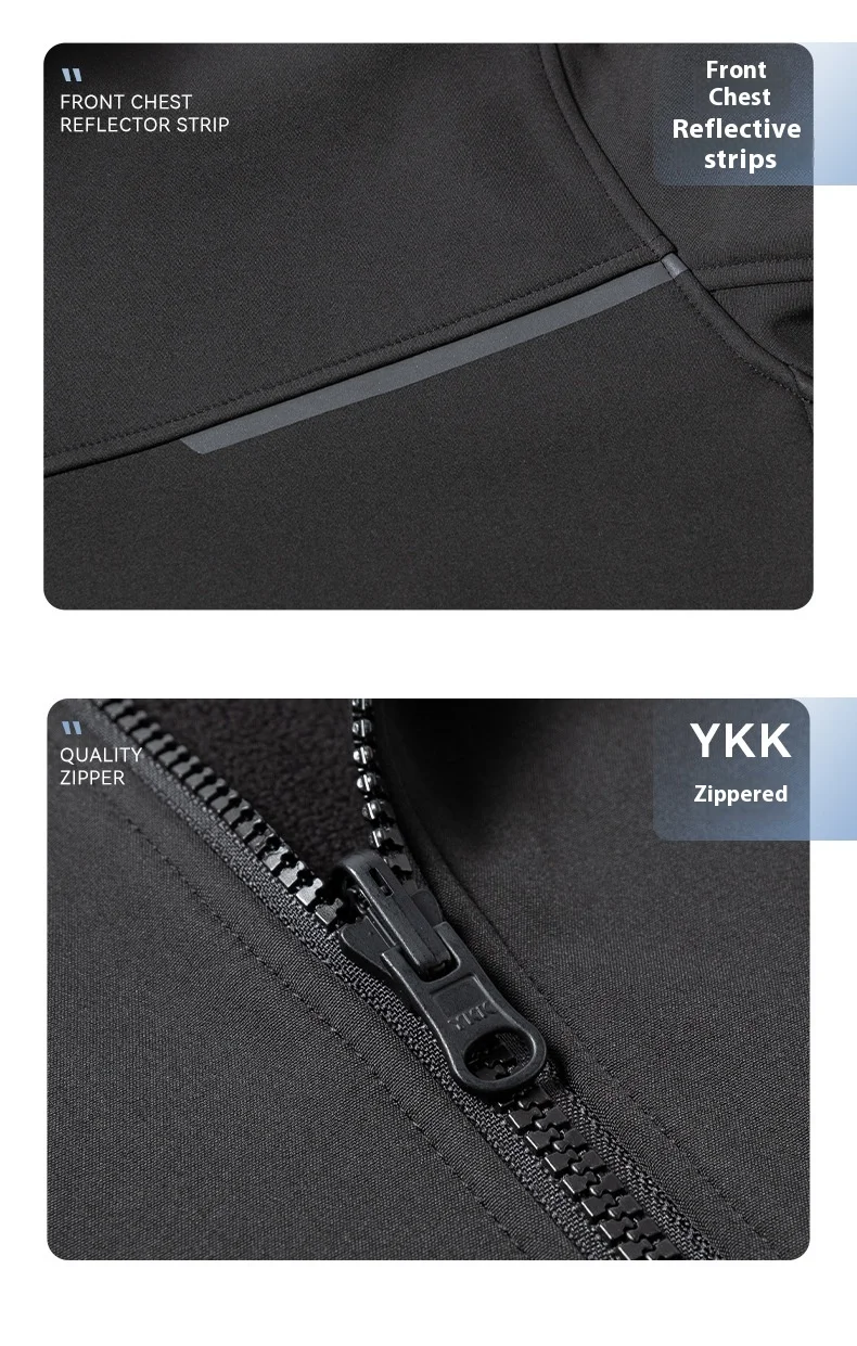 Autumn Winter Men's High-Grade Fleece-Lined Workwear Jacket Custom Logo Stand Vertical Collar Waterproof Reflective Strip Zipper