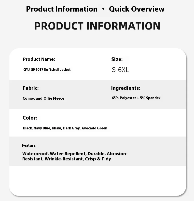 Model Number GYJ5608XM GYJ-SK6017 soft shell jacket