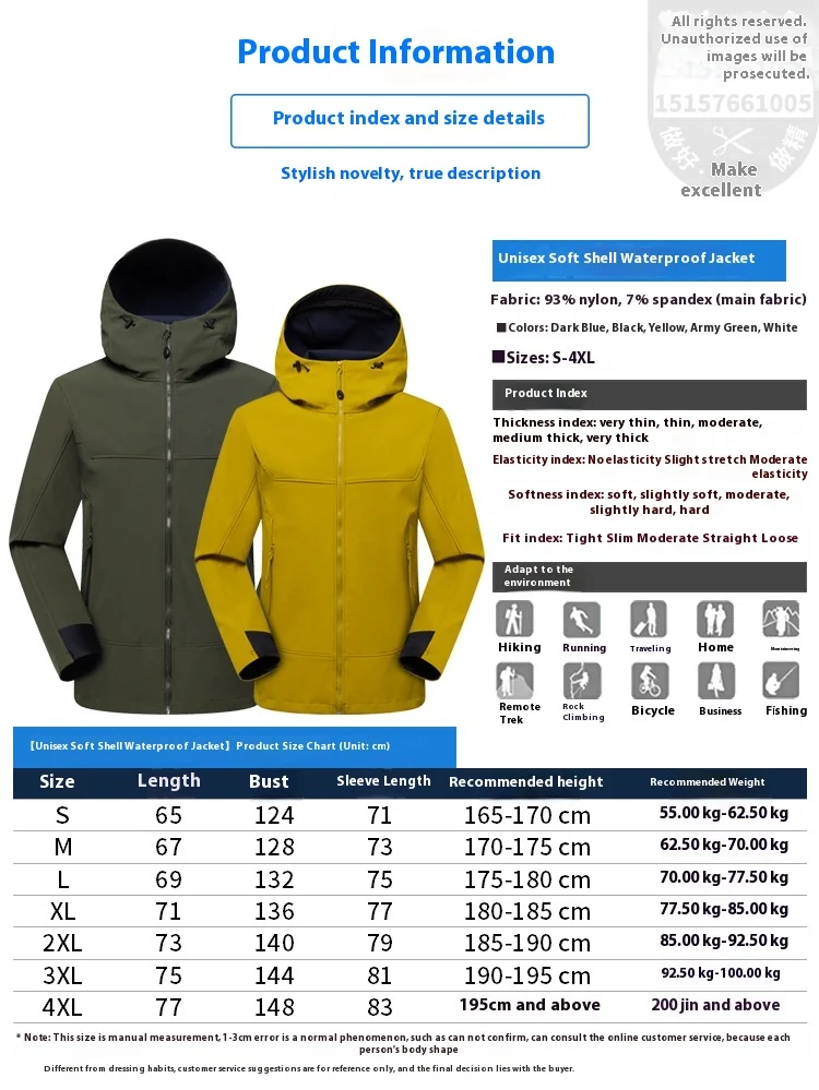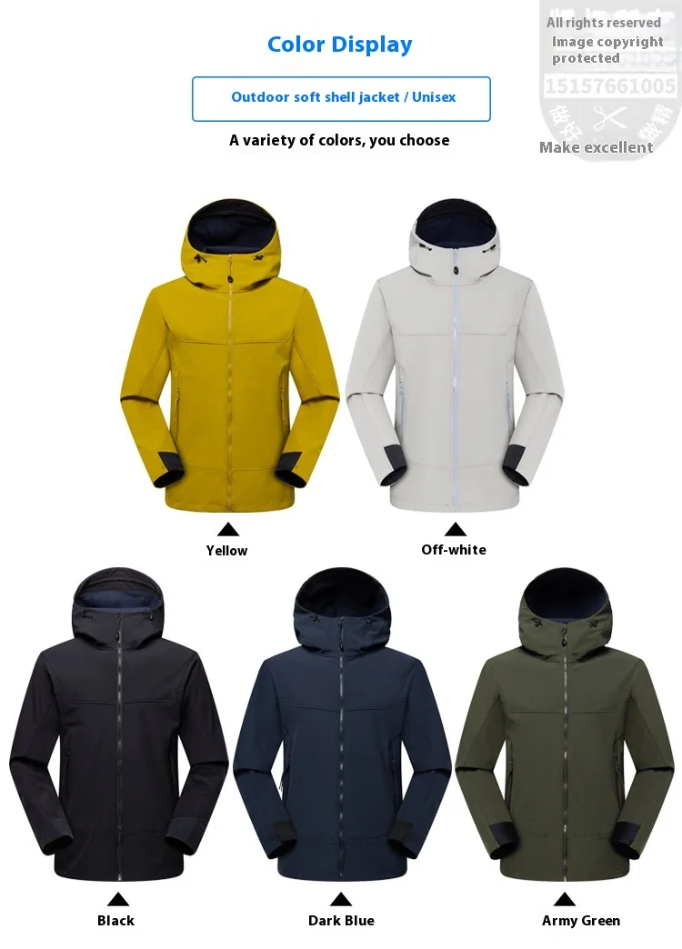 Autumn Winter Men's Waterproof Breathable Soft Shell Jacket Fleece-Lined Tough Guys for Mountaineering Cozy Coat for Outdoor