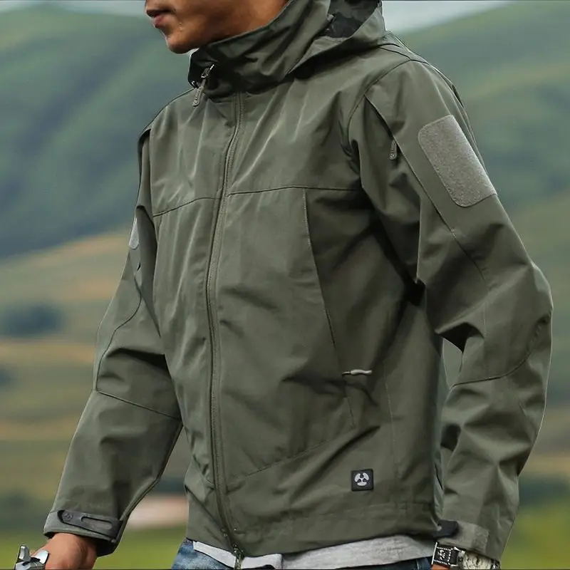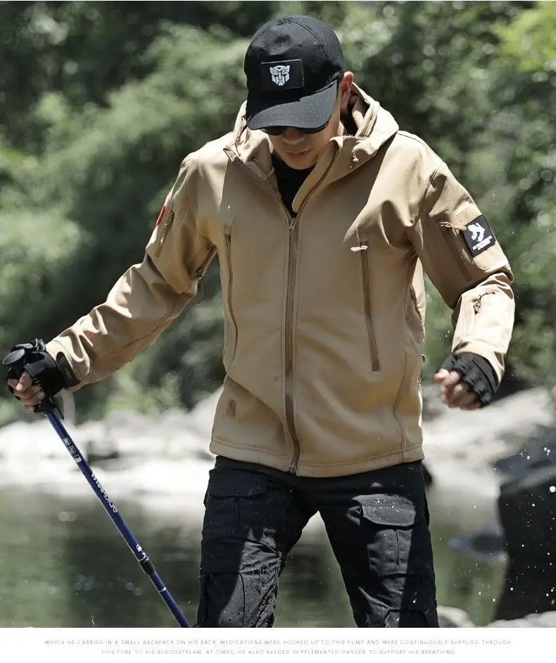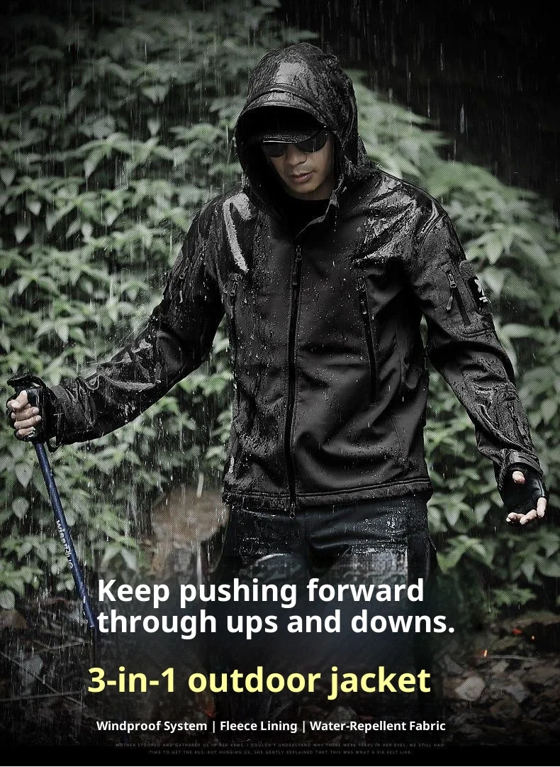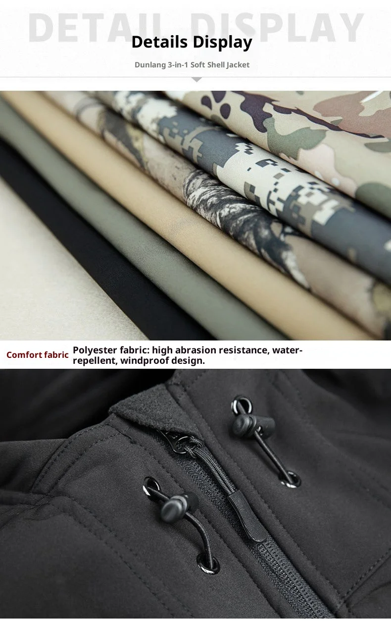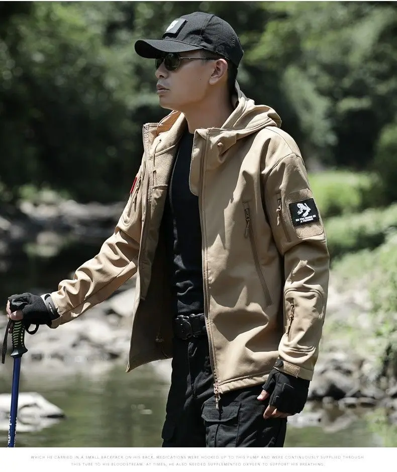 Autumn Winter Soft Shell Outdoor Clothes Men's Casual Stand Collar Jacket Windproof Waterproof Reversible Hooded Zipper Front