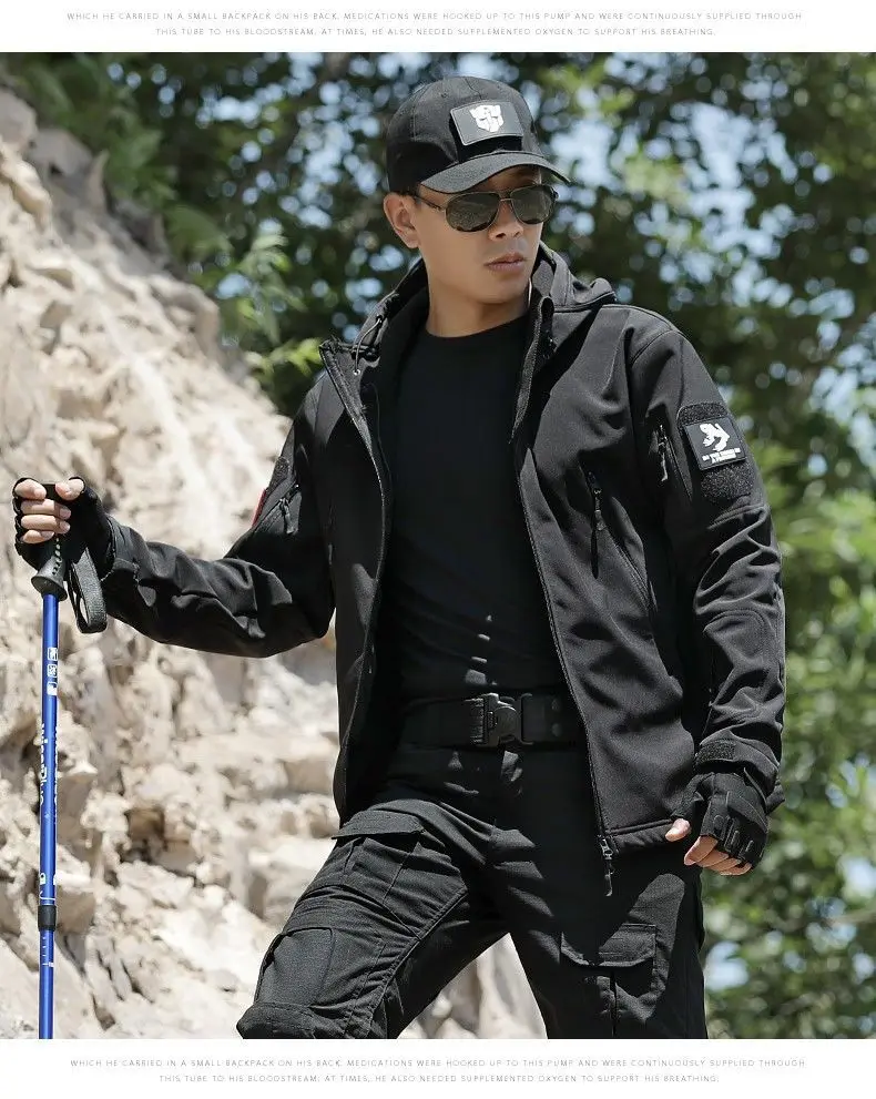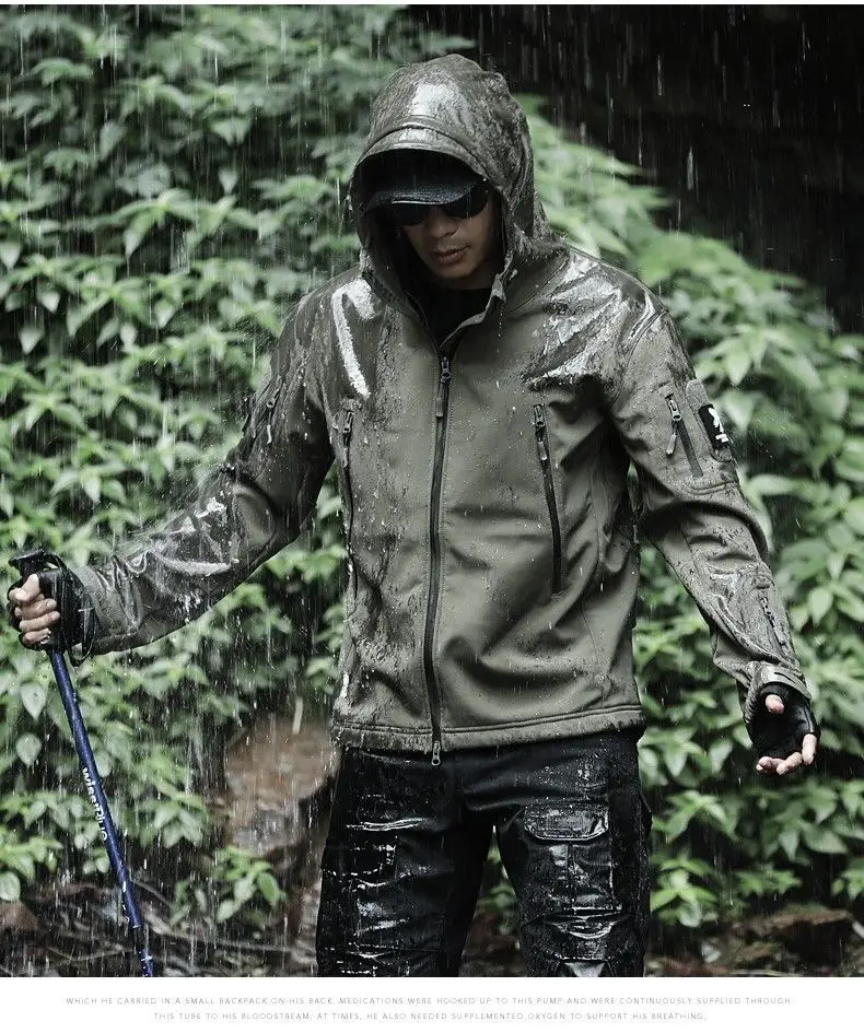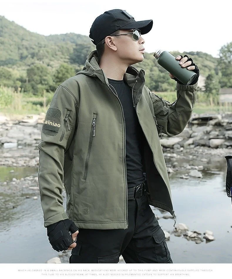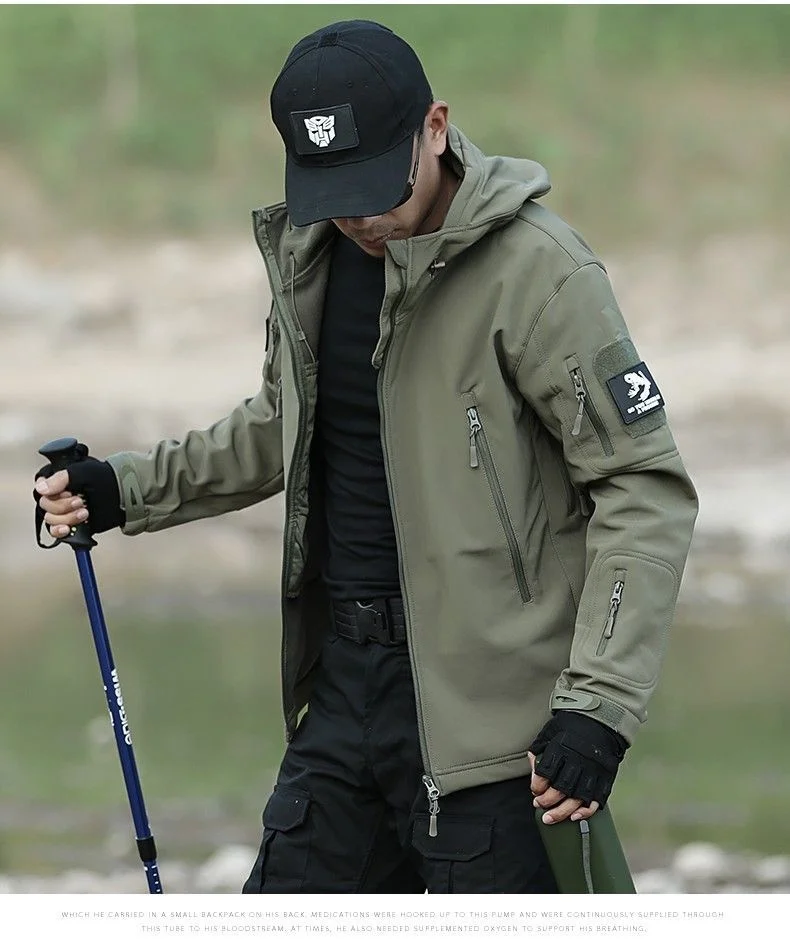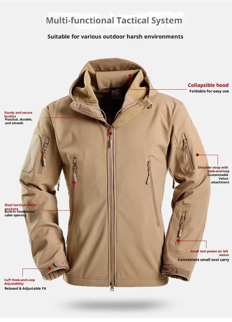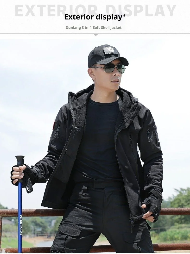 Autumn Winter Soft Shell Outdoor Clothes Men's Casual Stand Collar Jacket Windproof Waterproof Reversible Hooded Zipper Front