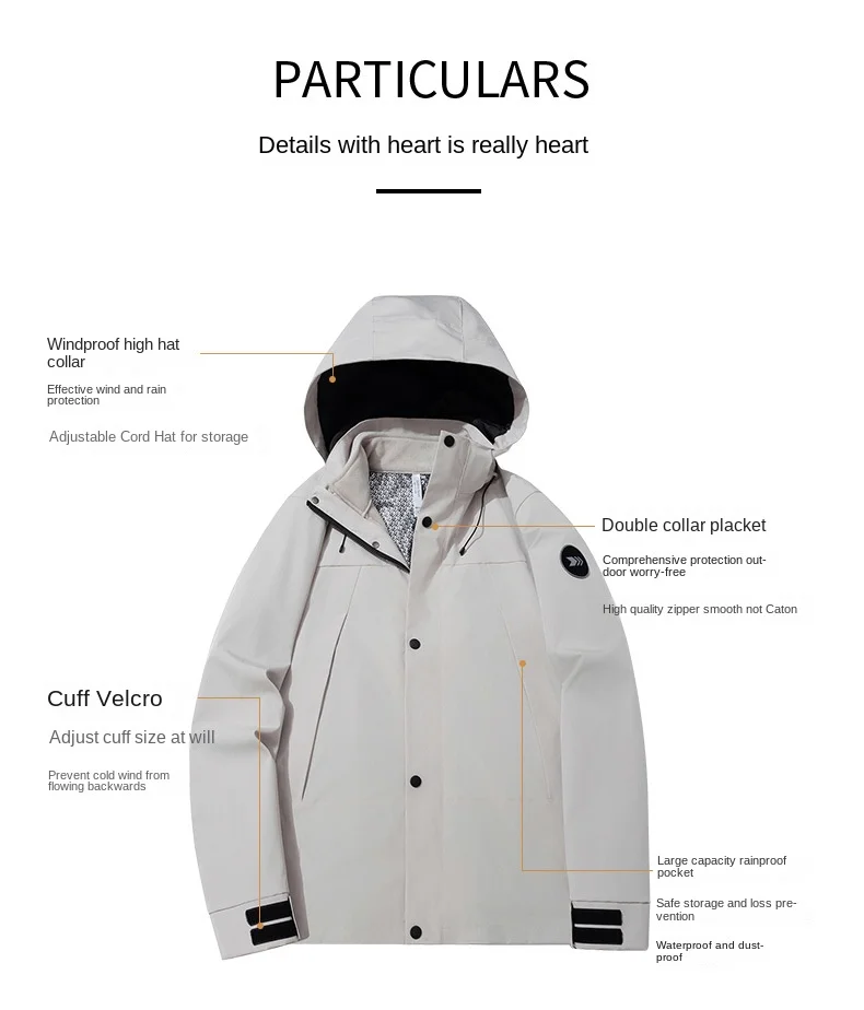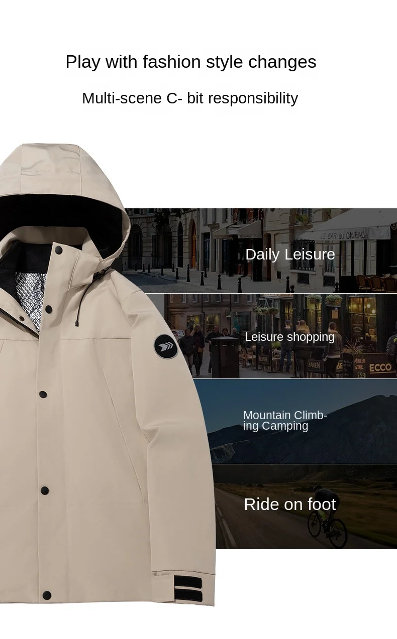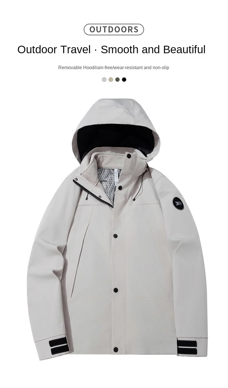 Autumn Winter Three-in-One Outdoor Two-Piece Mountaineering Suit for Men Women Stand Zipper Windproof Thickened Warm Jacket