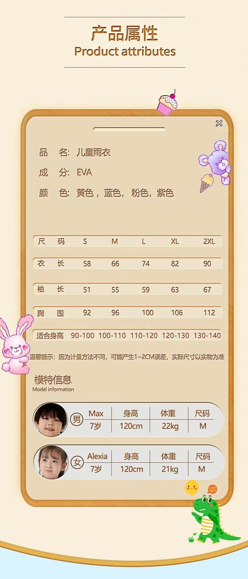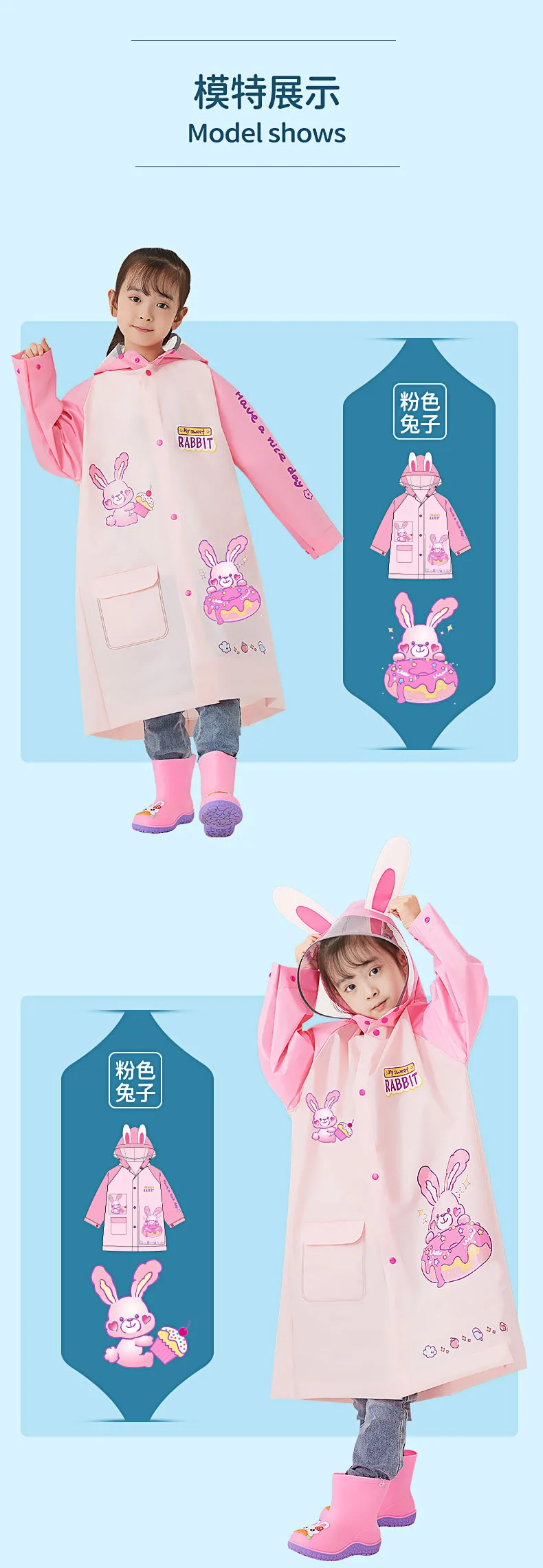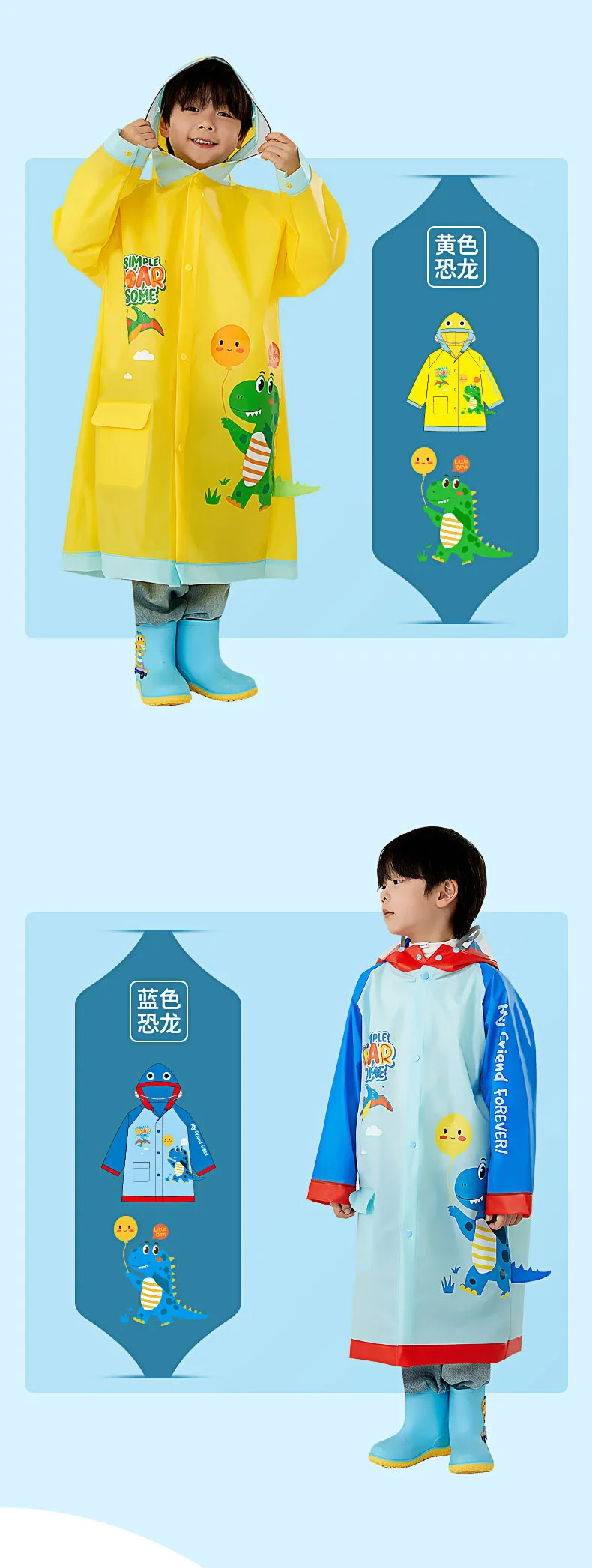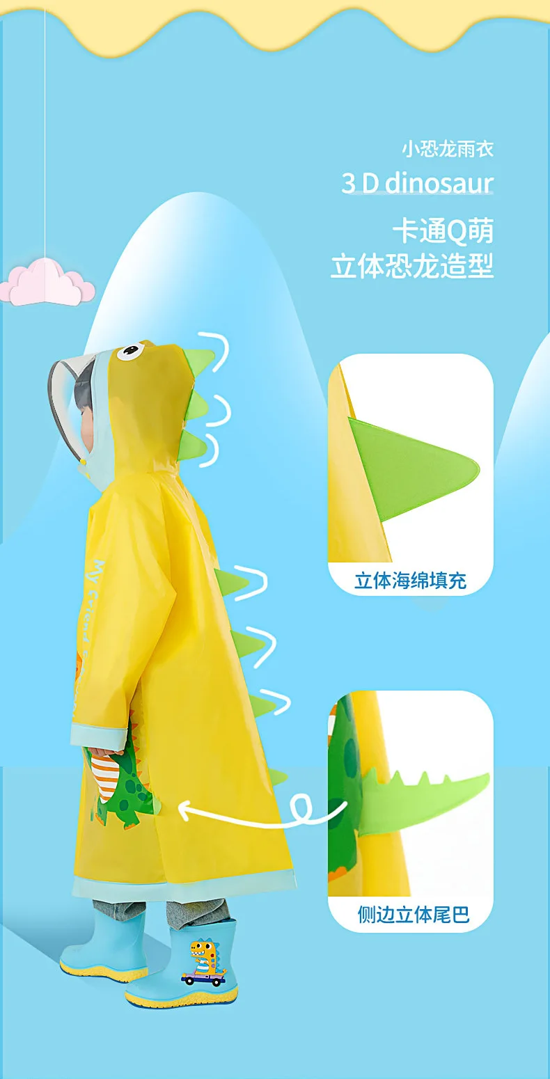 Cartoon Style EVA Children's Waterproof Raincoat and Invisible Backpack, Suitable for Boys and Girls to Use on Rainy Days