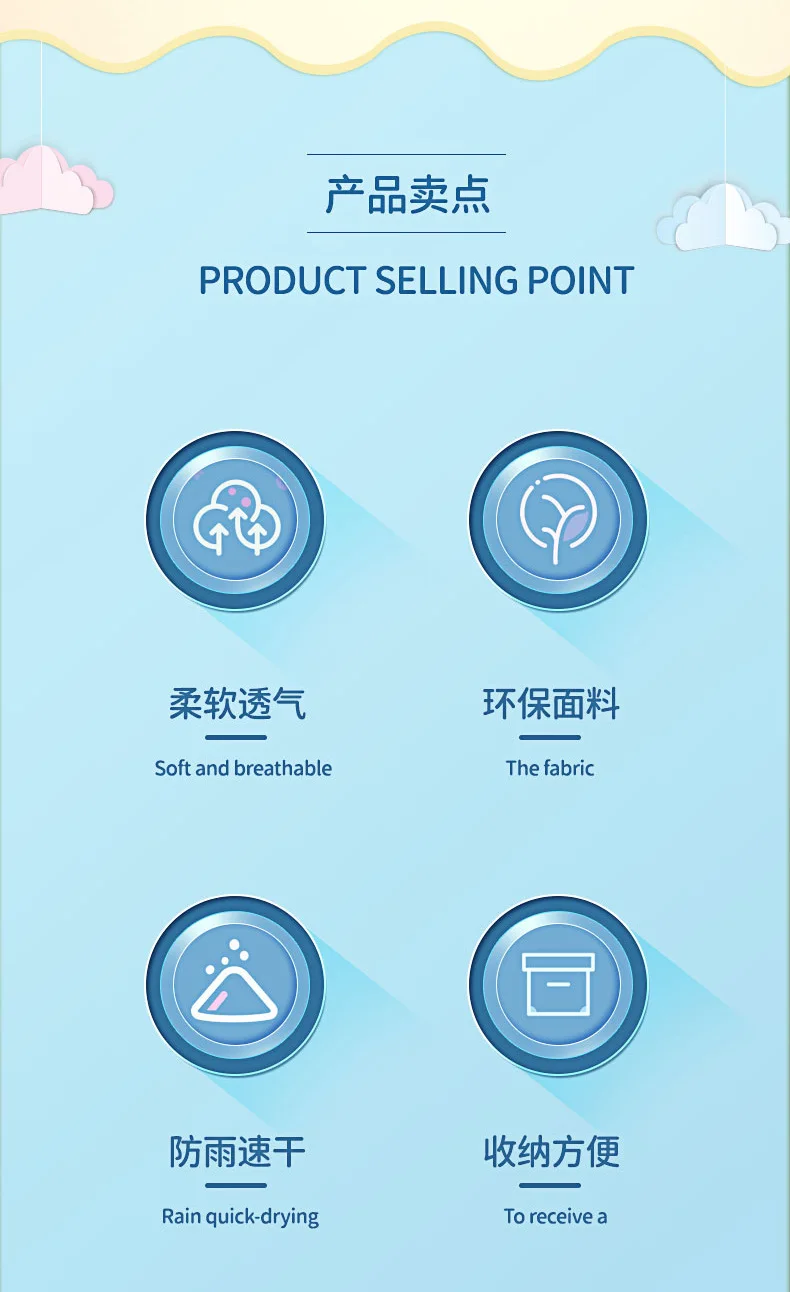 The XIAOKONGLONG raincoat innovatively applies new materials of health and environmental protection, and combines elements such as natural environmental protection, comfort and fashion, ease and convenience to create a professional and fashionable raincoat style. The product structure is unique, creative, practical and novel, and has won more than ten patents and more than thirty edition rights. The company adheres to the brand road, has a professional R & D department, and has served B. duck, Disney, duomiao house, KK tree, PAW Patrol and other well-known brands at home and abroad.