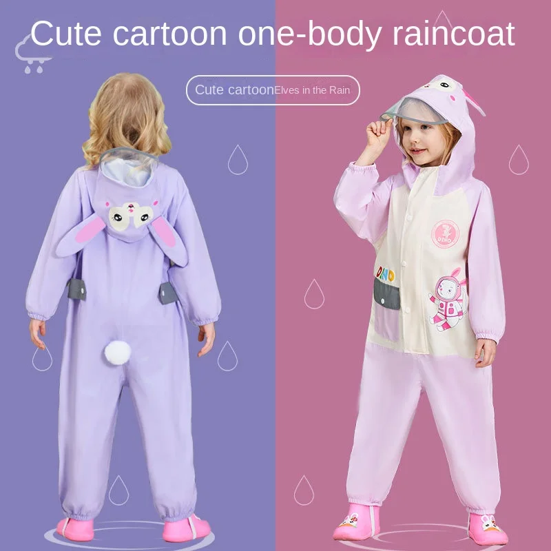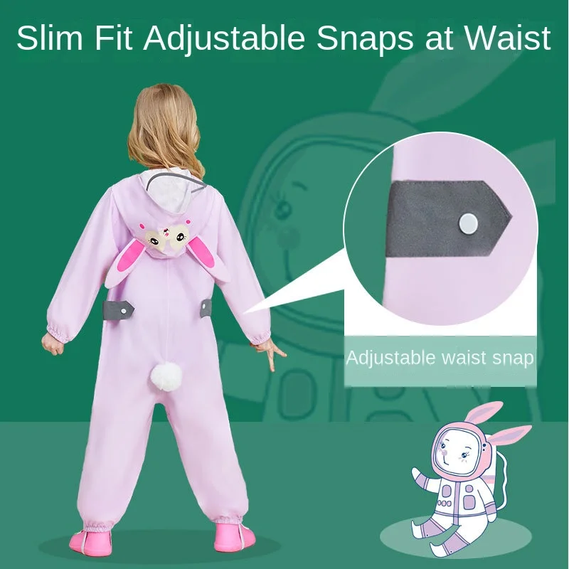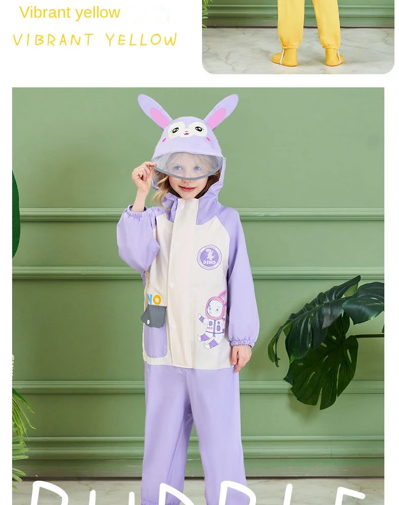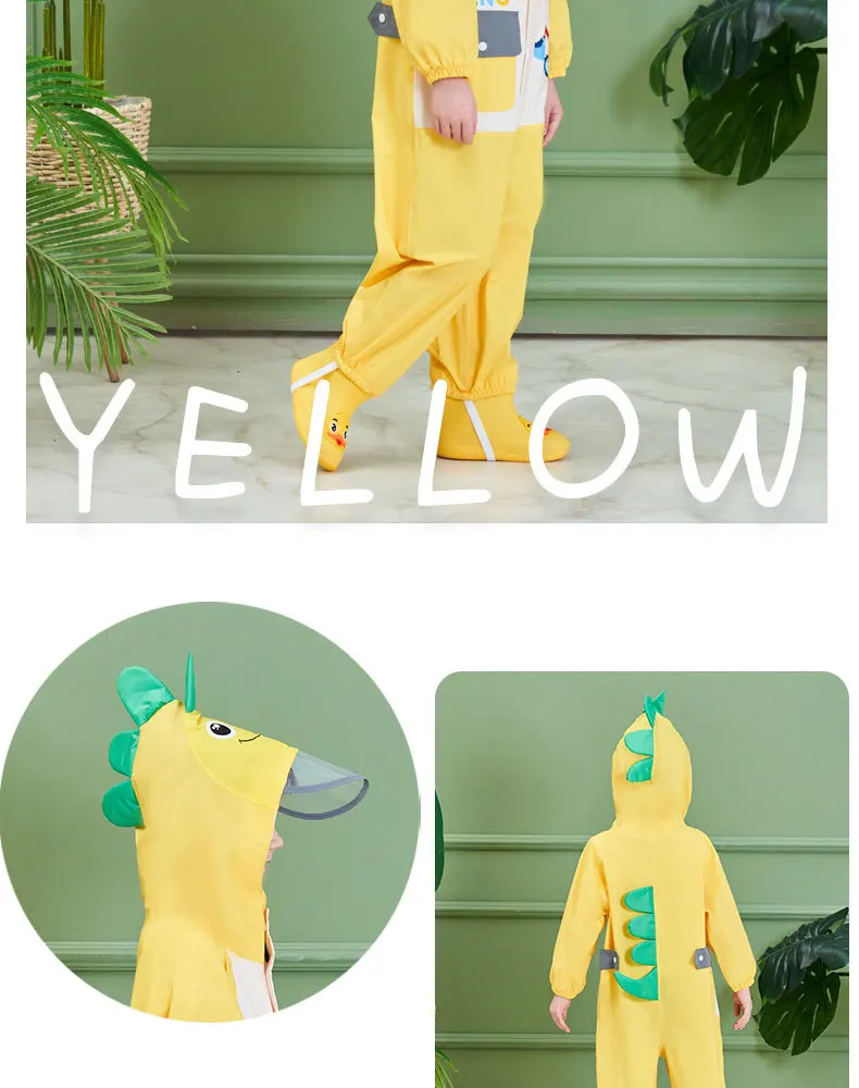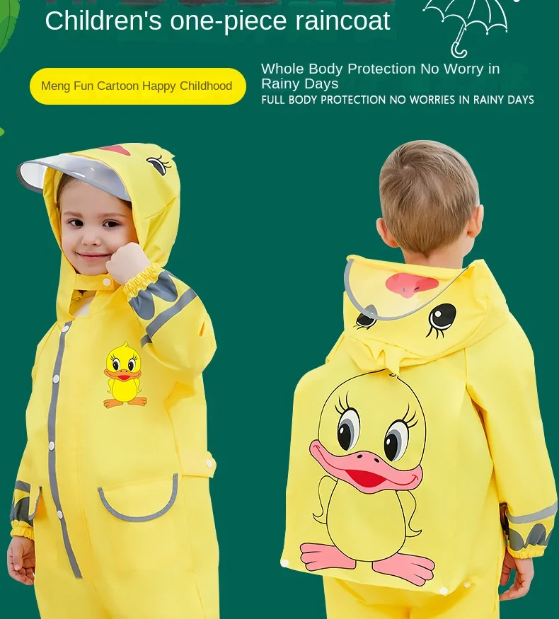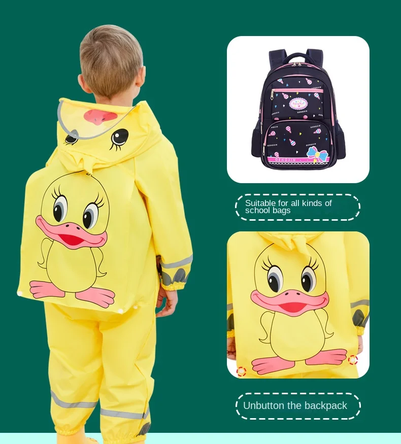 Children's Full Body Waterproof Protective Raincoat and Pants with Cartoon Yellow Duck Belt Backpack for Boys and Girls