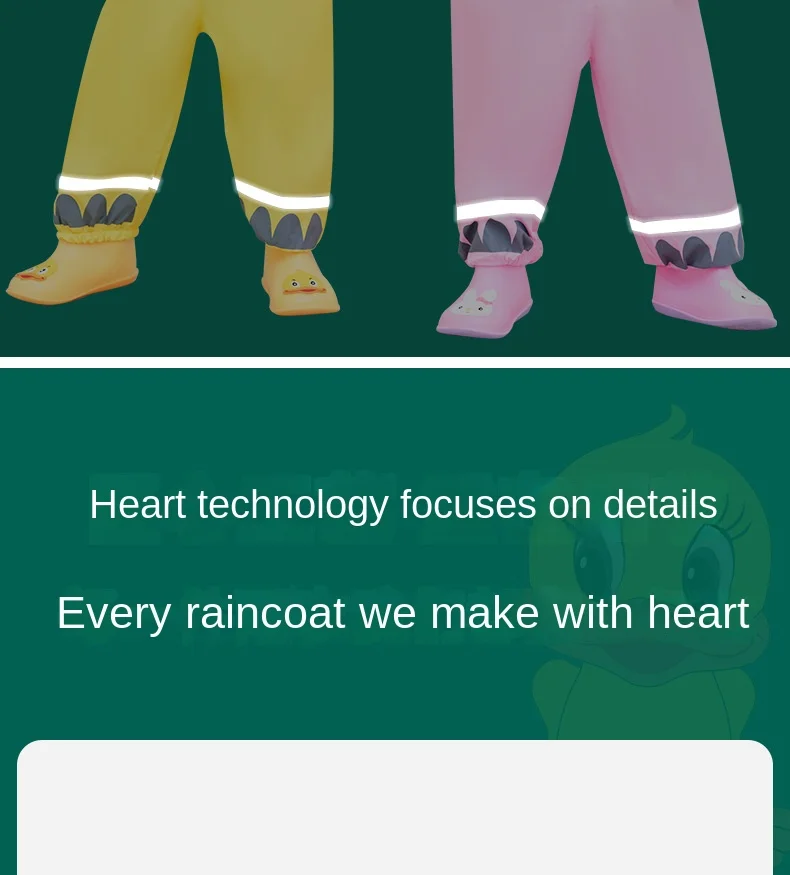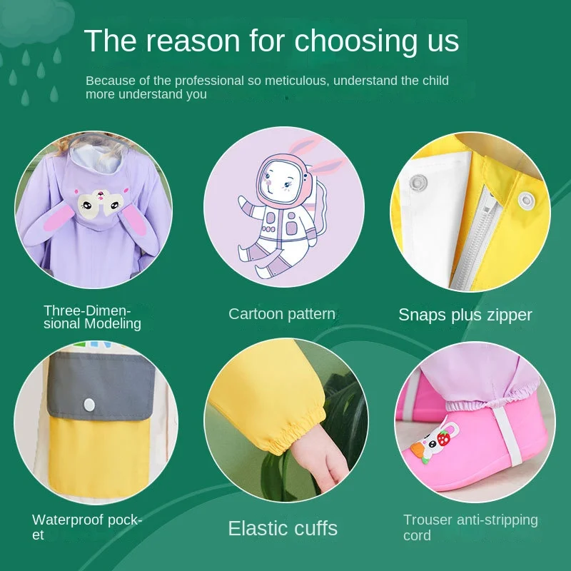 The XIAOKONGLONG raincoat innovatively applies new materials of health and environmental protection, and combines elements such as natural environmental protection, comfort and fashion, ease and convenience to create a professional and fashionable raincoat style. The product structure is unique, creative, practical and novel, and has won more than ten patents and more than thirty edition rights. The company adheres to the brand road, has a professional R & D department, and has served B. duck, Disney, duomiao house, KK tree, PAW Patrol and other well-known brands at home and abroad.