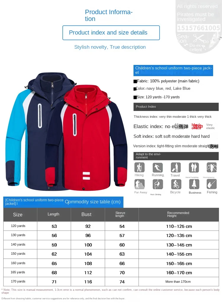 Cold-Proof Fleece-Lined Two-Piece School Uniform Primary Secondary Students' Autumn Winter Coat for Kindergarten Garden for
