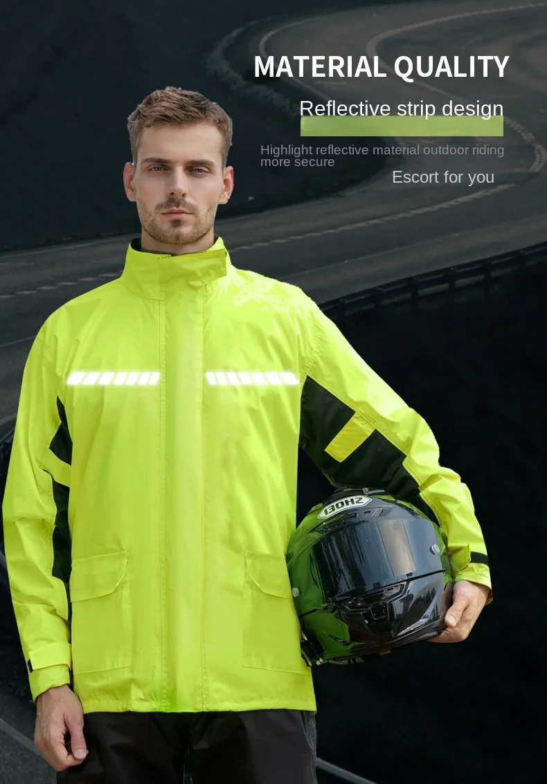 The motorcycle rain suit is made of Nylon, a high-quality, durable material that provides excellent protection from water and wind. This ensures that you stay comfortable and dry during rainy days, while also being able to withstand the challenges of outdoor activities.