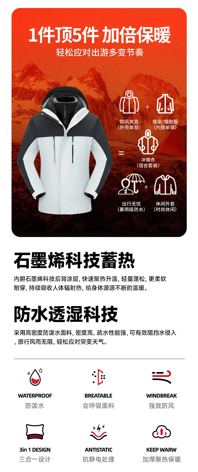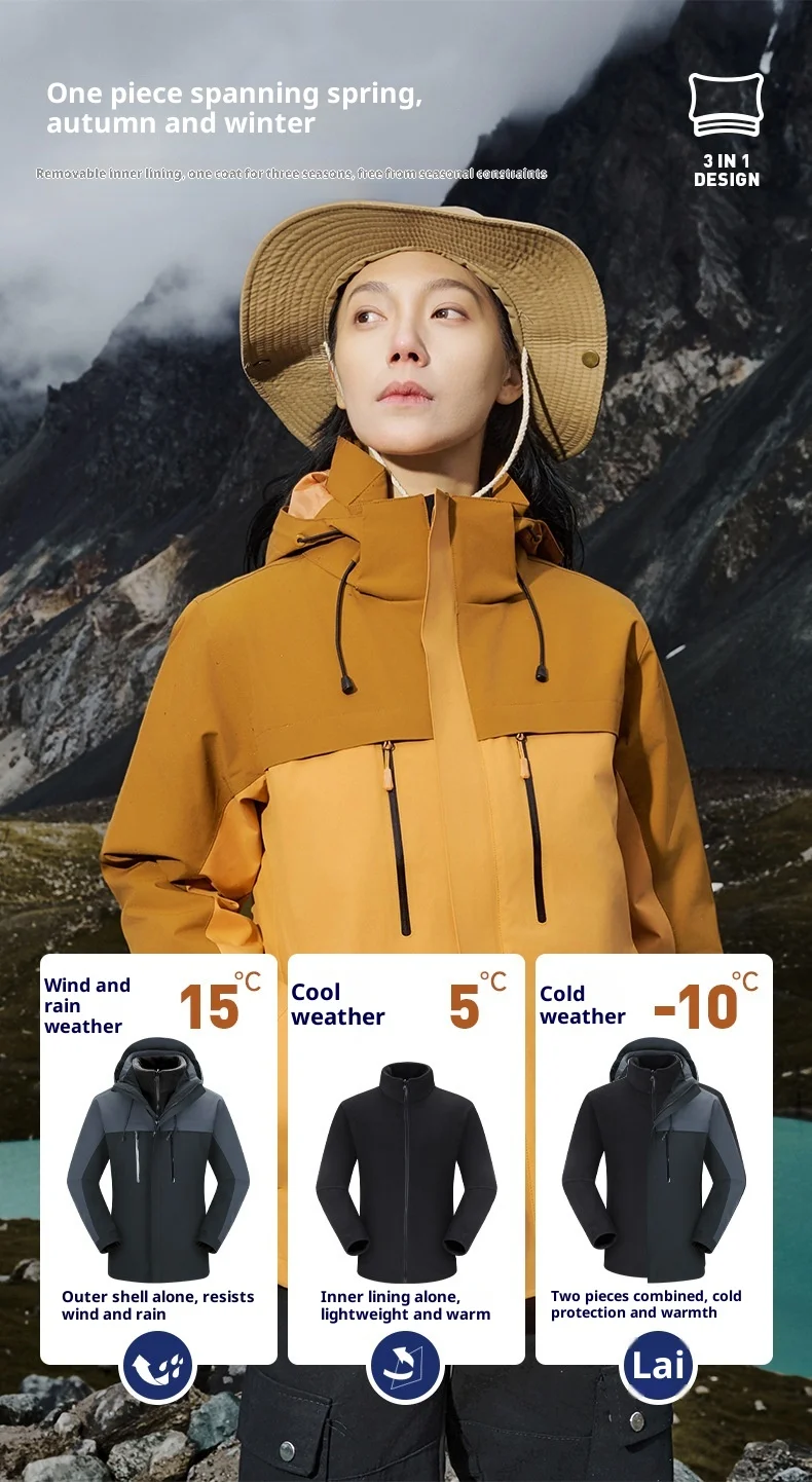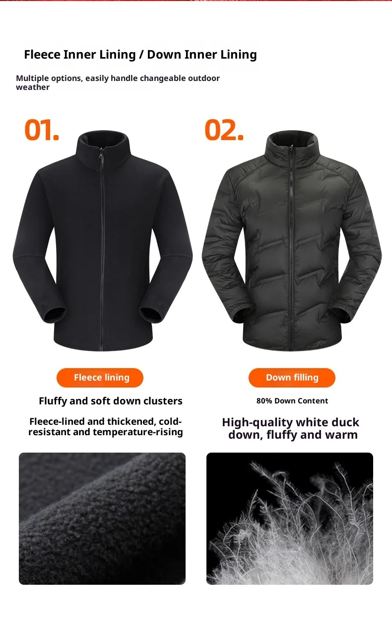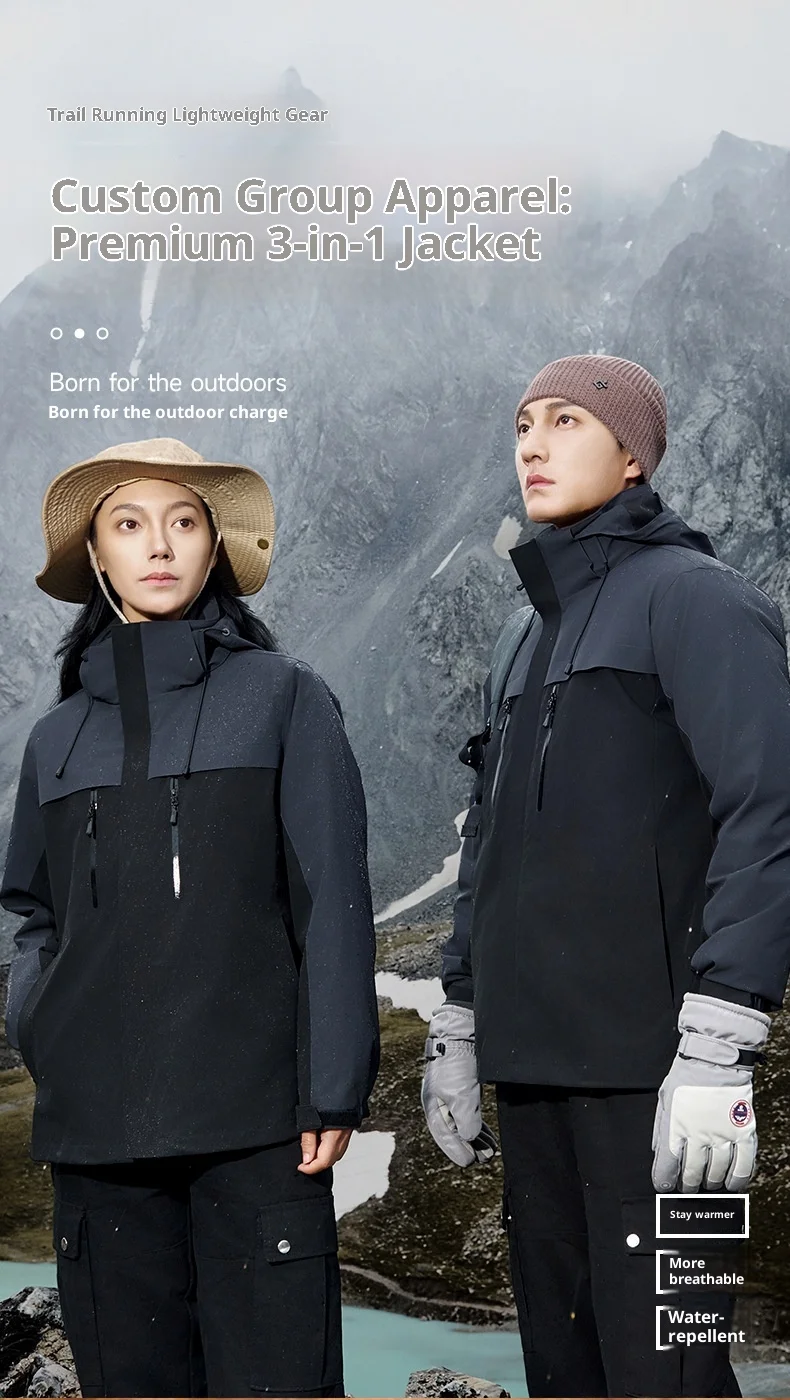Custom Three-in-one Custom Polar Fleece Liner Autumn Winter Coat Outdoor Camping Waterproof Windproof Zipper Stand