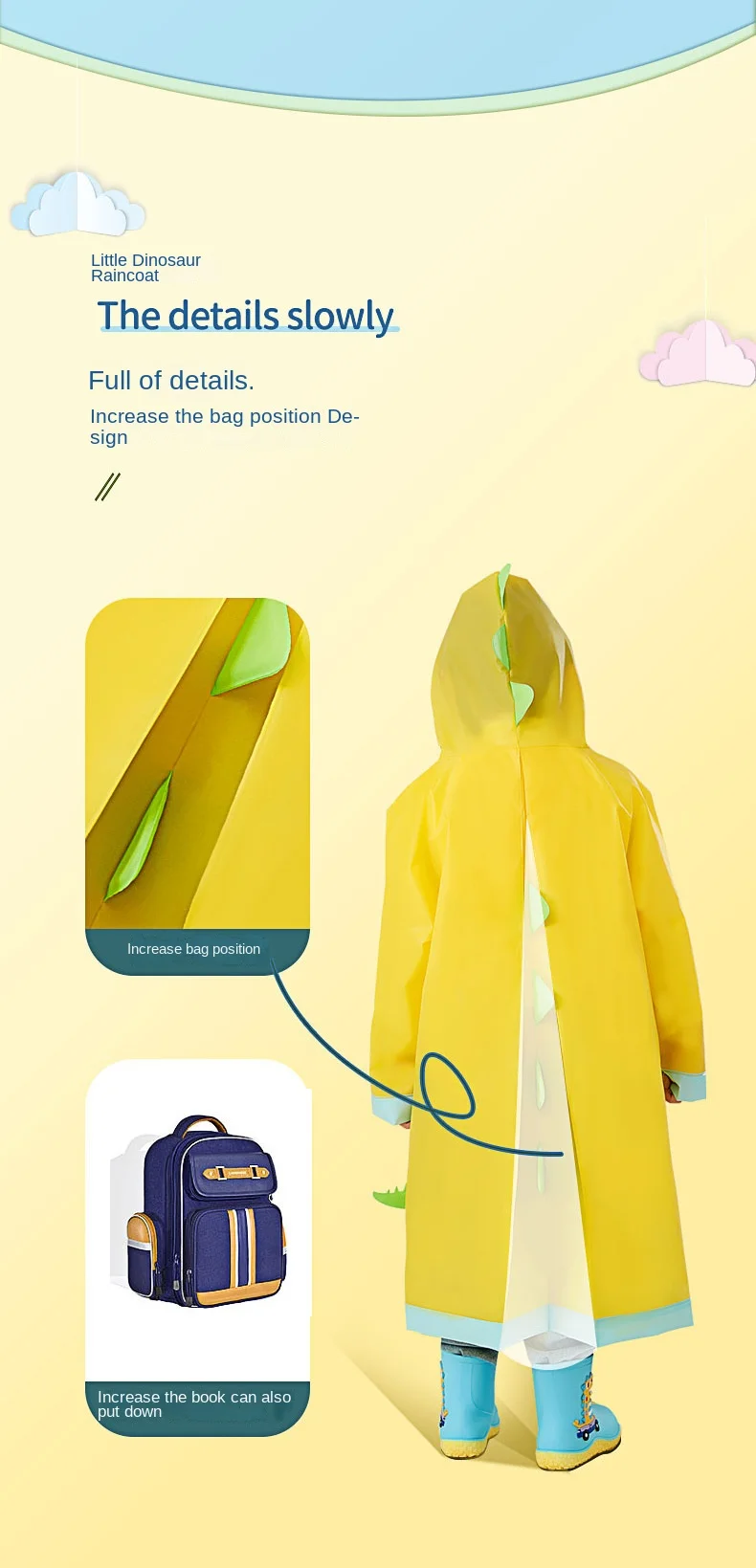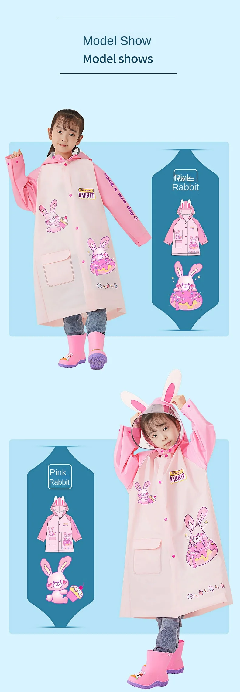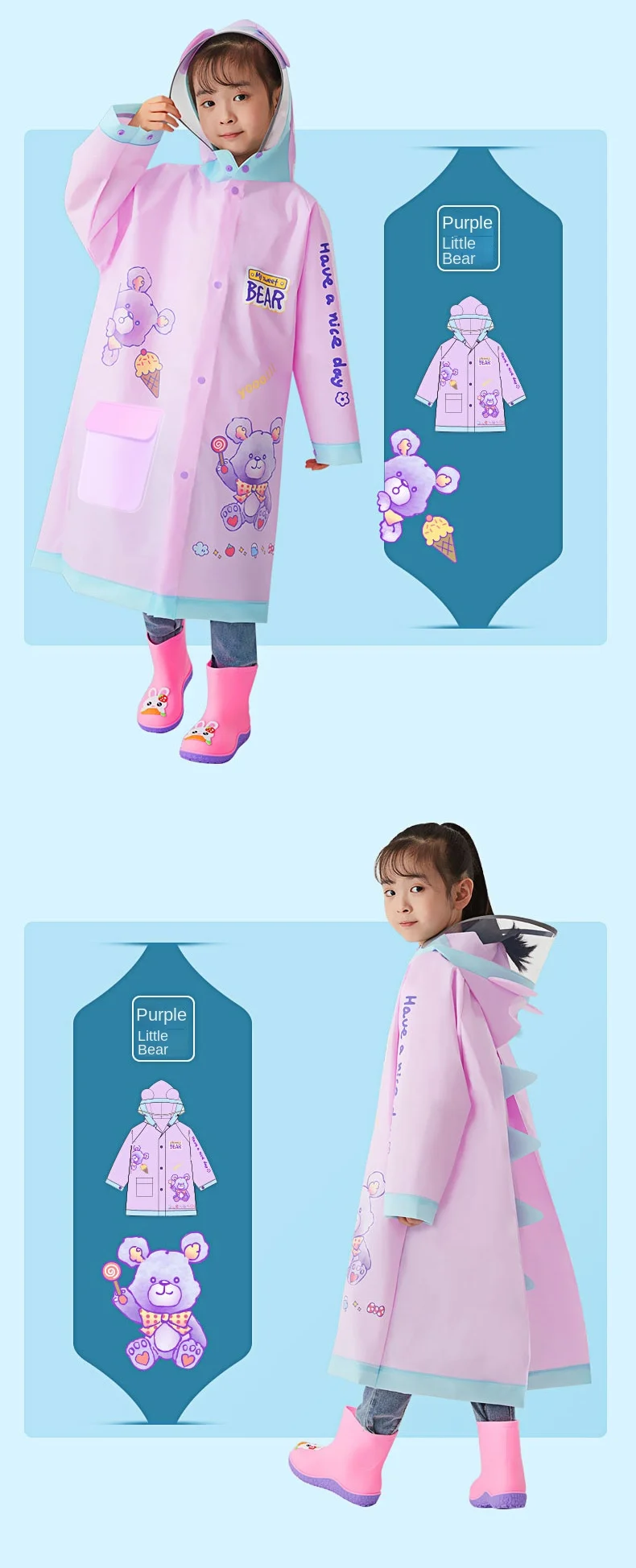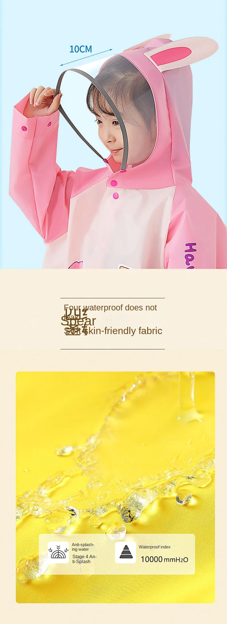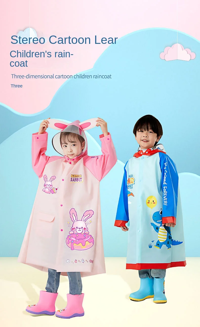 Customizable Children's Waterproof Eva Raincoat with Schoolbag Thick Student Raincoat for Outdoor Use Style-Carto