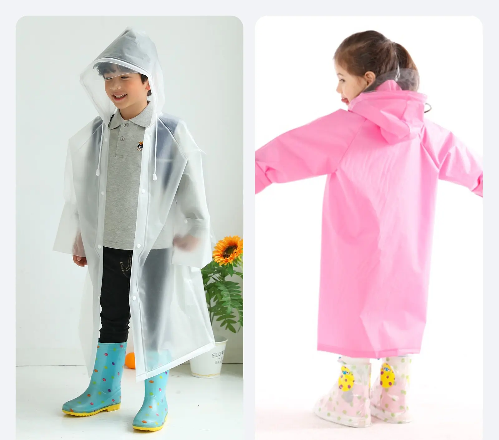 1.The Fashion Design EVA Rain Coat Travel Rain Poncho for Kids is an ideal accessory for children on rainy days or during outdoor activities.