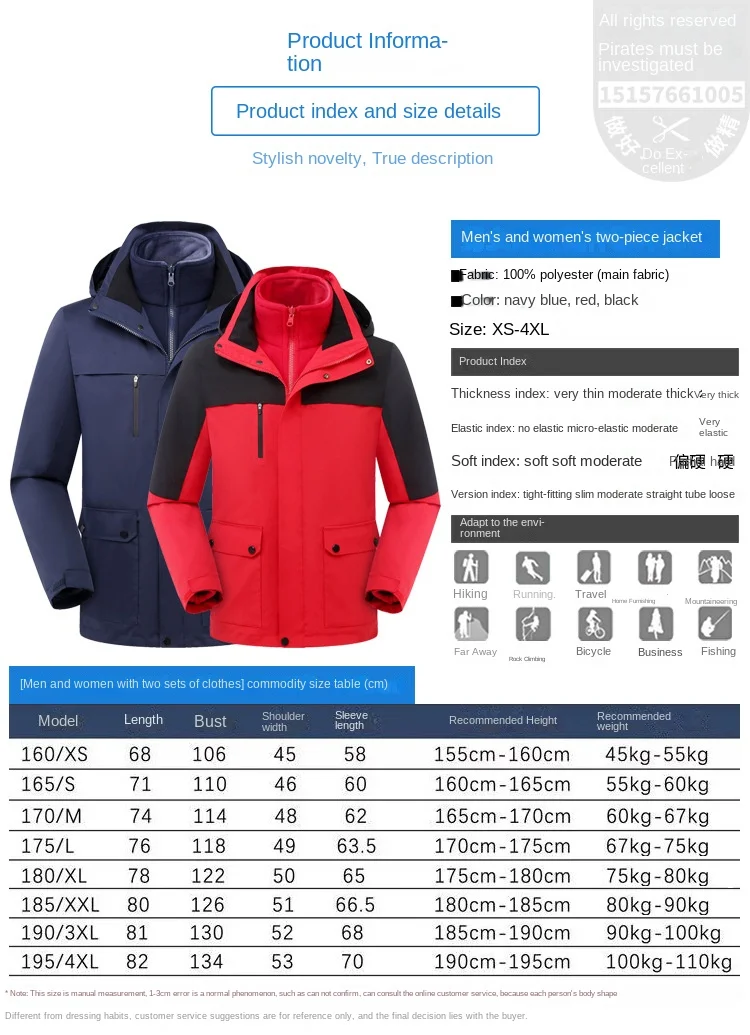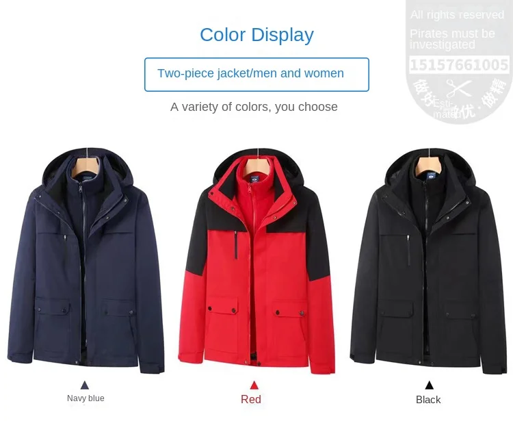 High-End Men's Women's Waterproof Jacket Soft Shell Three-in-One Detachable Fleece Liner Solid Warm Print Logo Charge Clothes