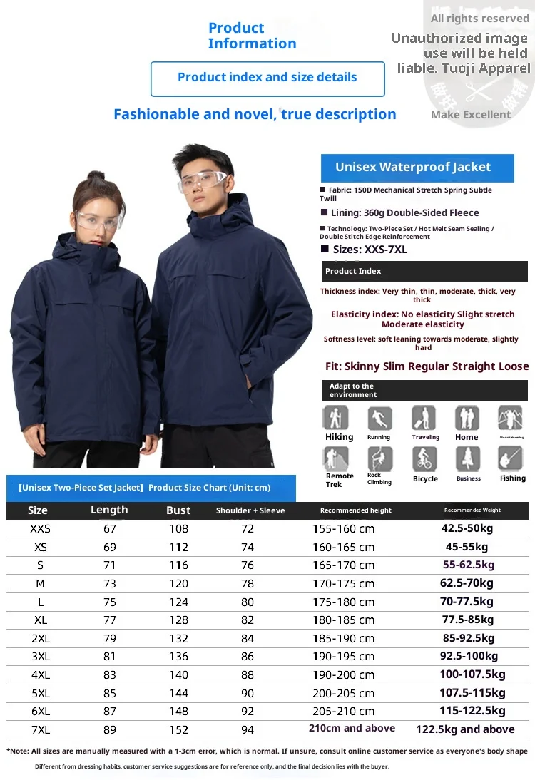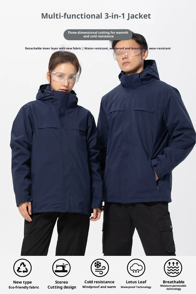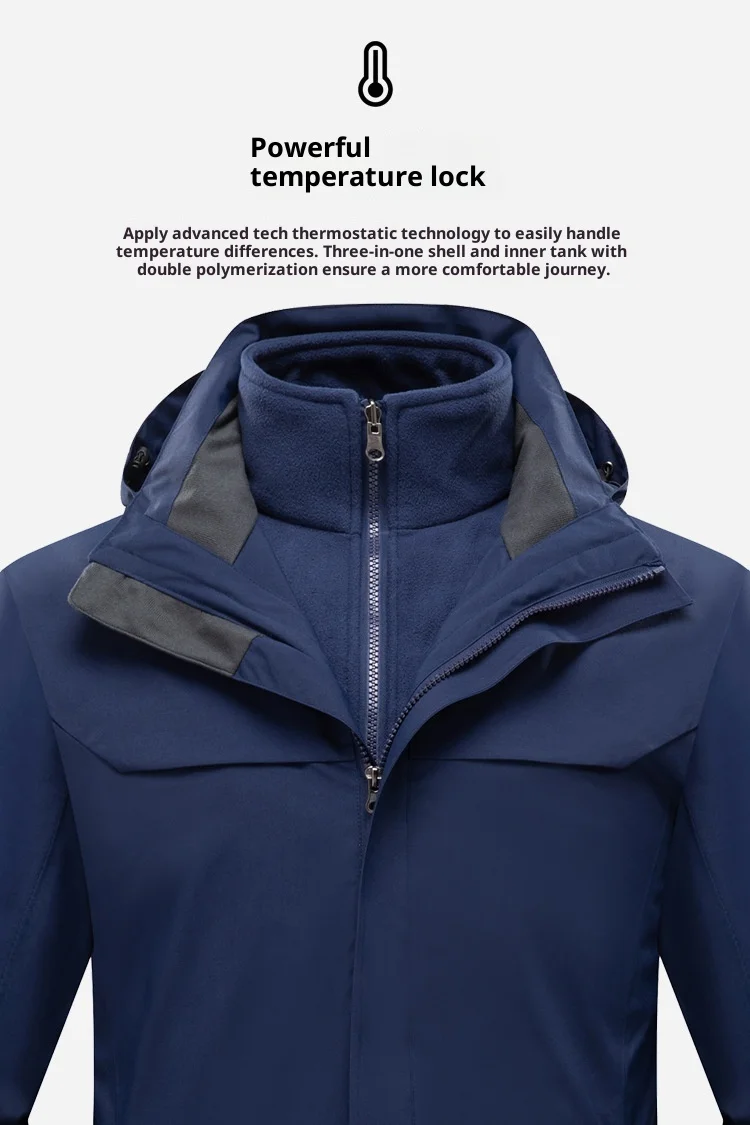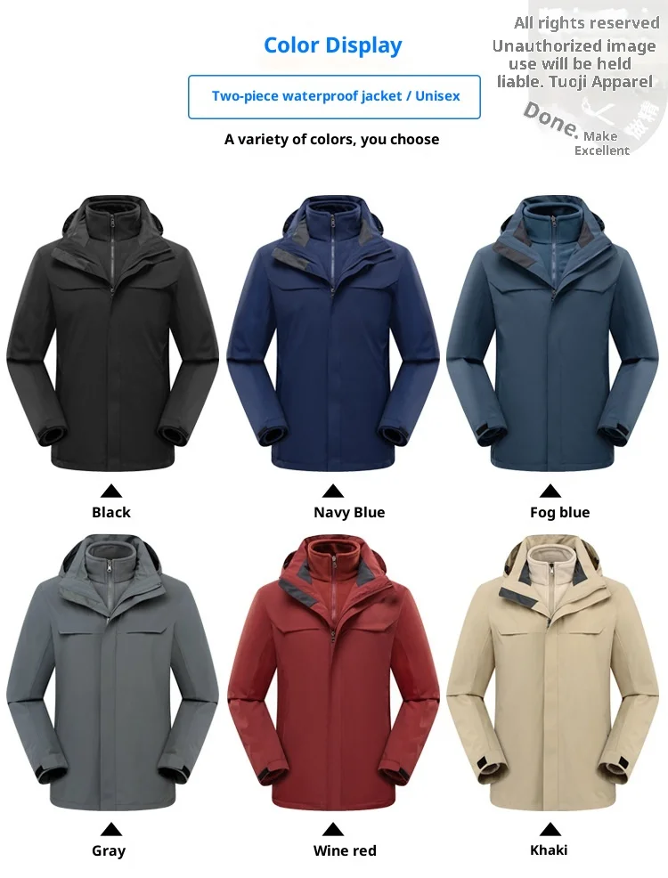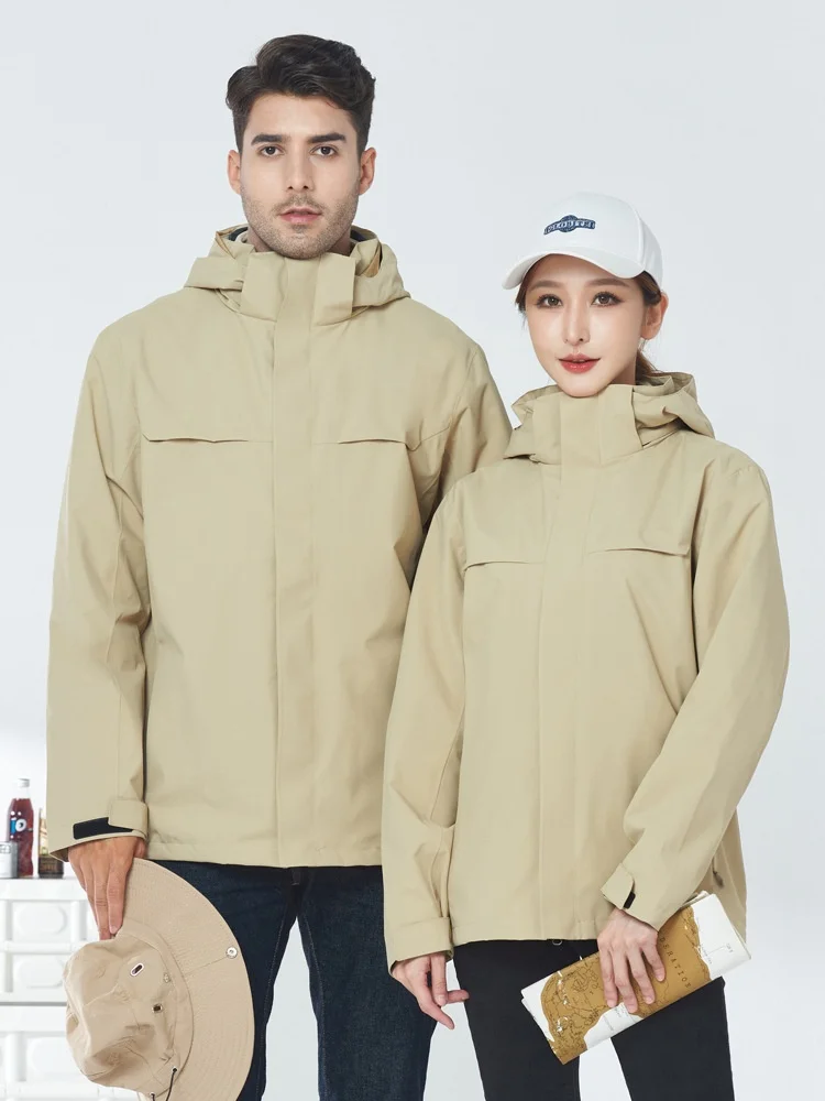 High-end Outdoor Assault Clothing Men's Women's Two-piece Three-in-one Waterproof Windbloc Polyester Lining Warm Jacket