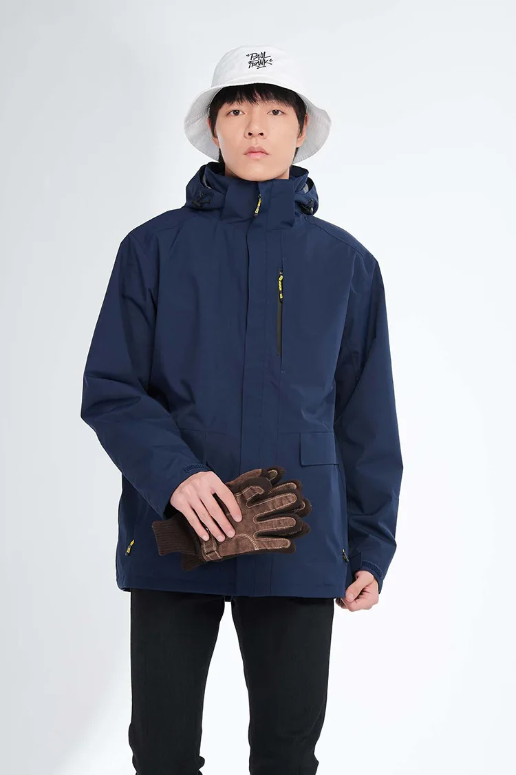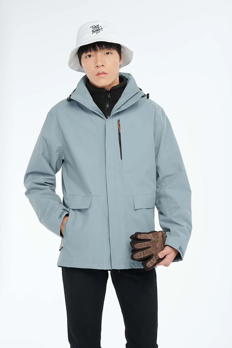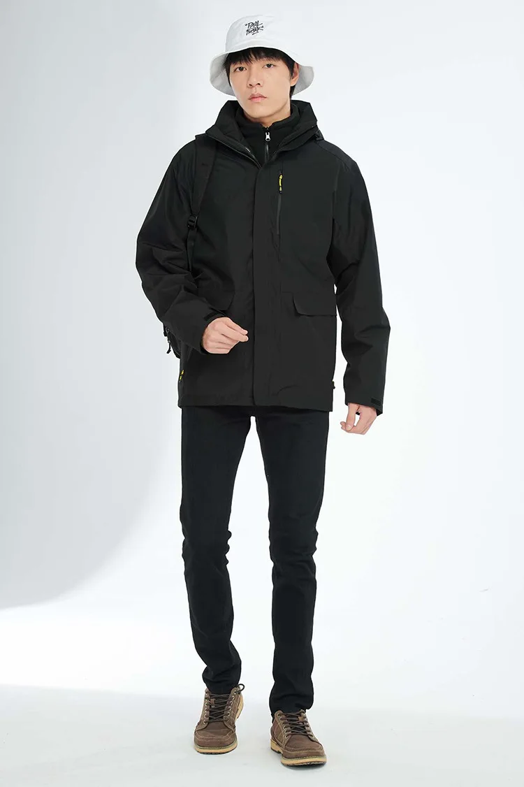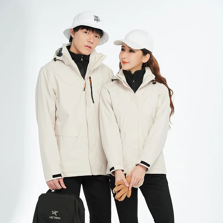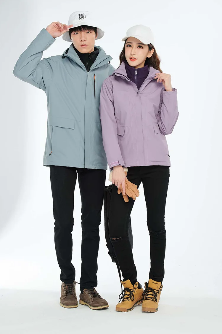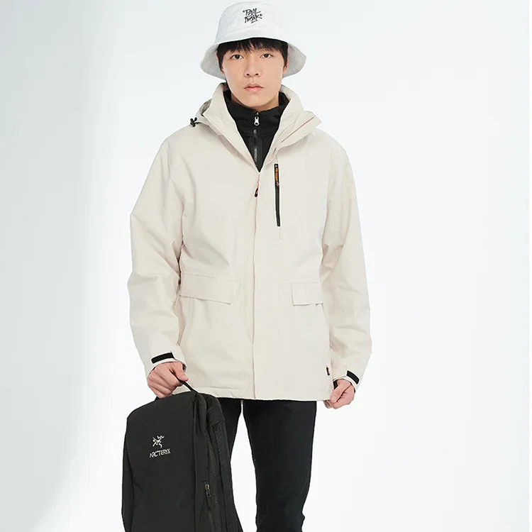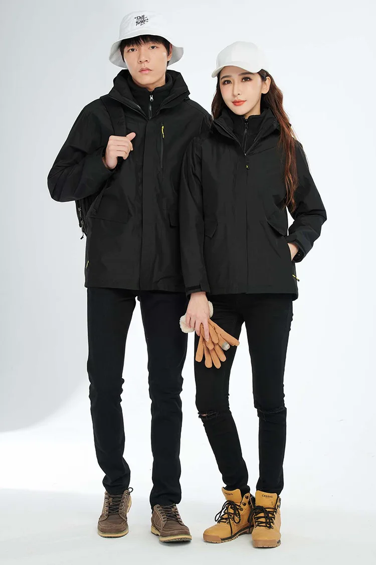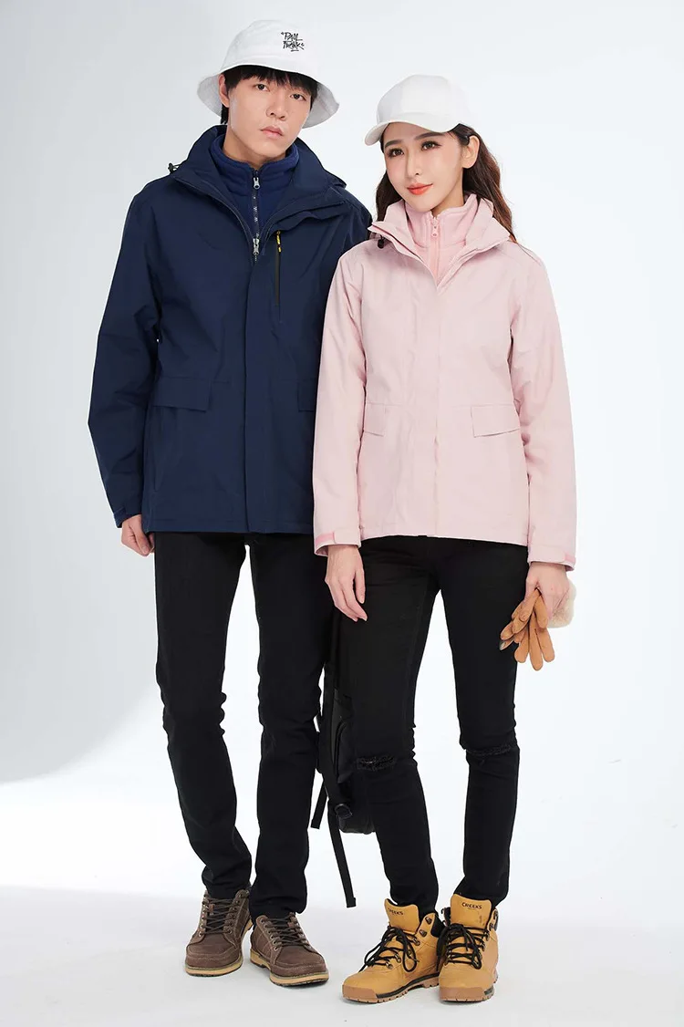 High-End Three-in-One Detachable Waterproof Fleece-Lined Mountaineering Suit Autumn Winter Zipper Closure Hiking Jacket for Men