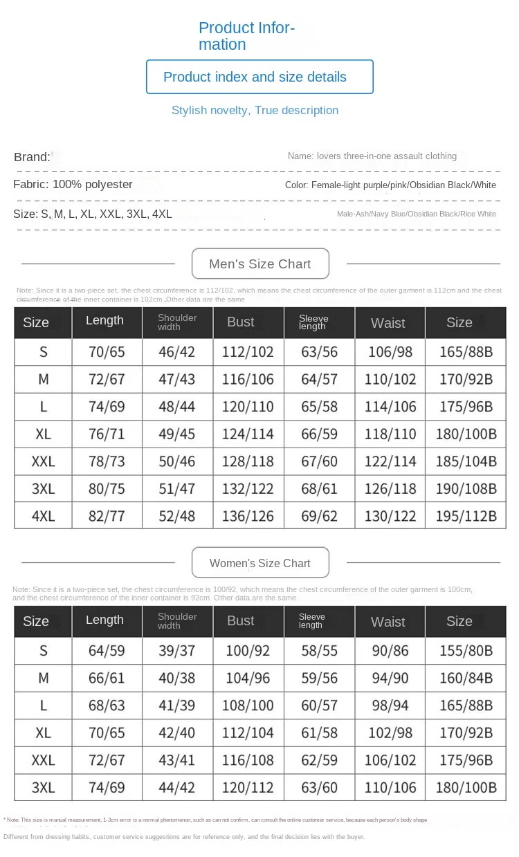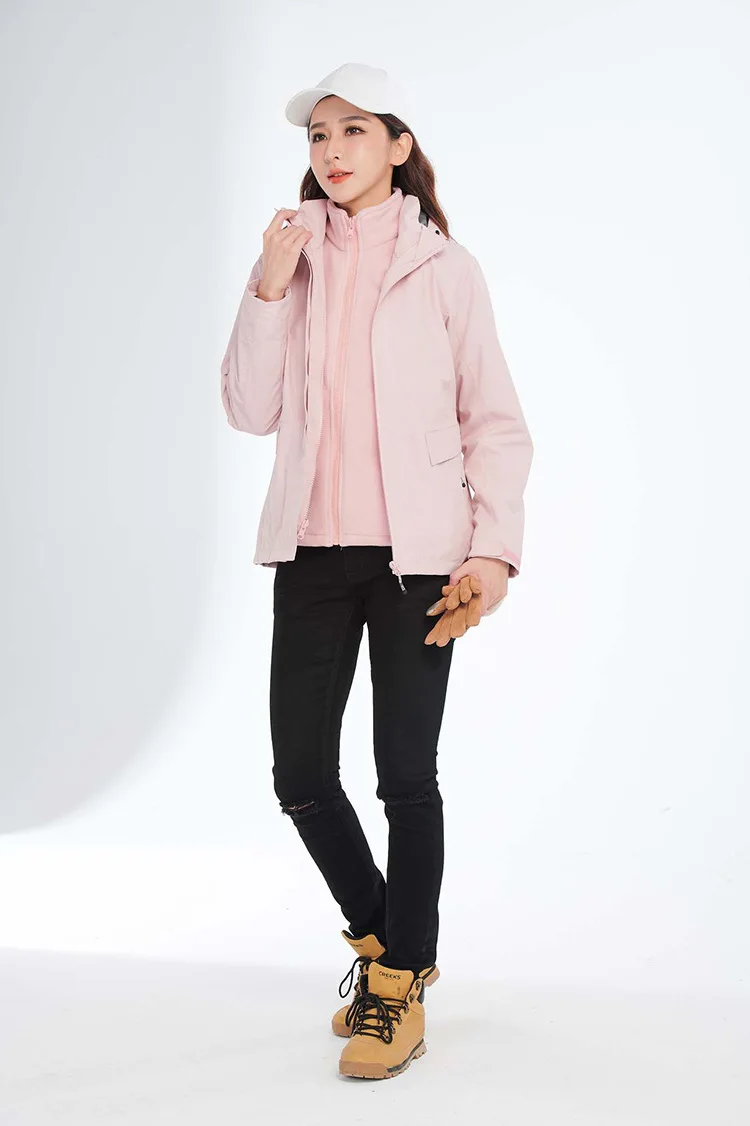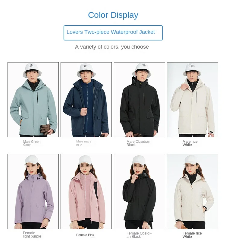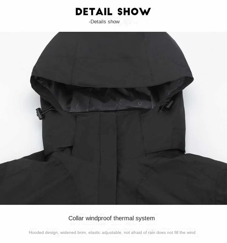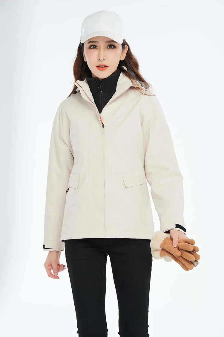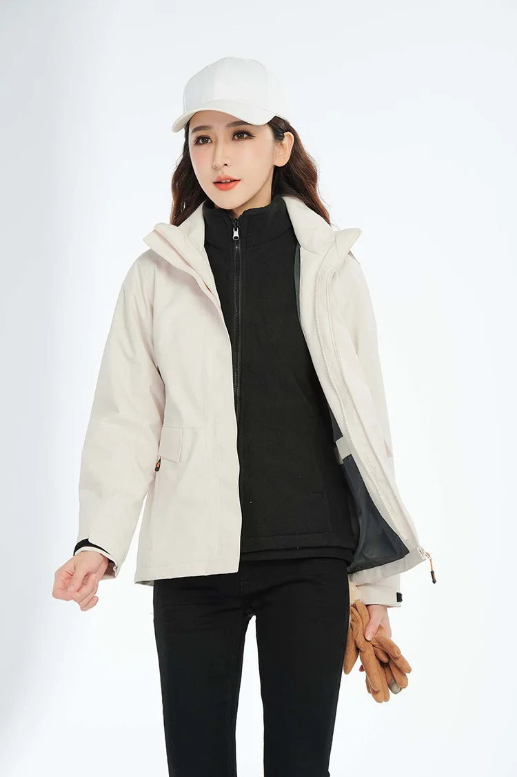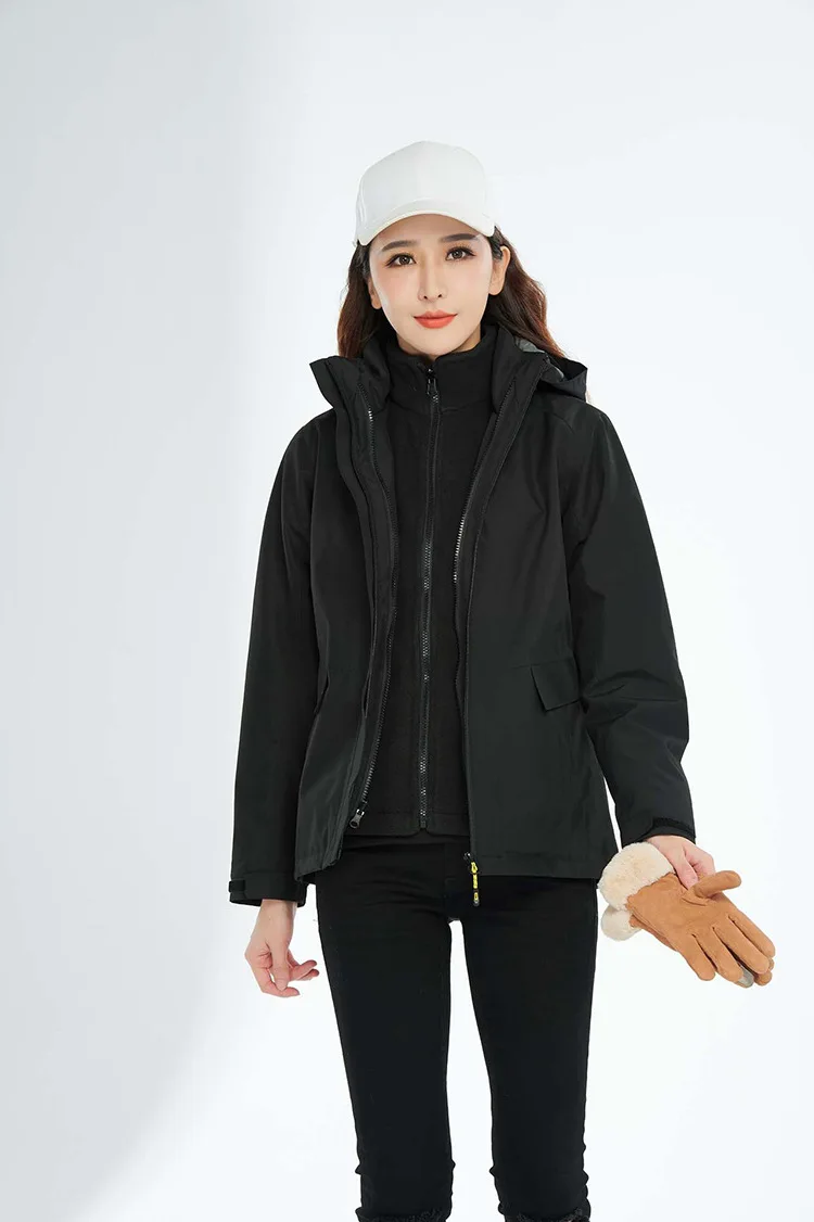 High-End Three-in-One Detachable Waterproof Fleece-Lined Mountaineering Suit Autumn Winter Zipper Closure Hiking Jacket for Men