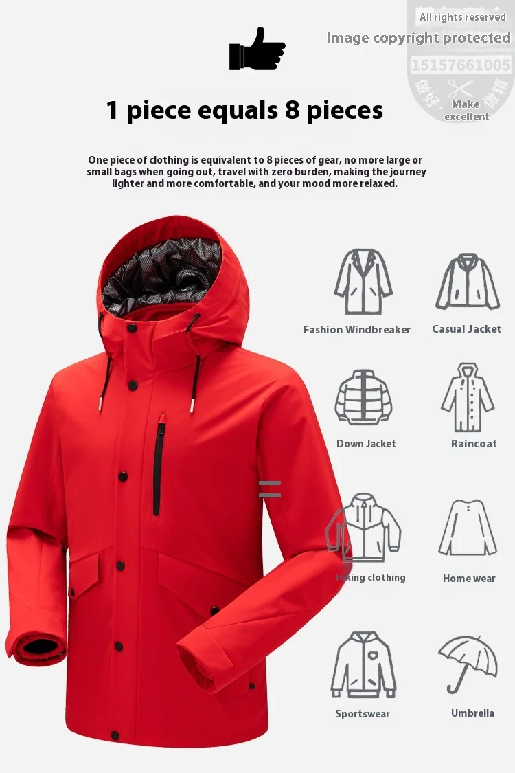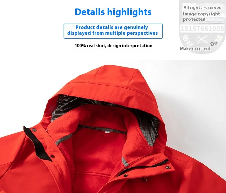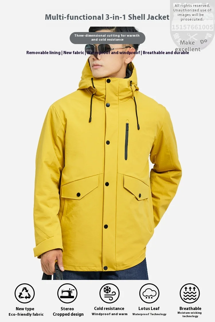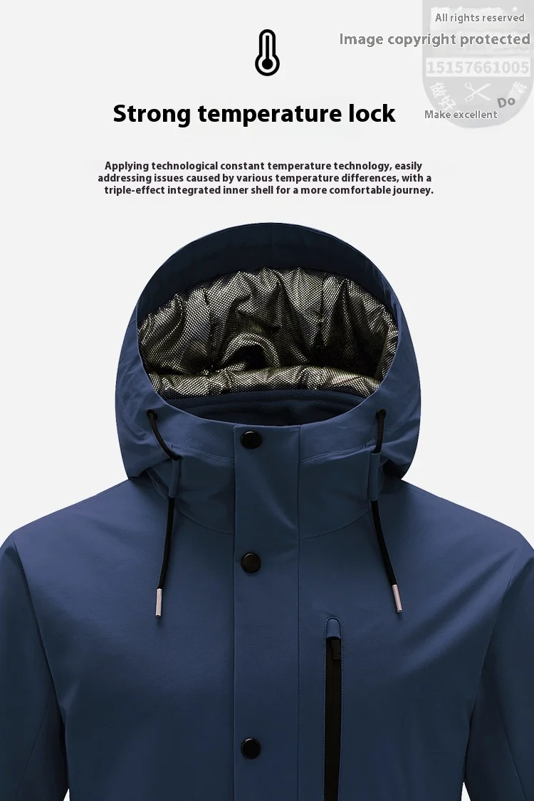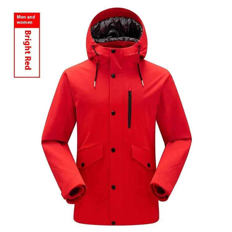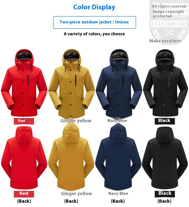 High-End Two-Piece Winter Outdoor Hiking Suit Men's and Women's Windproof Warm Woven Logo Three-in-One for Couples