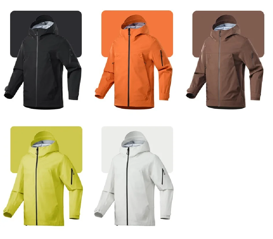 Lightweight Men's Rain Jacket for Autumn Spring Windproof 3D Embroidery Logo Zipper Prints Stand Breathable Coated for Outdoor