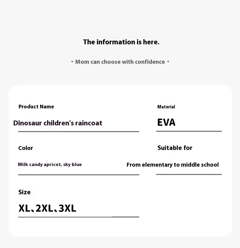 The XIAOKONGLONG raincoat innovatively applies new materials of health and environmental protection, and combines elements such as natural environmental protection, comfort and fashion, ease and convenience to create a professional and fashionable raincoat style. The product structure is unique, creative, practical and novel, and has won more than ten patents and more than thirty edition rights. The company adheres to the brand road, has a professional R & D department, and has served B. duck, Disney, duomiao house, KK tree, PAW Patrol and other well-known brands at home and abroad.