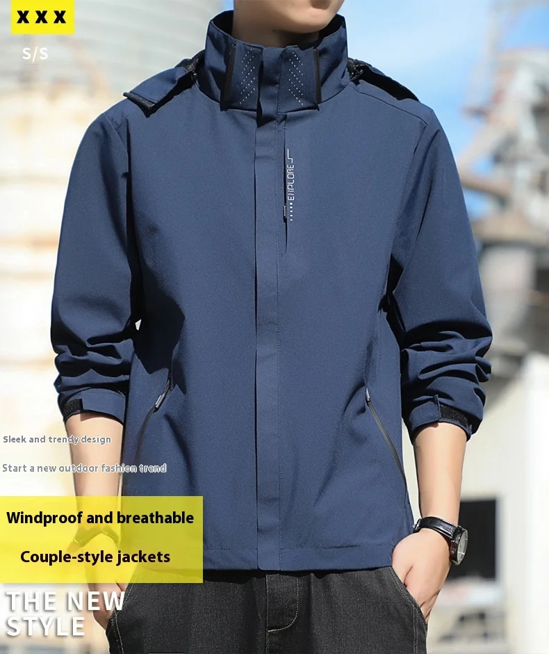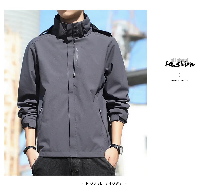 Men's All-Match Three-in-One Jacket for Spring Autumn Sports Waterproof Casual Baseball Suit Full Zipper Closure Front