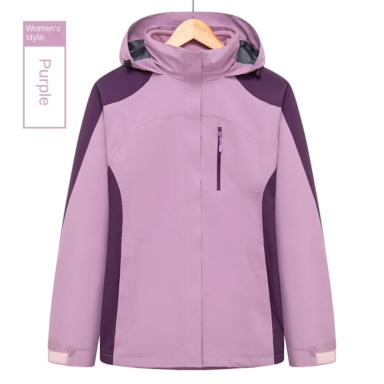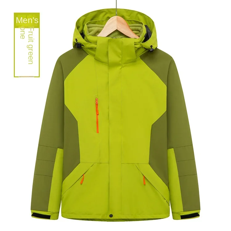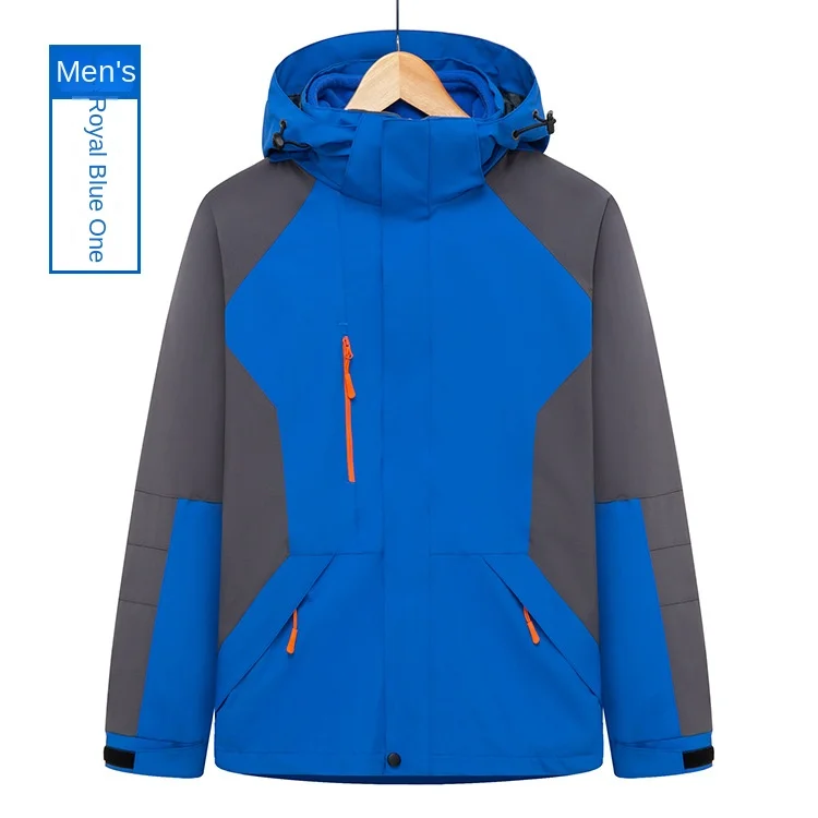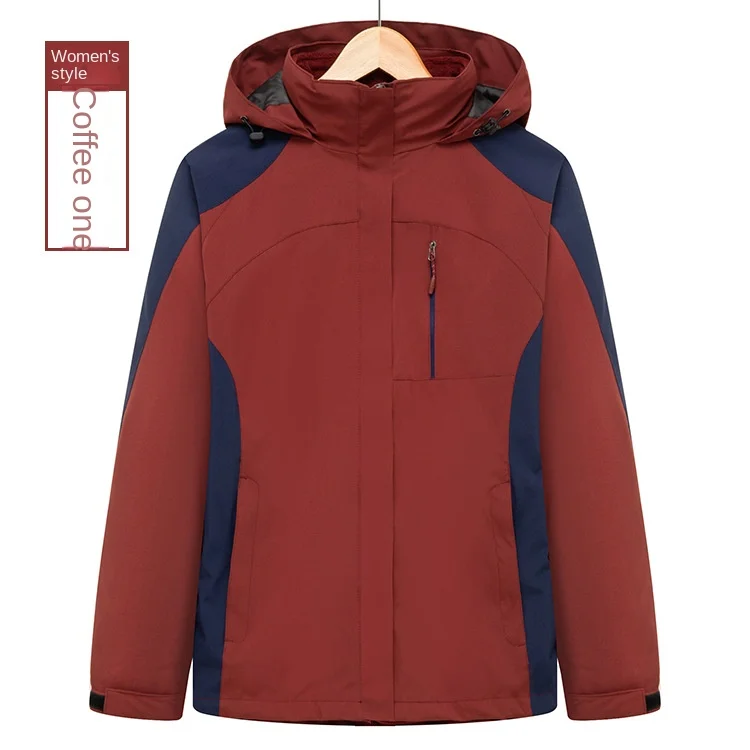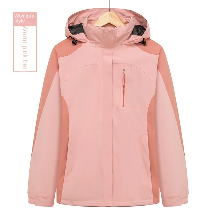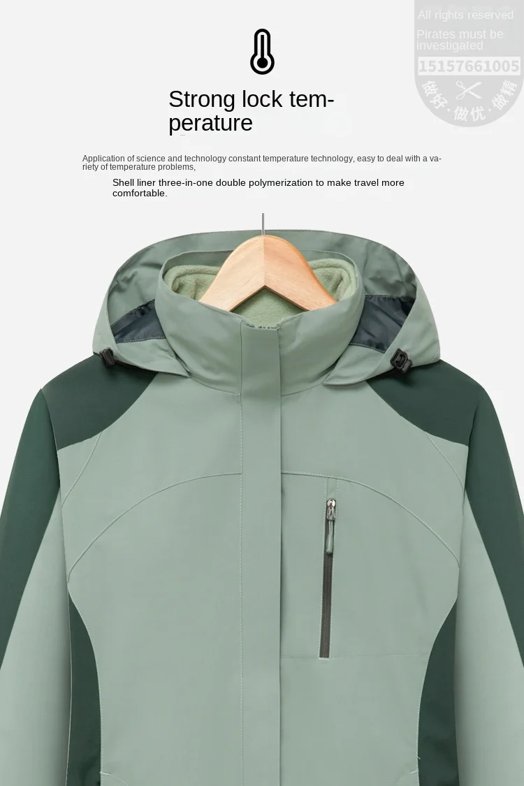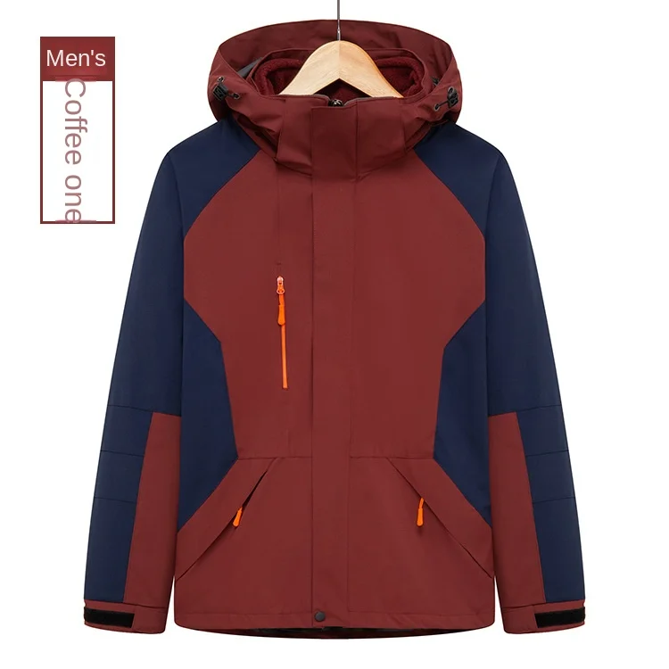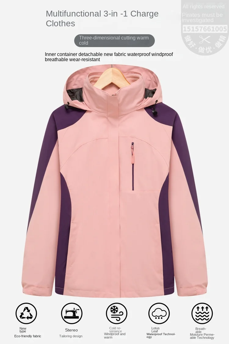 Men's and Women's Outdoor Polar Fleece Liner Waterproof Winter Warm Overalls Two-Piece Three-In-One Zipper with Printed Design