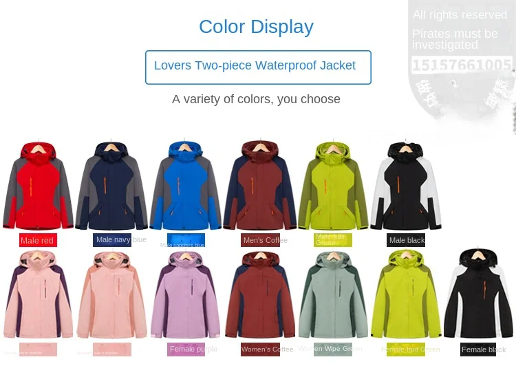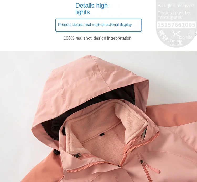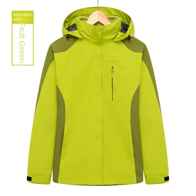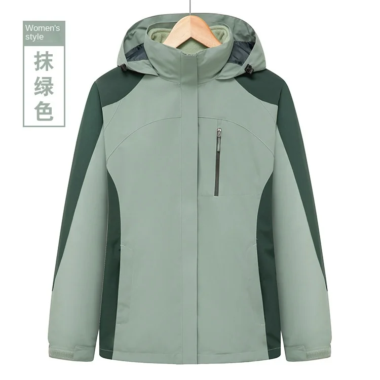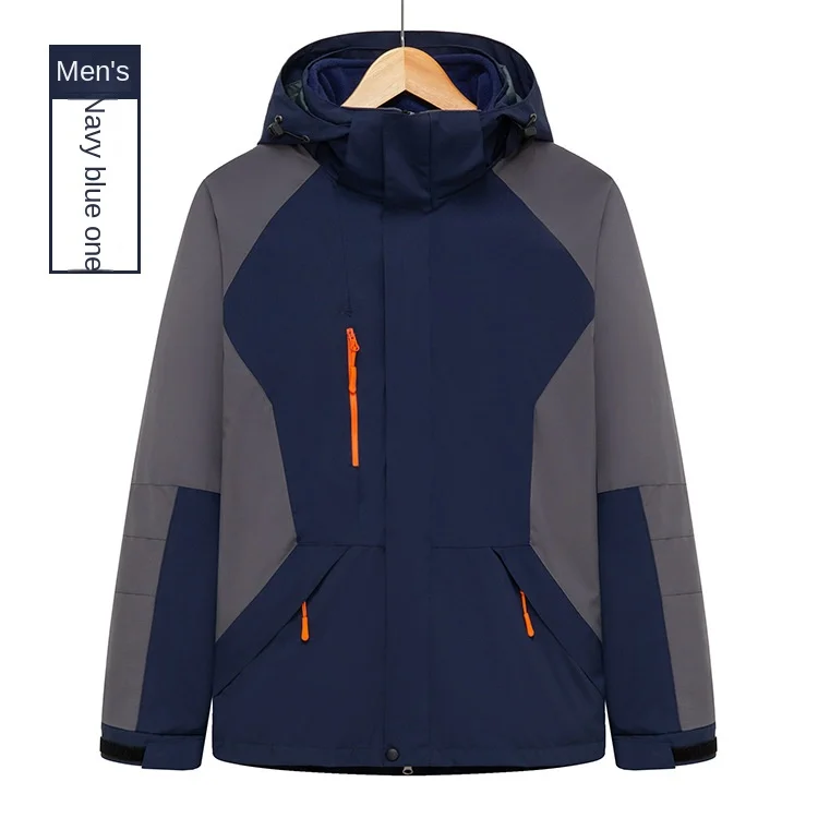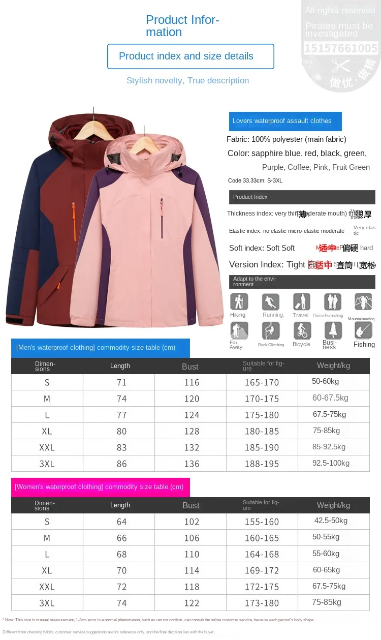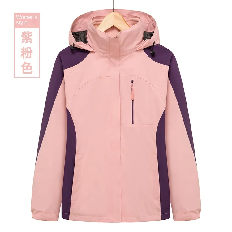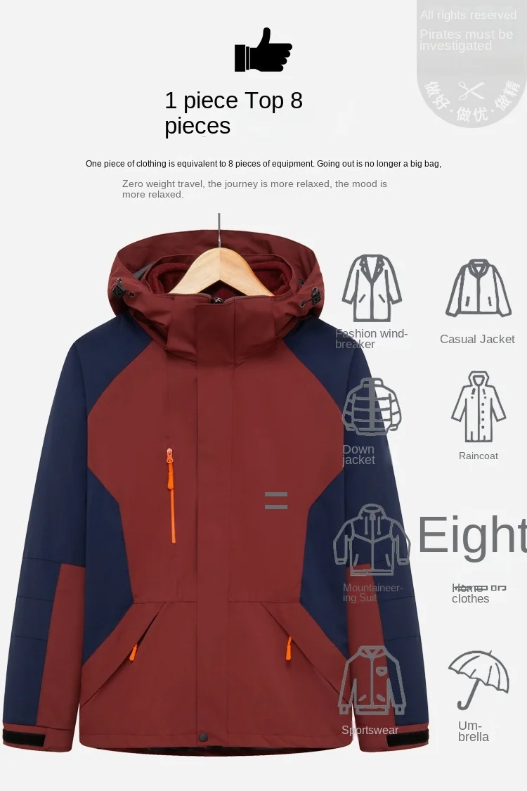 Men's and Women's Outdoor Polar Fleece Liner Waterproof Winter Warm Overalls Two-Piece Three-In-One Zipper with Printed Design