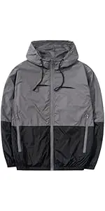 • Fabric: windproof, waterproof, light rain and water resistant polyester shell fabric Feature: lightweight, hooded, long sleeve, casual, fashion Season: fall, spring or layer in winter and for UV protection Lightweight: easy to pack into a small size Occasion: raining, running, hiking, sports