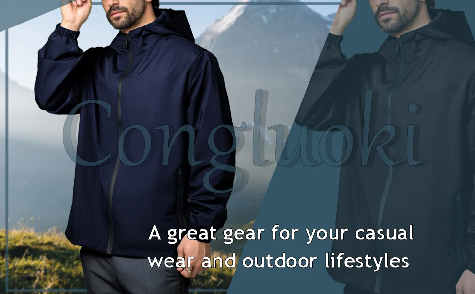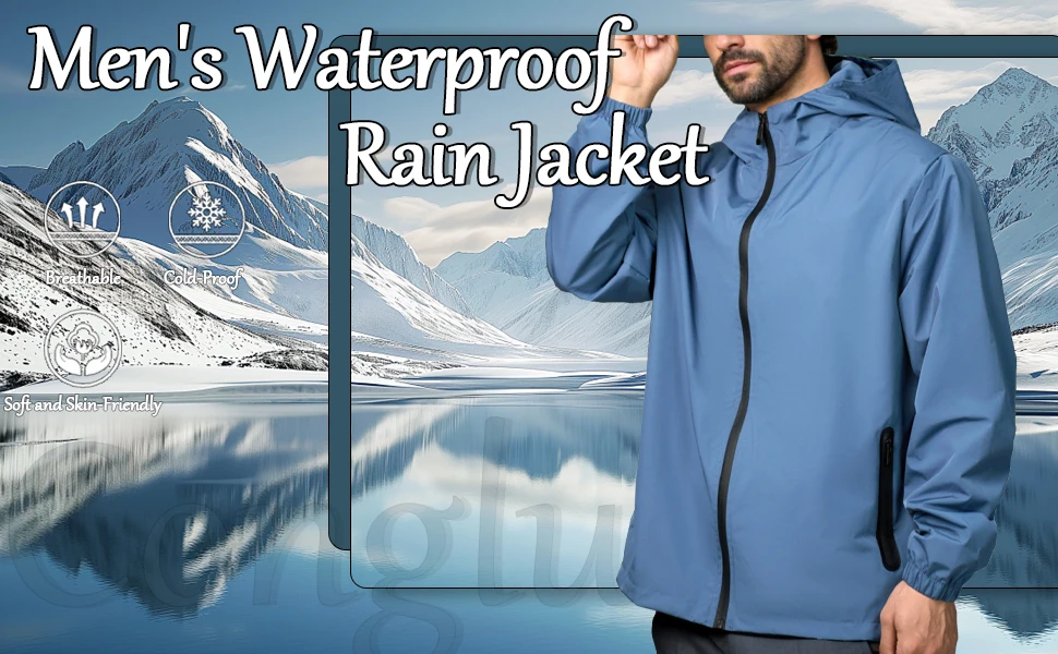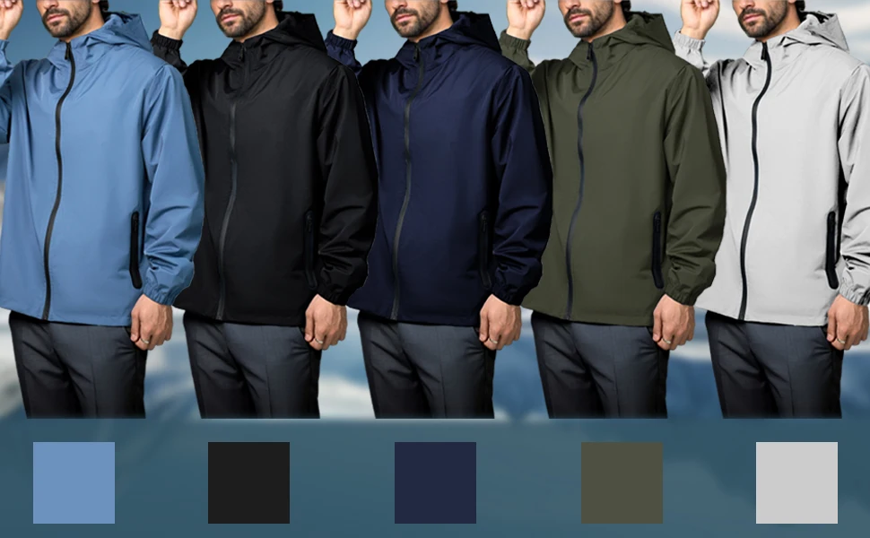 Men's Winter Waterproof Windbreaker Plain Dyed Lightweight Hooded Casual Bomber Jacket for Daily Hiking & Cycling