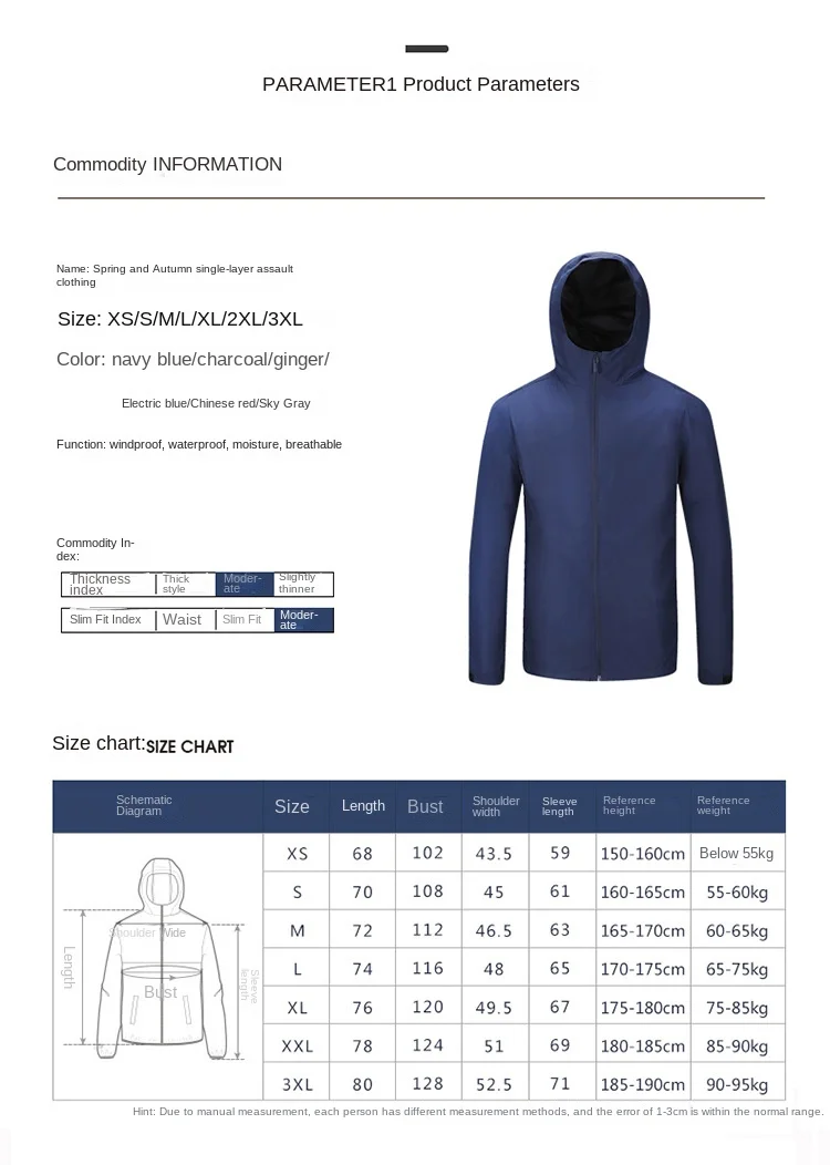 Men's Women's Long Sleeve Assault Coat Single-Layer Waterproof Windproof Stand Zipper for Winter Spring Autumn Mountaineering