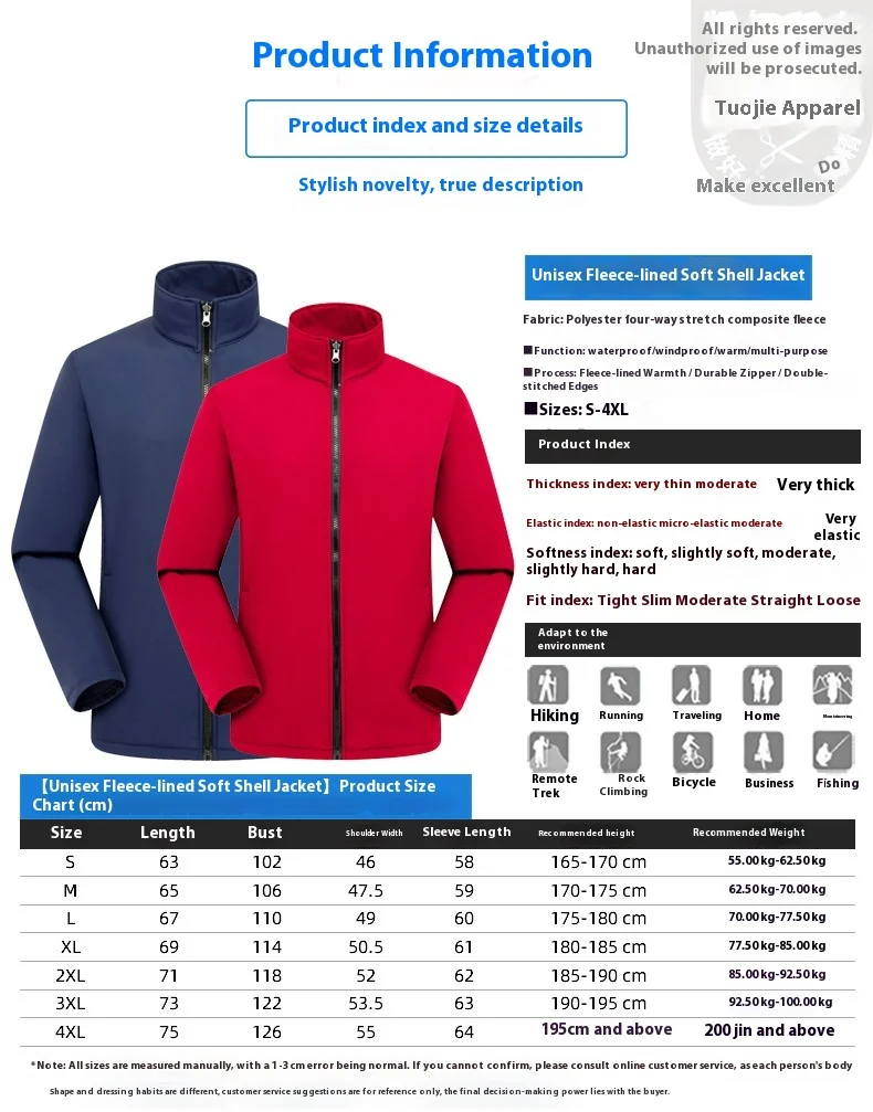 Men's Women's Outdoor Stand Cardigan Jacket Soft Shell Waterproof Windproof for Autumn Winter Sports Casual Plus Size Zipper