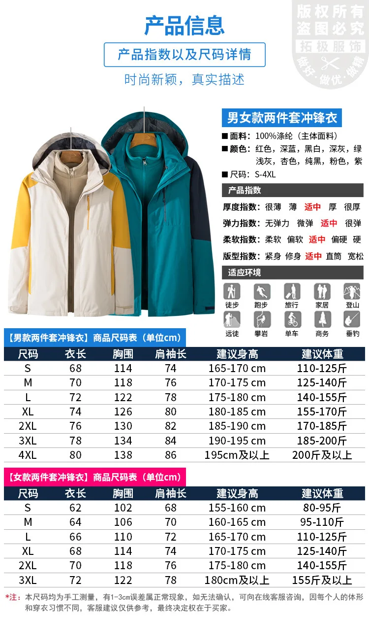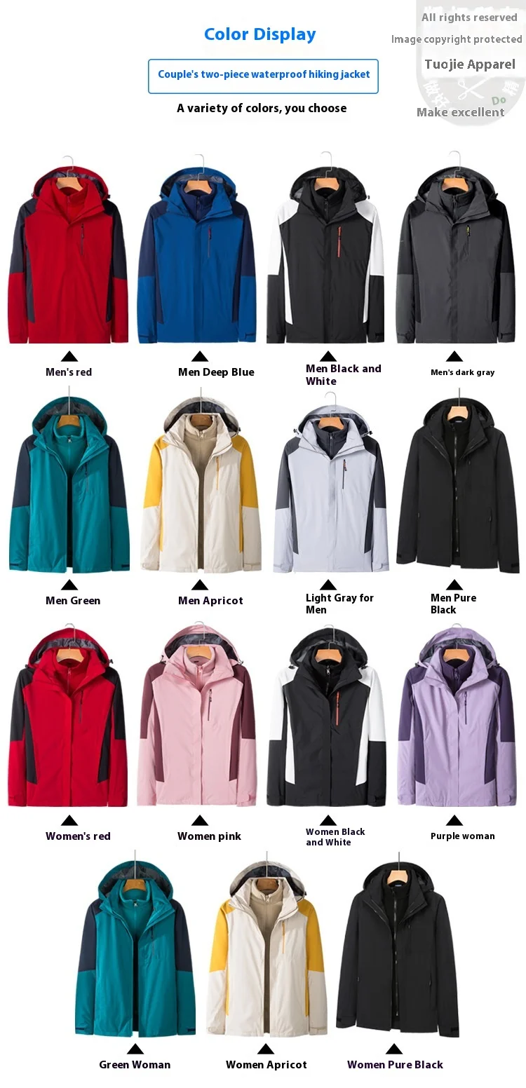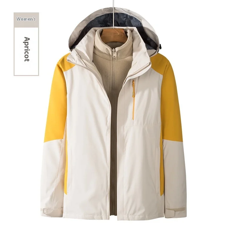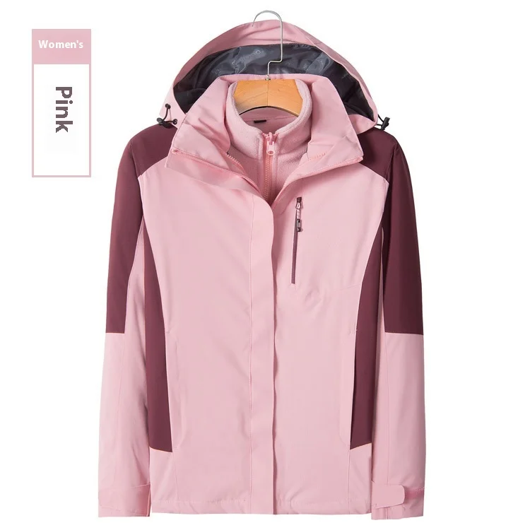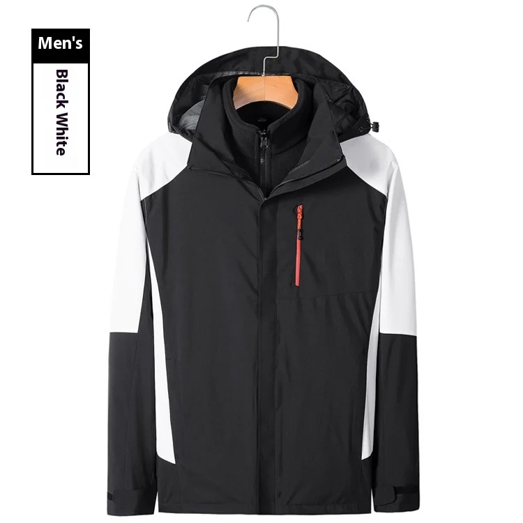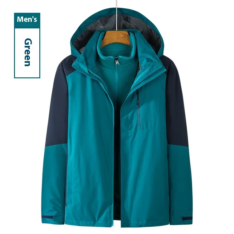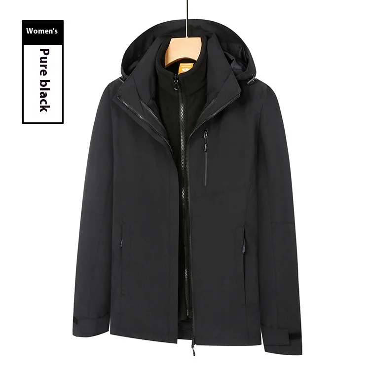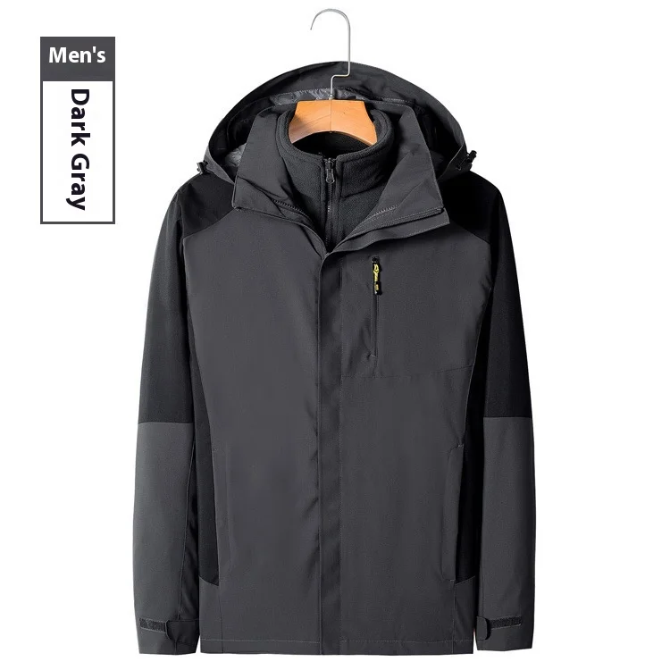 Men's Women's Outdoor Two-Piece Sports Jacket Set Three-In-One Fleece-Lined Thickened Winter Warm Jacket for Mountaineering