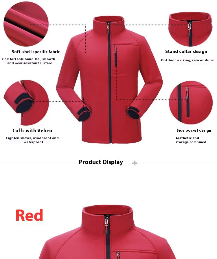 Men's Women's Soft Shell Single Layer Jacket Waterproof Fleece Windproof Warm Work Clothes Customizable Logo Outdoor Group