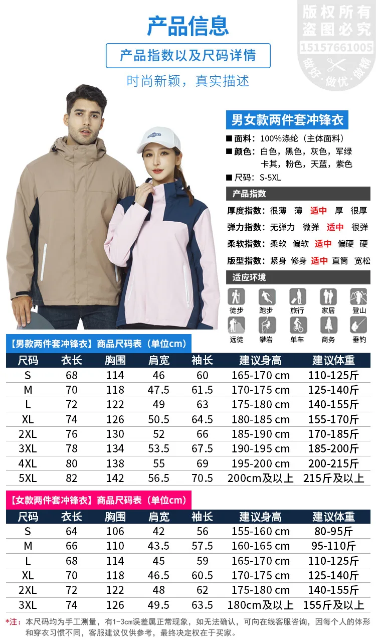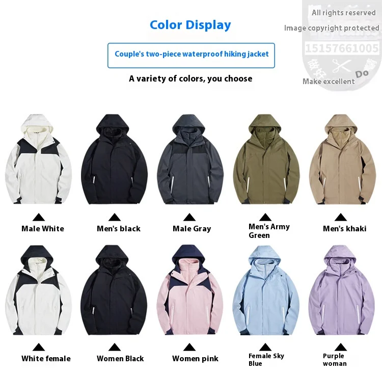 Men's Women's Three-in-One Assault Winter Work Clothes Outdoor Windproof Waterproof Hiking Jackets Printed Embroidered Logo