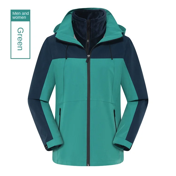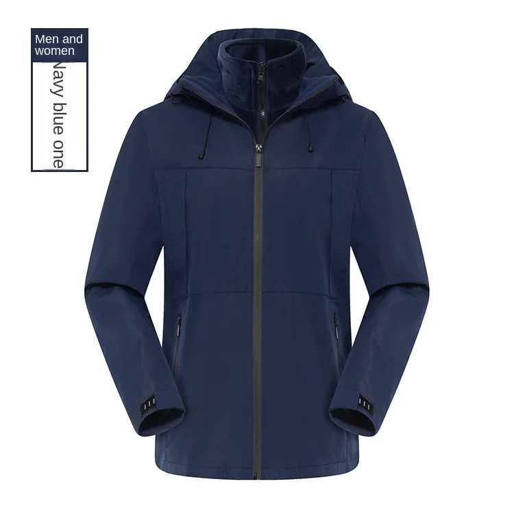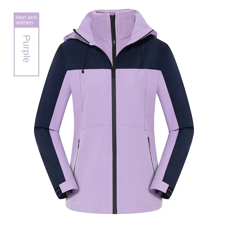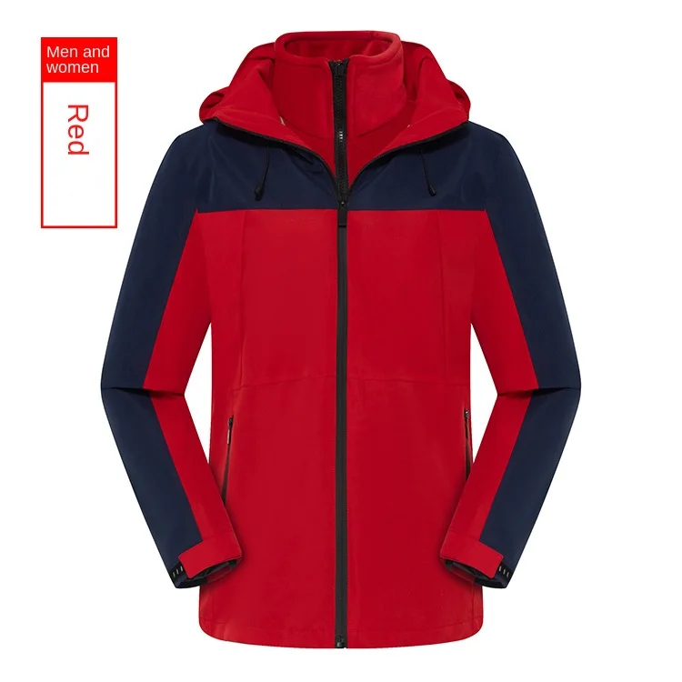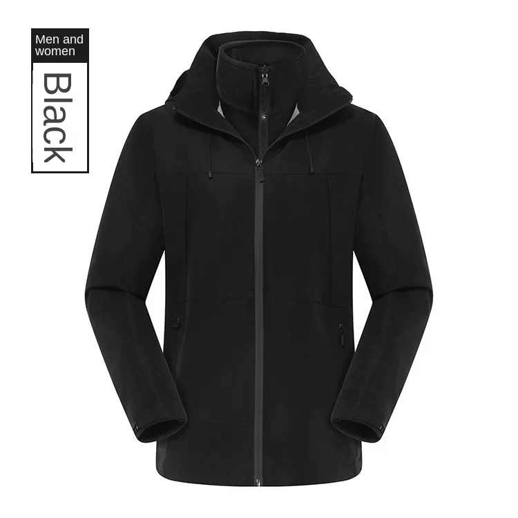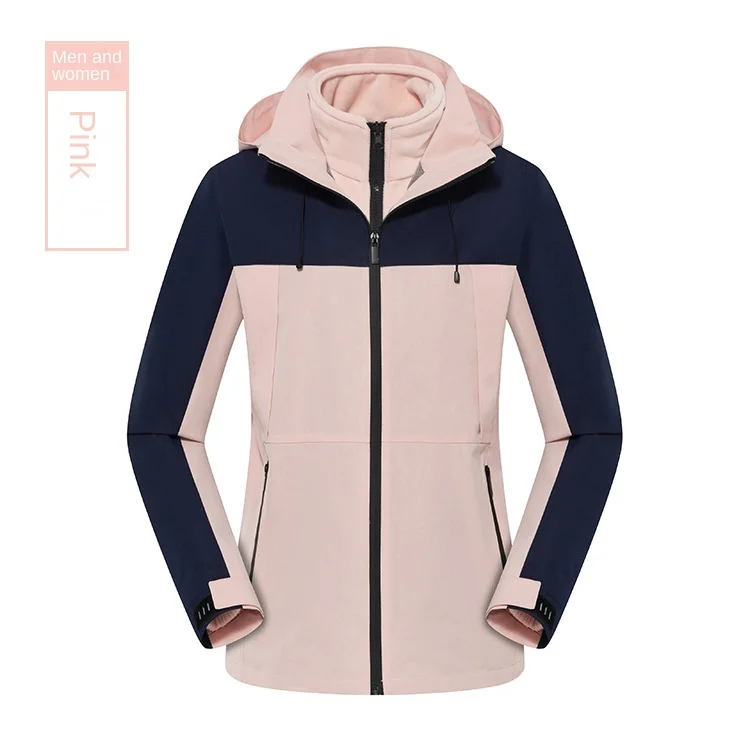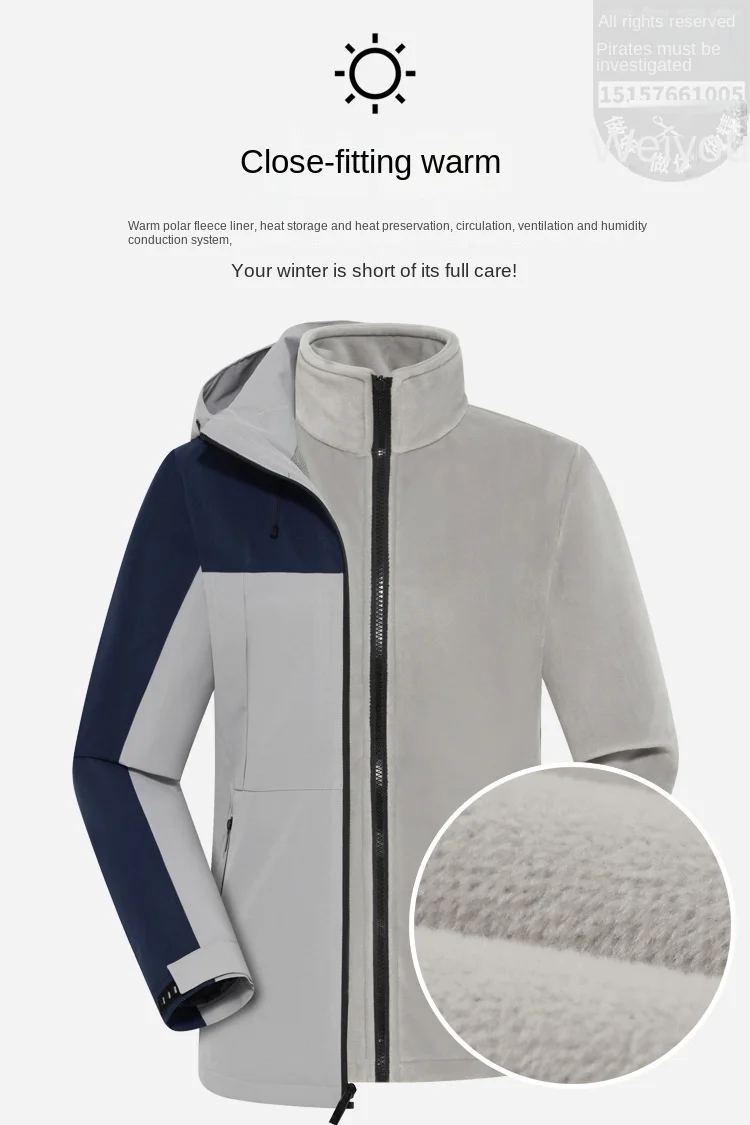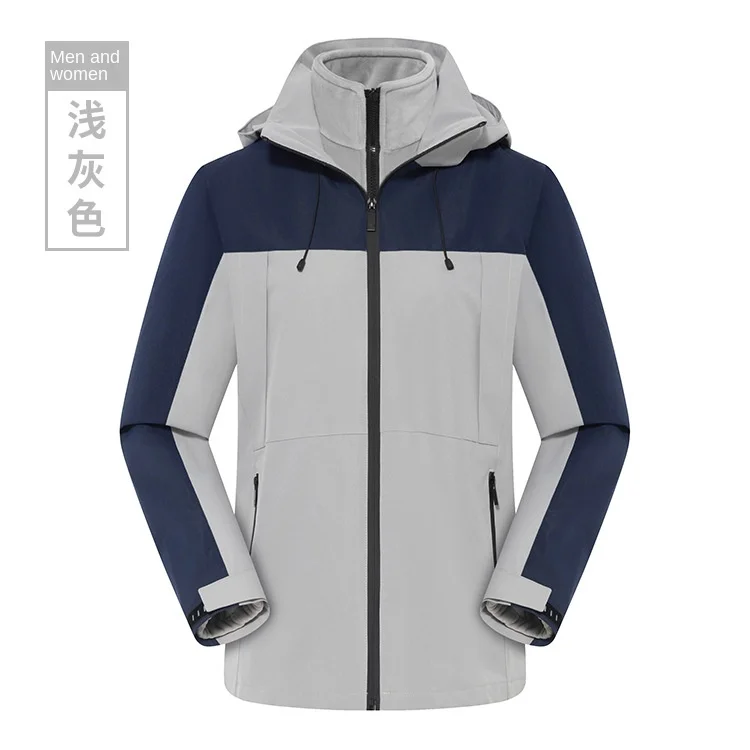 Men's Women's Three-in-One Outdoor Jacket for Autumn Winter Solid Two-Piece Detachable Design Zipper Windproof Waterproof