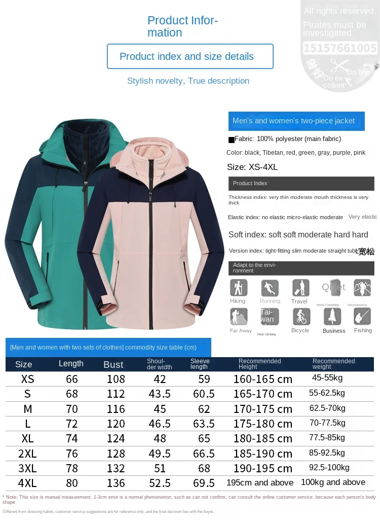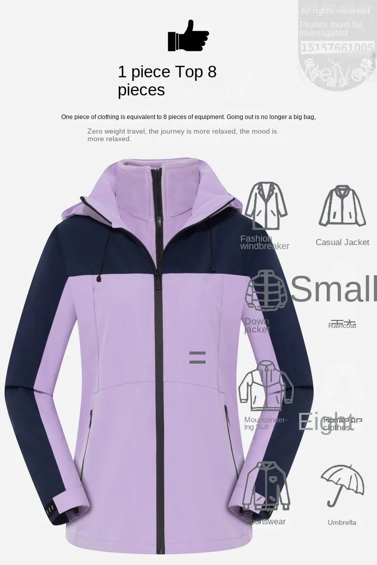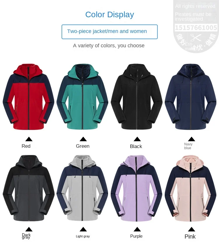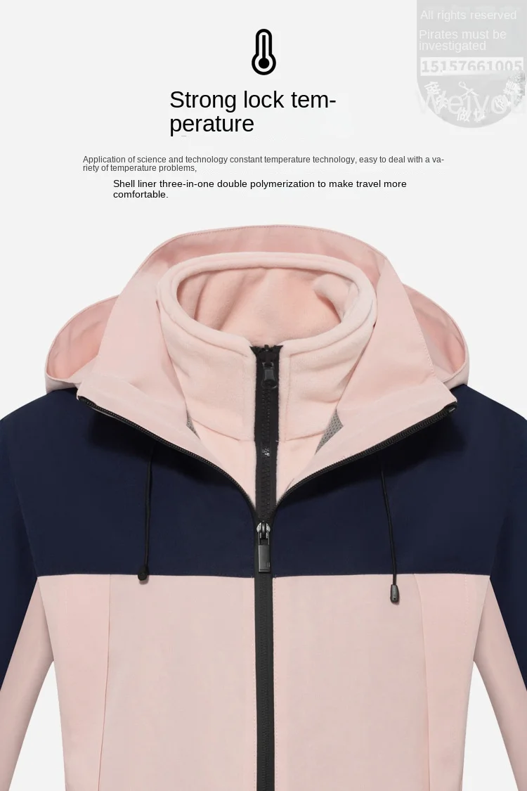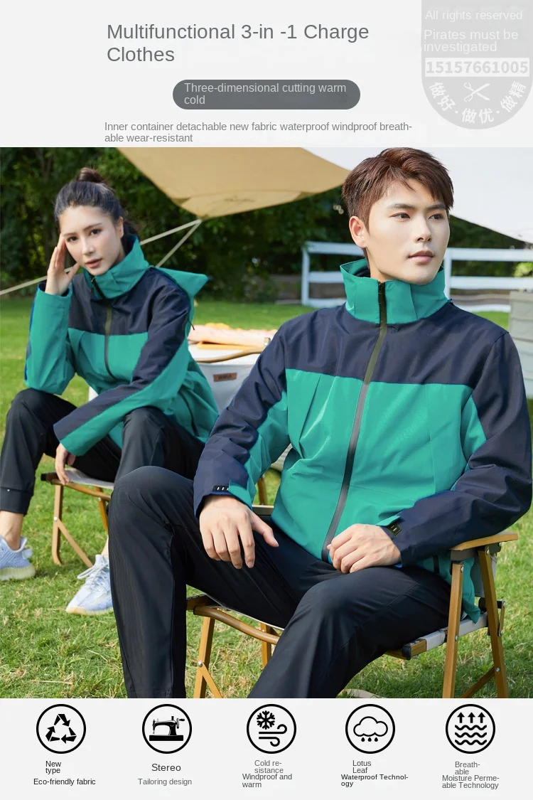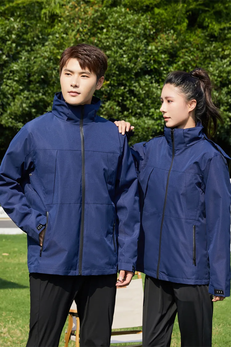 Men's Women's Three-in-One Outdoor Jacket for Autumn Winter Solid Two-Piece Detachable Design Zipper Windproof Waterproof