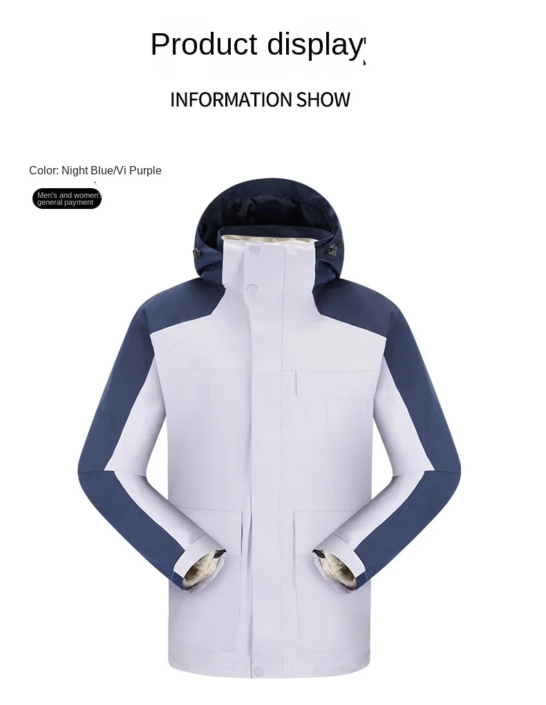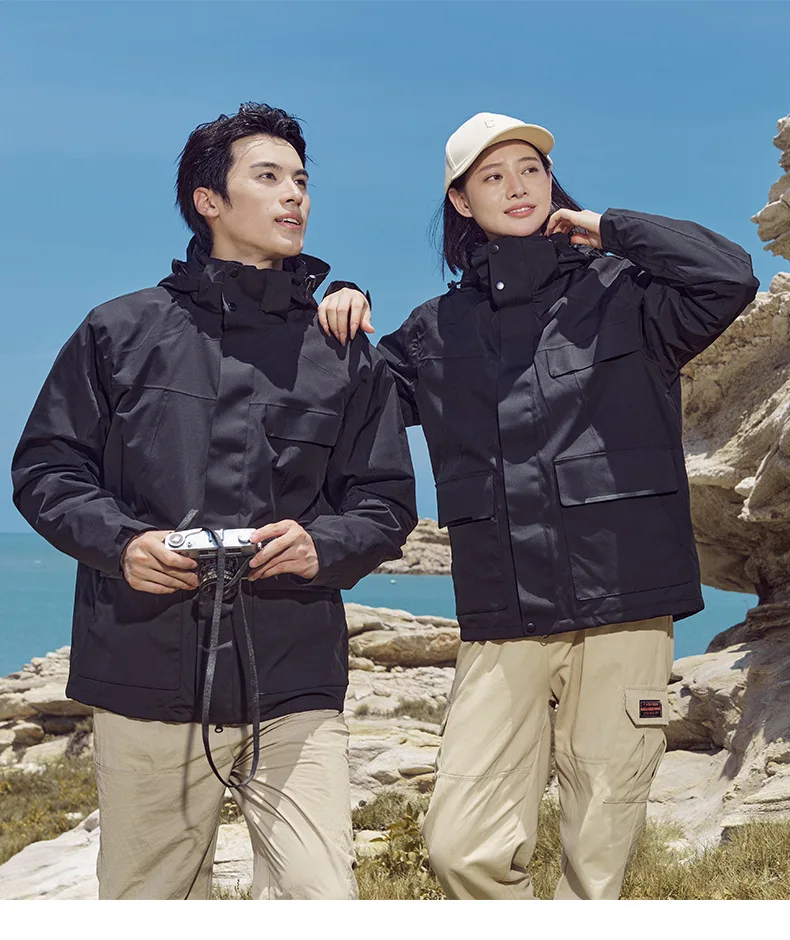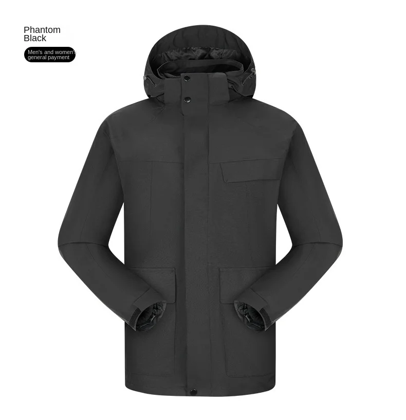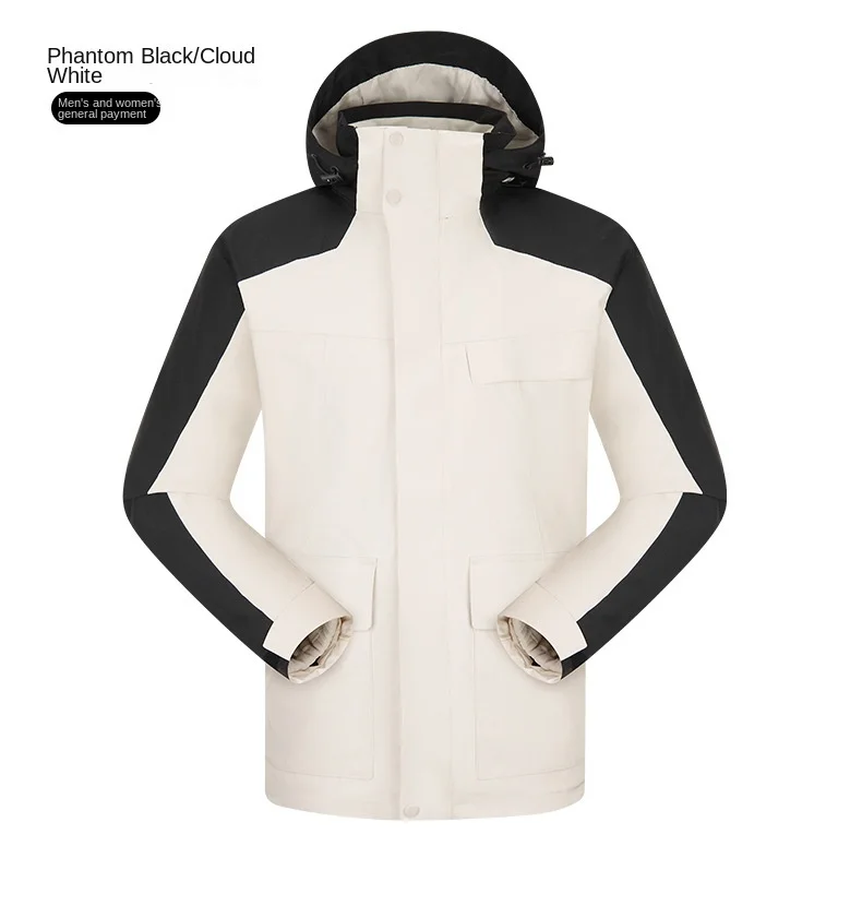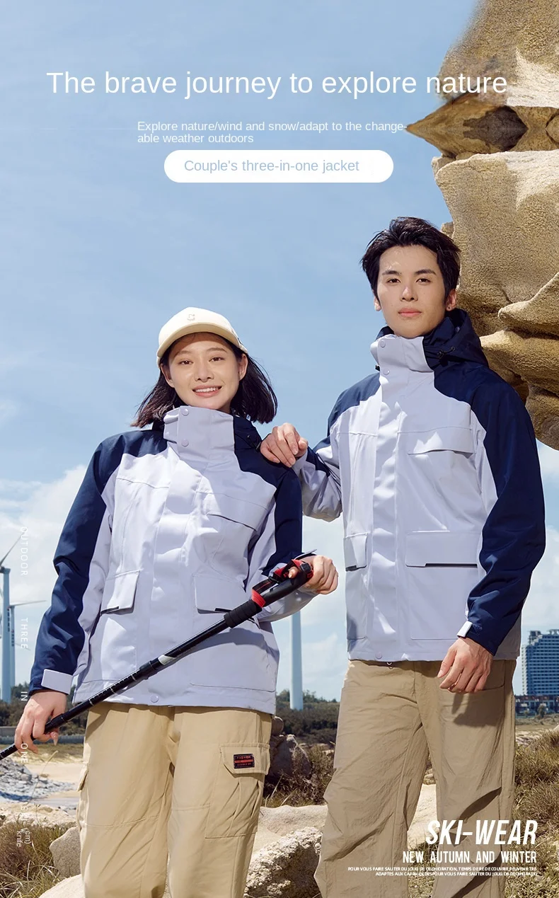 Men's Women's Three-in-One Outdoor Winter Jacket Waterproof Windproof Warm with Zipper Closure for Mountaineering Camping Hiking