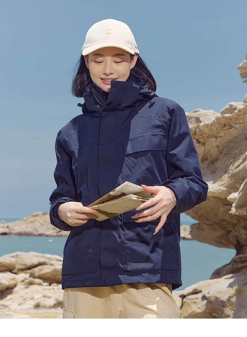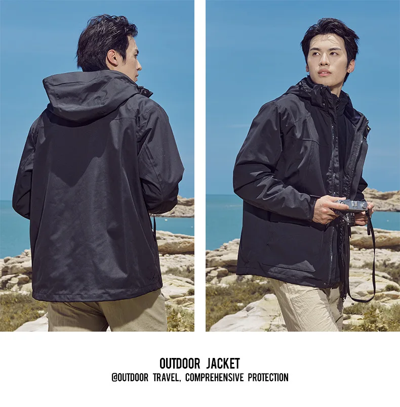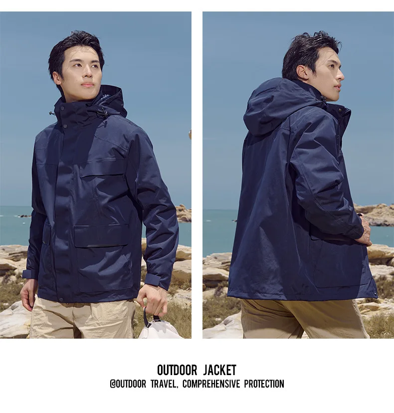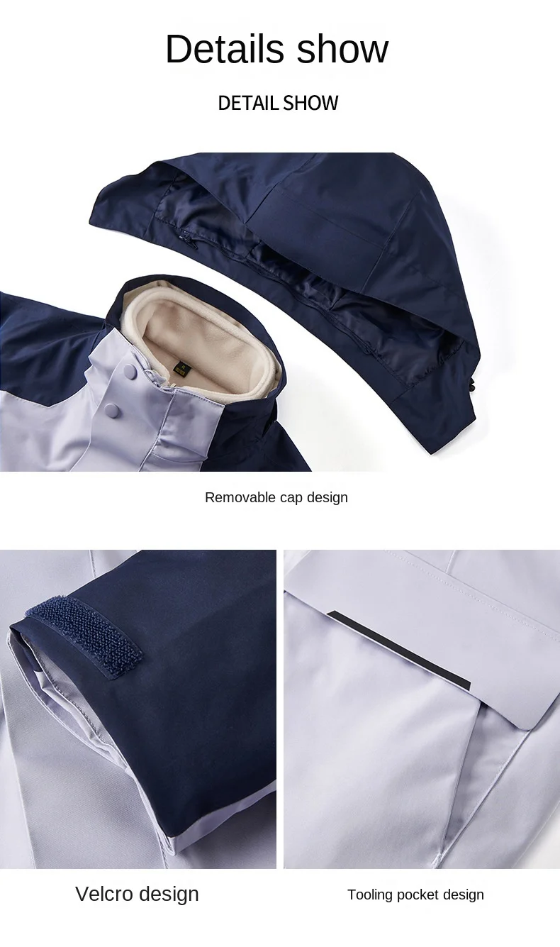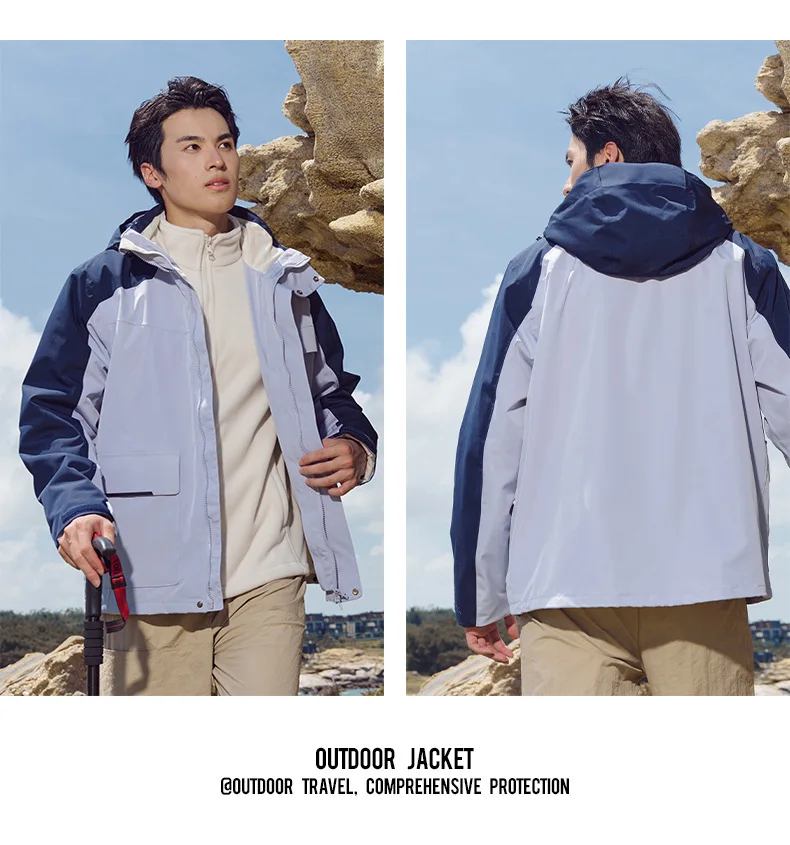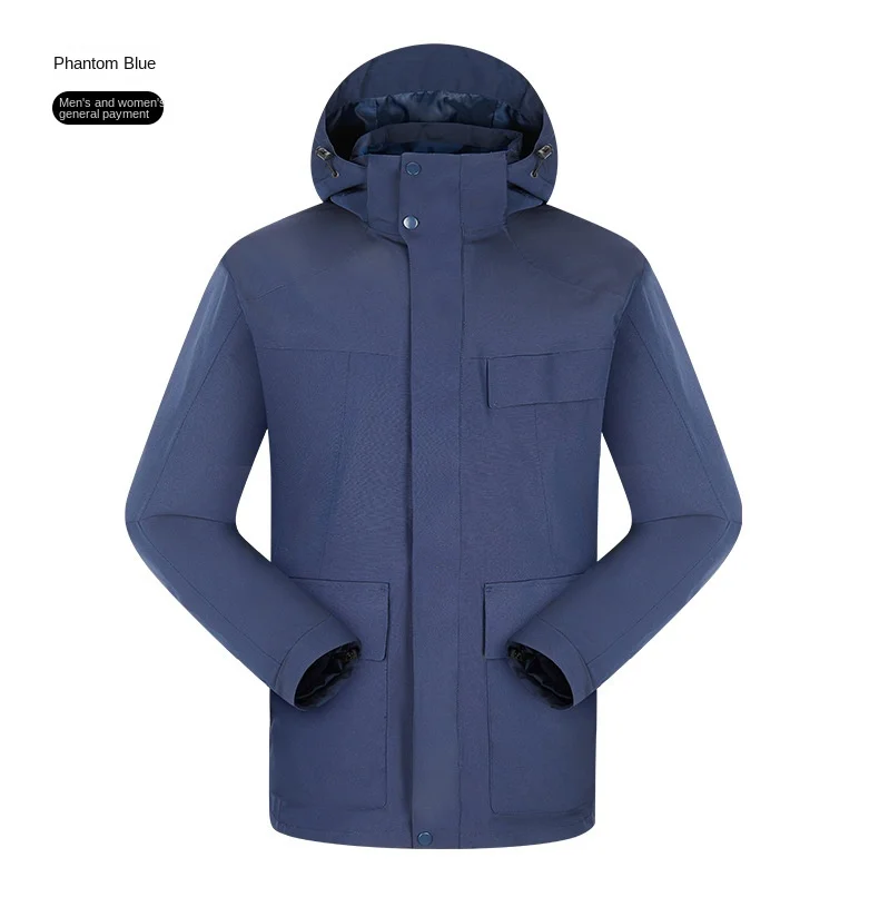 Men's Women's Three-in-One Outdoor Winter Jacket Waterproof Windproof Warm with Zipper Closure for Mountaineering Camping Hiking