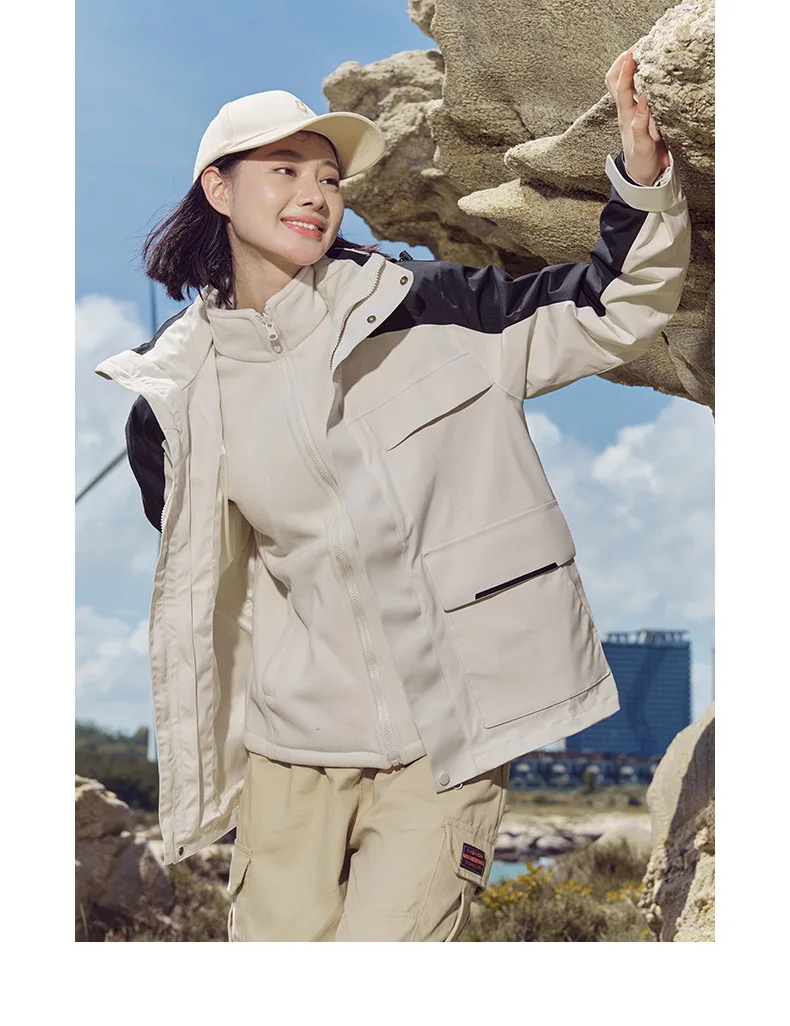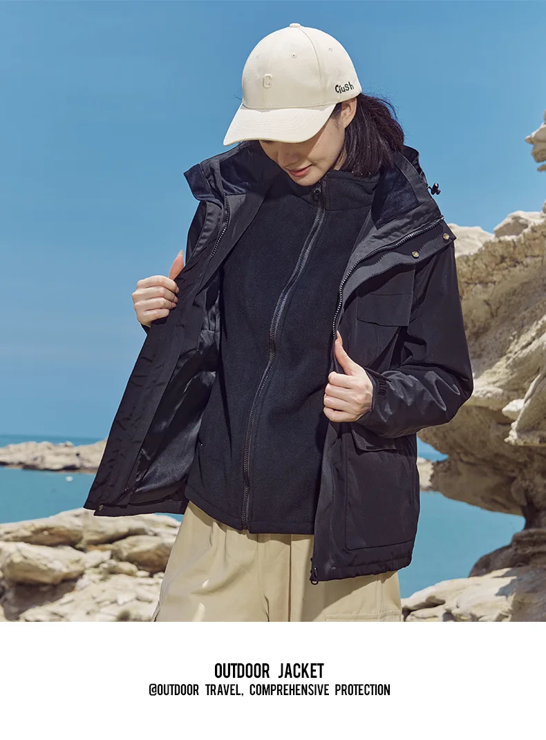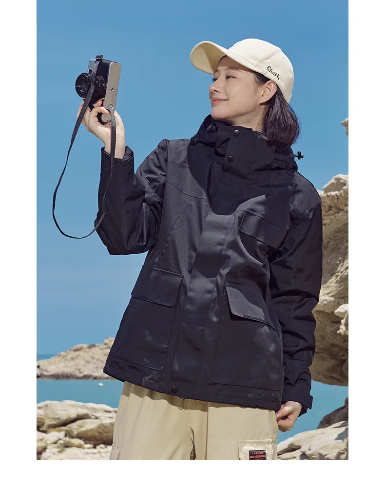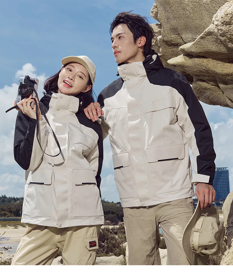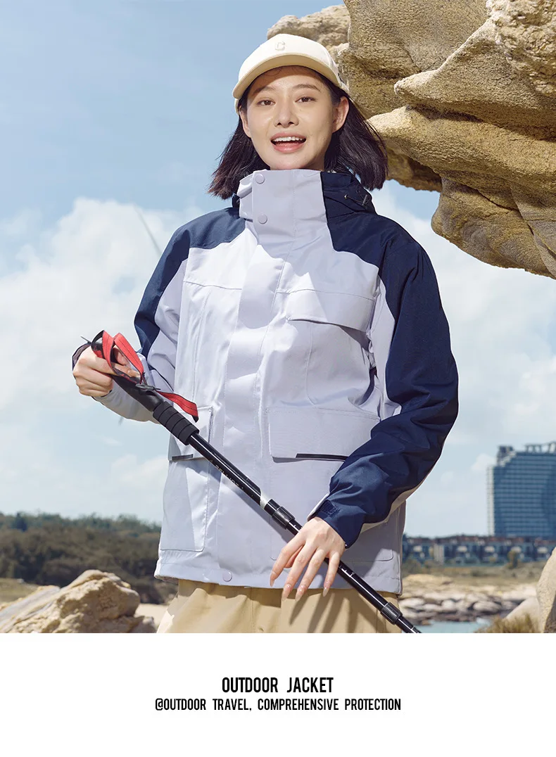 Men's Women's Three-in-One Outdoor Winter Jacket Waterproof Windproof Warm with Zipper Closure for Mountaineering Camping Hiking
