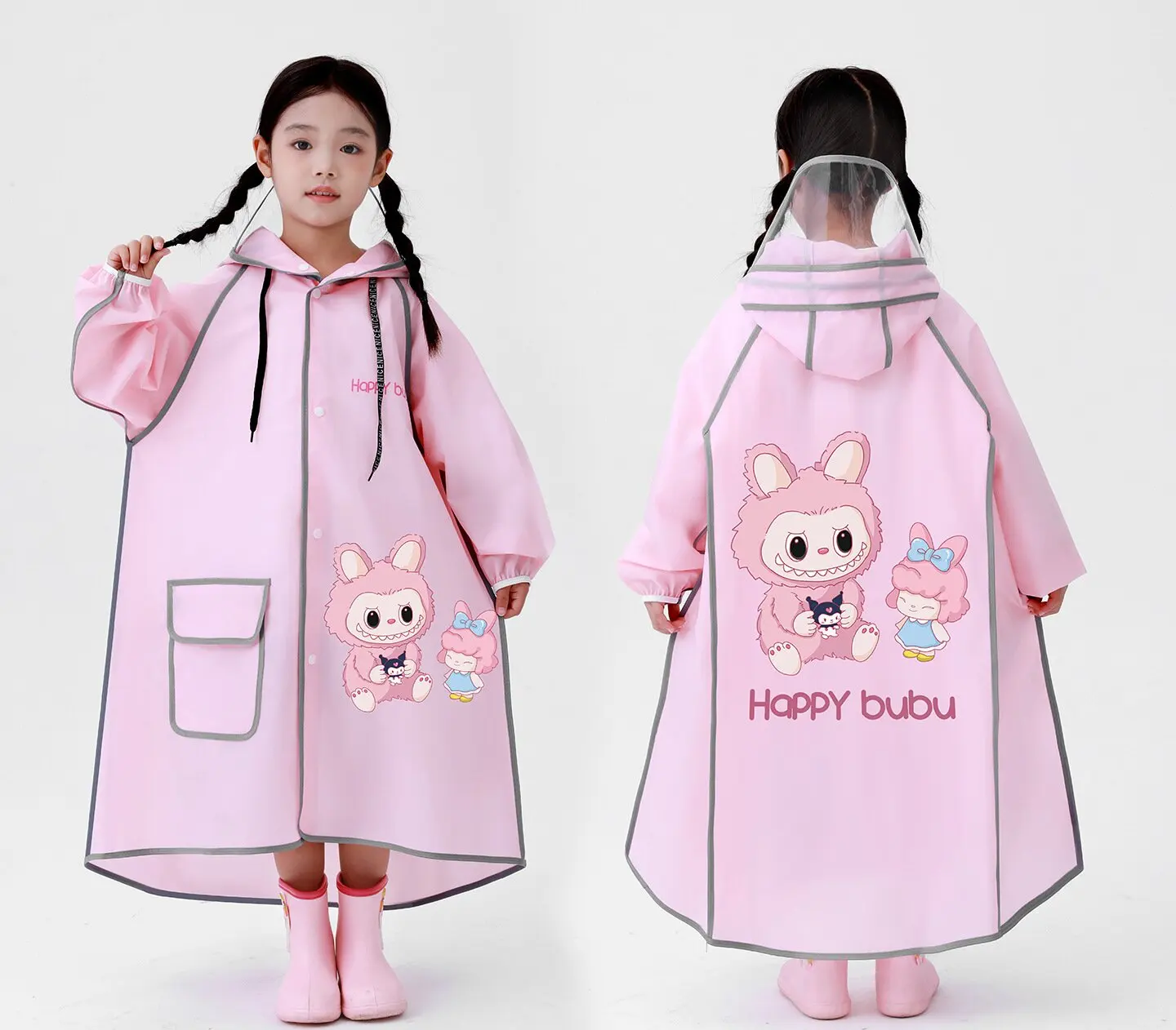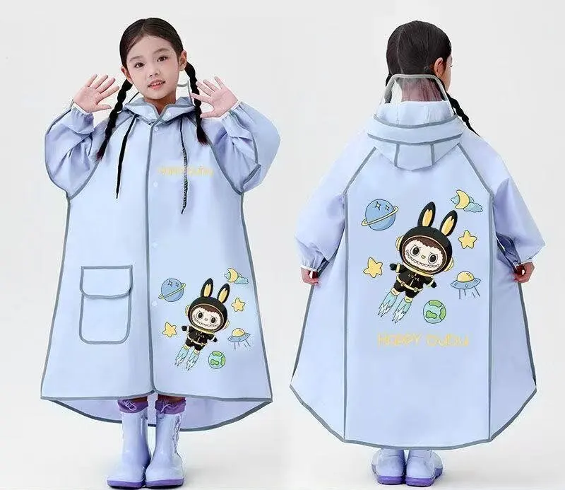 Modern Cartoon Raincoat for Girls Waterproof EVA Material for Kindergarten Elementary School Bag for Travel Outdoor Tours