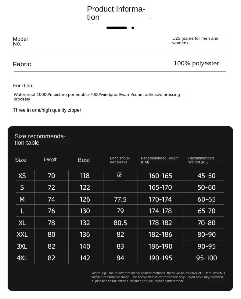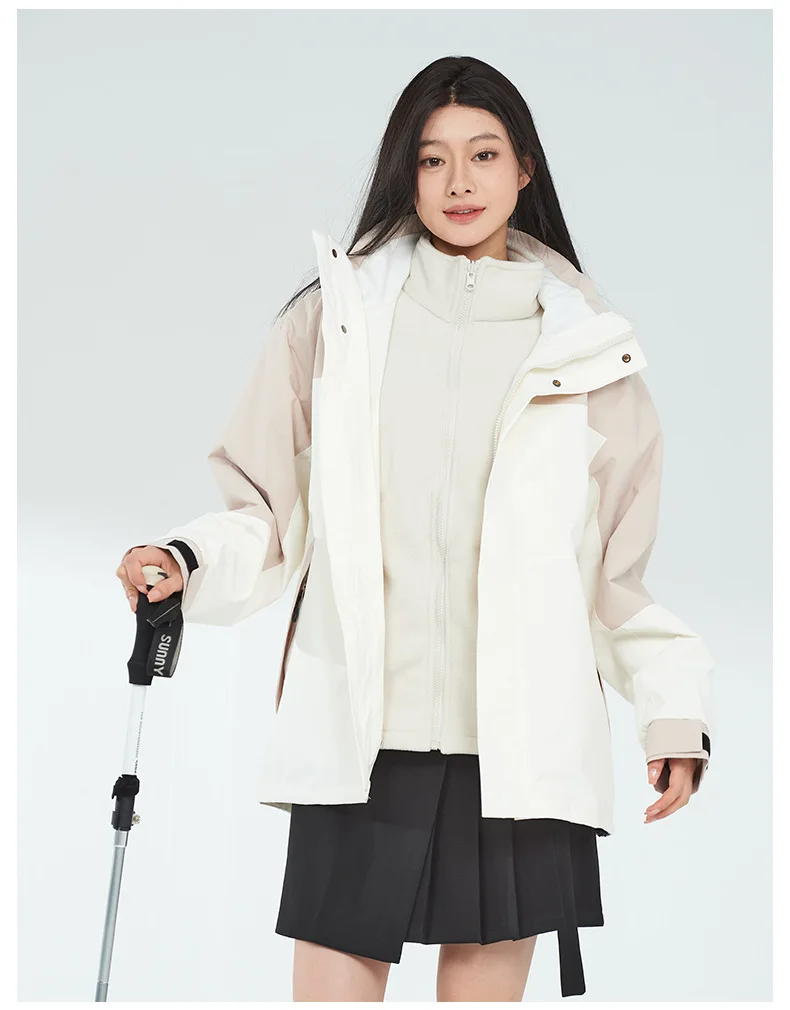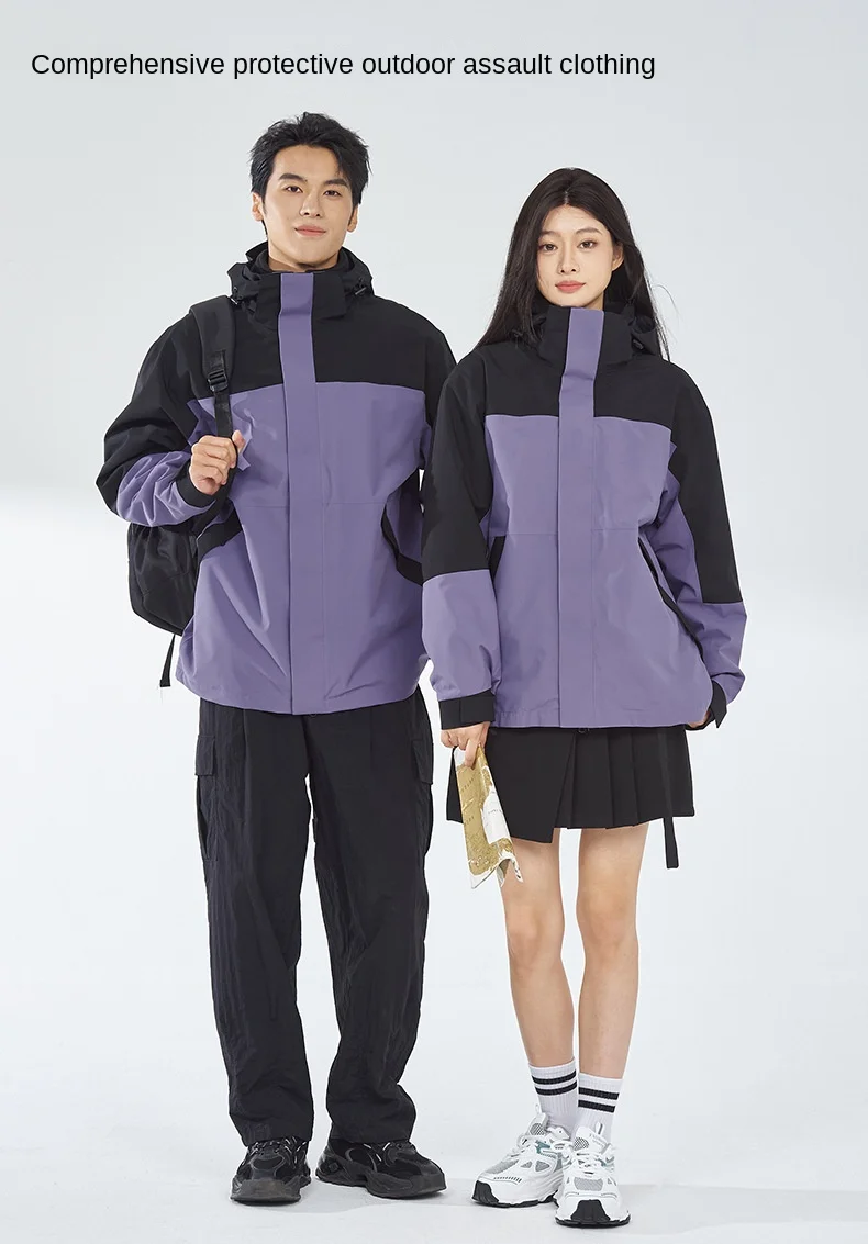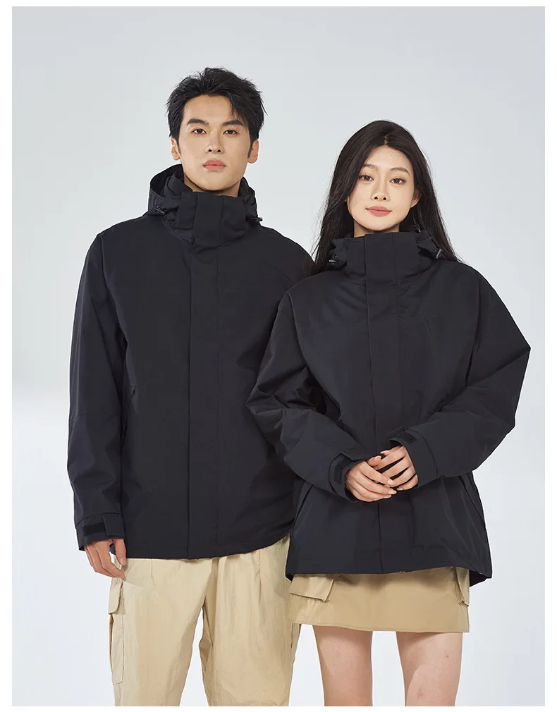 New Adhesive Outdoor Three-in-One Charge Clothes Detachable Two-piece Waterproof Windproof Winter Stand Men's Women's