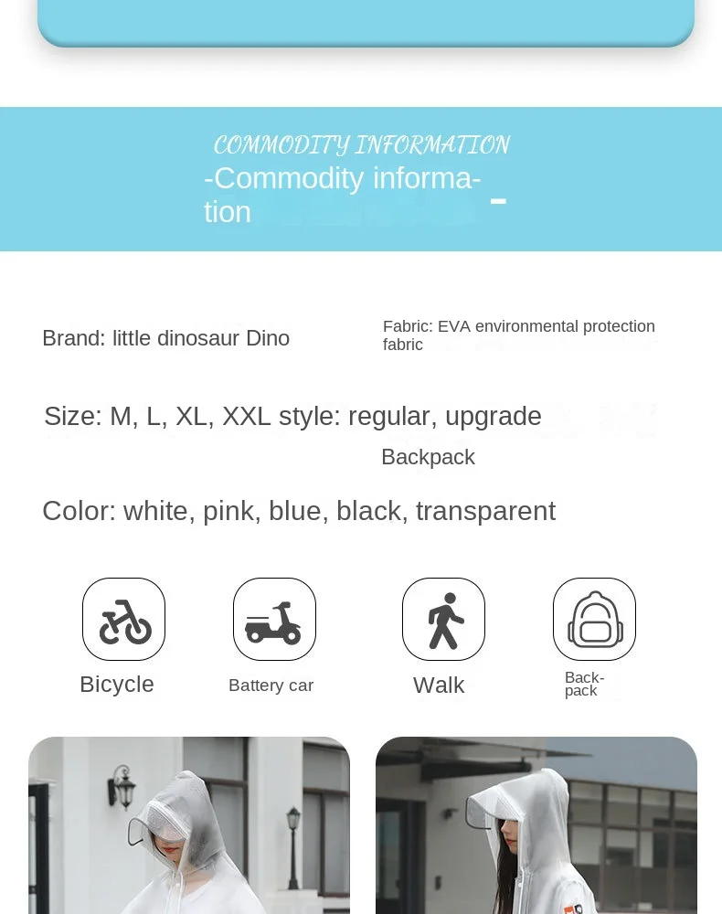 New Adult EVA Waterproof for Poncho Raincoat with Free Size for School Hiking Travel-Student Men's and Women's Backpack Raincoat