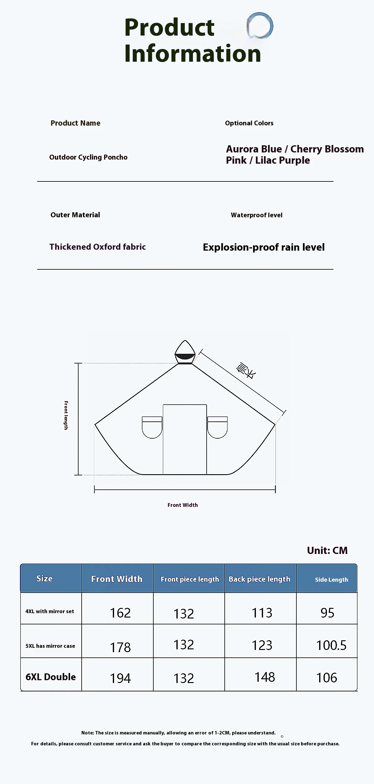 New Classic Single & Double Electric Car Body Raincoat Enlarged Thick Oxford Cloth Anti-Riot for Poncho Waterproof for Travel