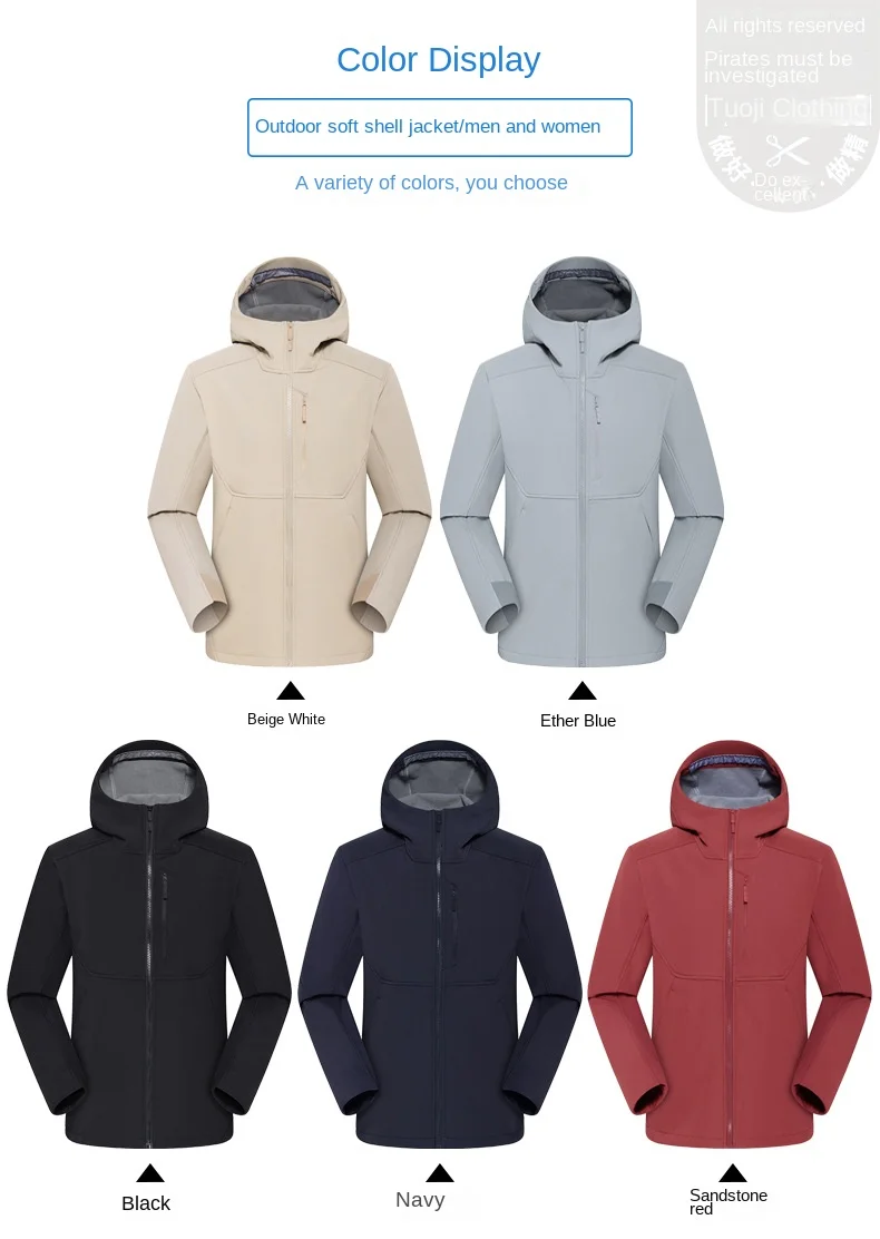 Niaojiaping New Soft Shell Rusk Clothes Men Women Winter Waterproof Windproof Fleece Single Coat Mountaineering Zipper Solid