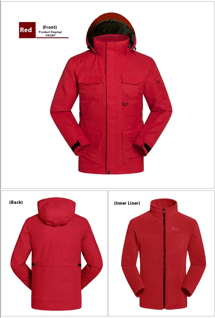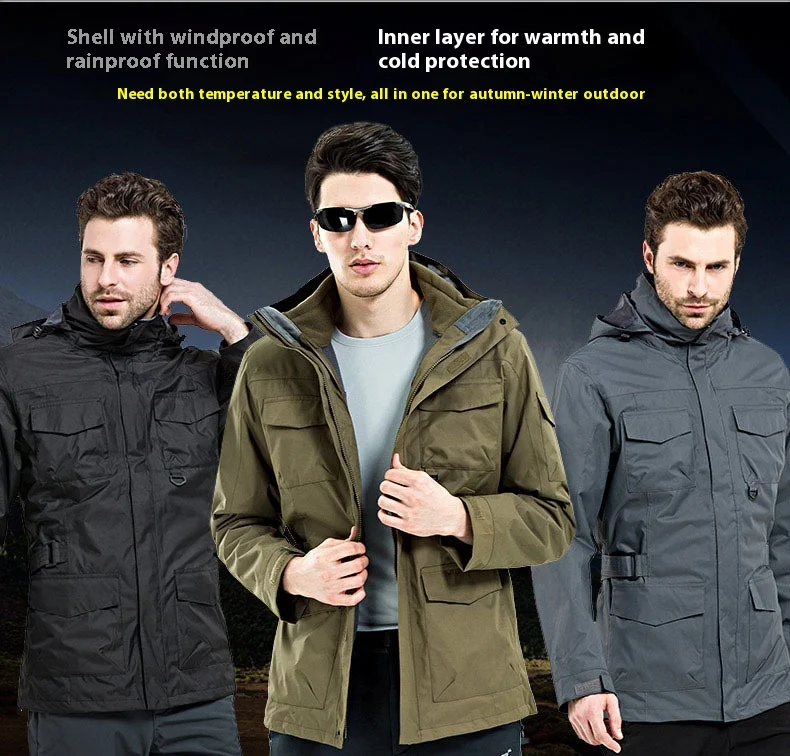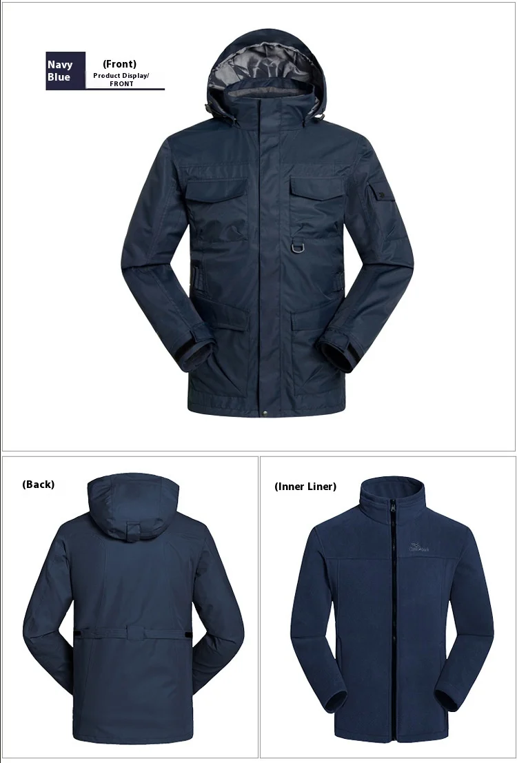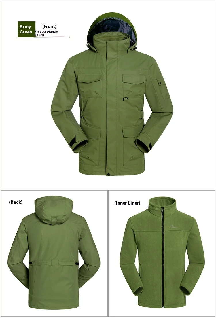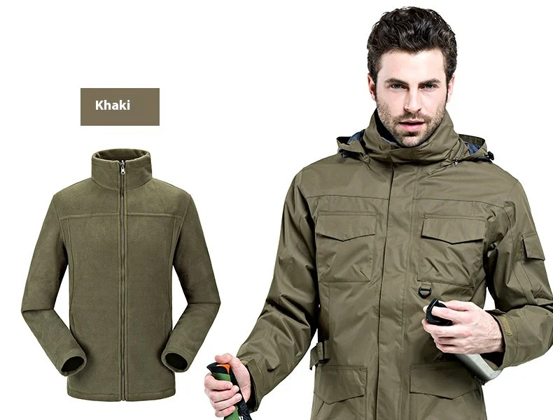 Outdoor Clothing Men's Three-in-One Detachable Fleece Waterproof Zipper Closure Nylon Two-Piece Ski Mountaineering Jacket