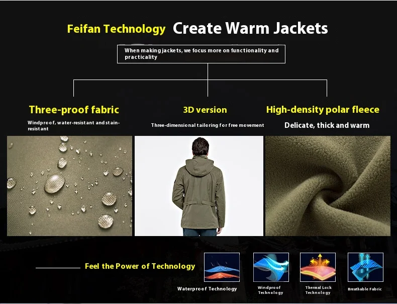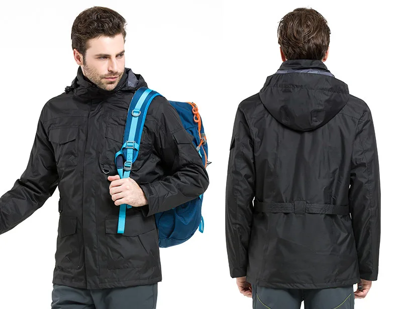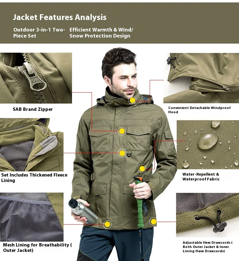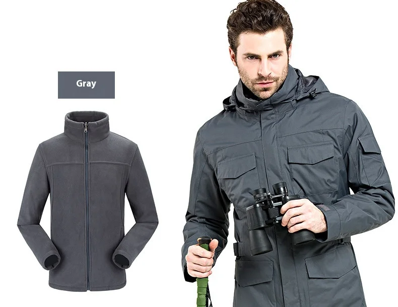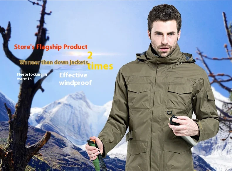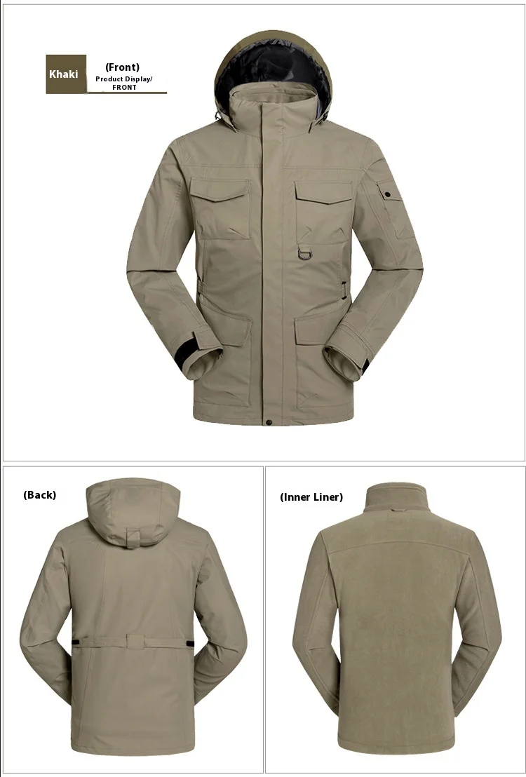 Outdoor Clothing Men's Three-in-One Detachable Fleece Waterproof Zipper Closure Nylon Two-Piece Ski Mountaineering Jacket