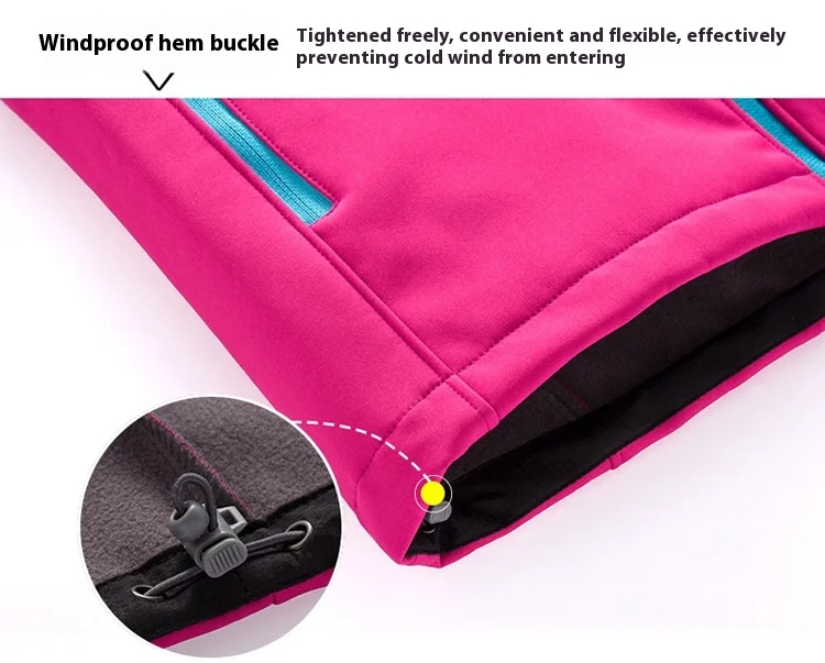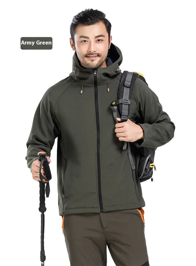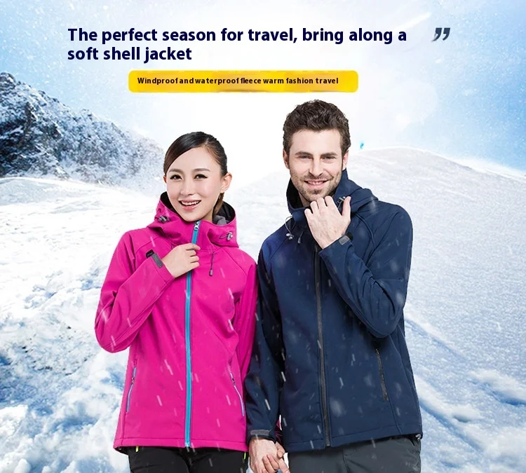 Outdoor Soft Shell Jacket for Men Women Stand Windproof Fleece-Lined Thickened for Spring Winter Mountaineering Plus Size