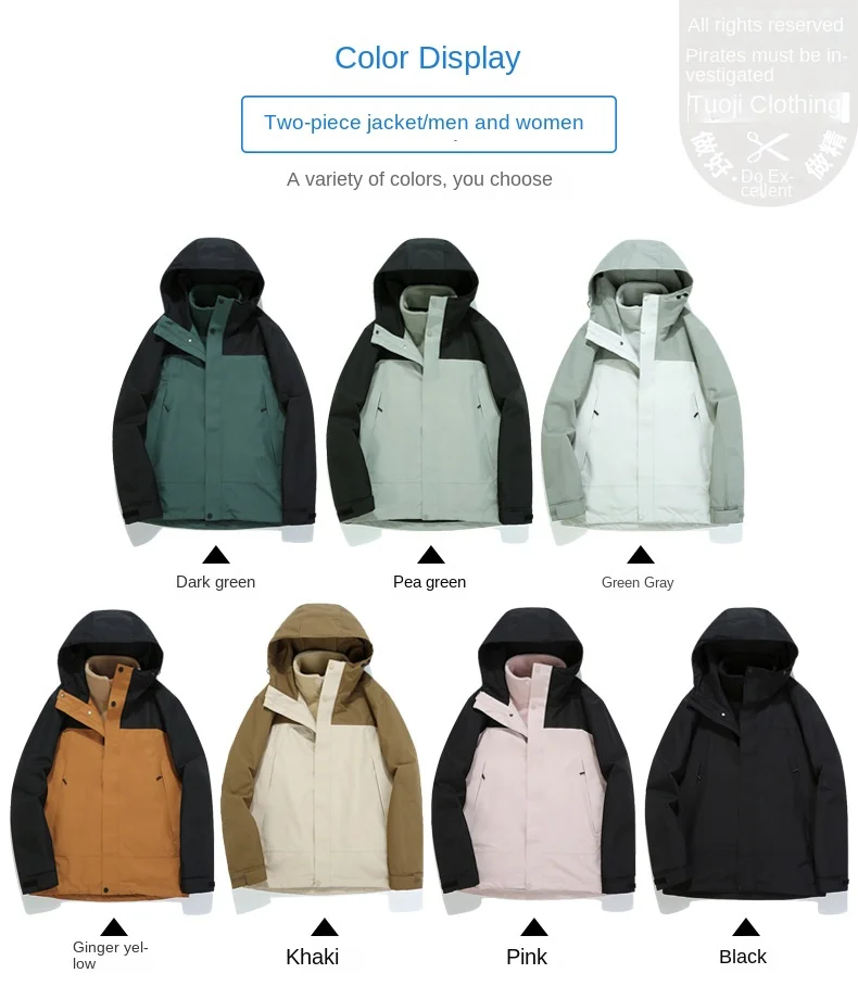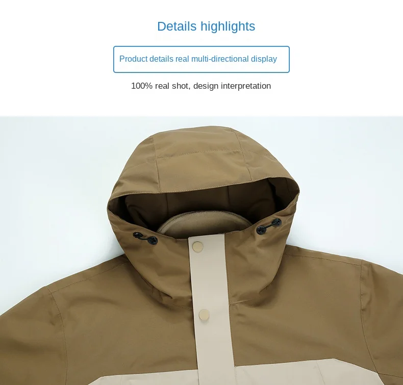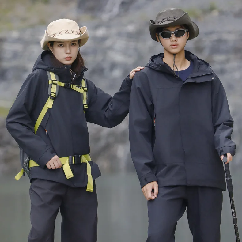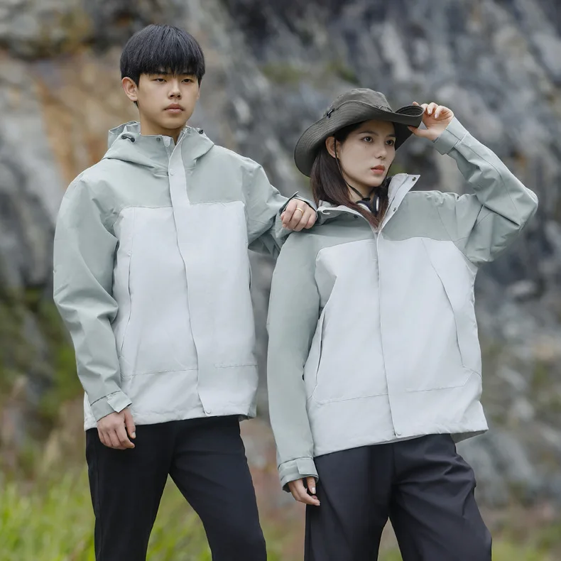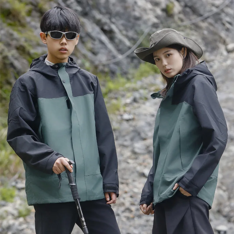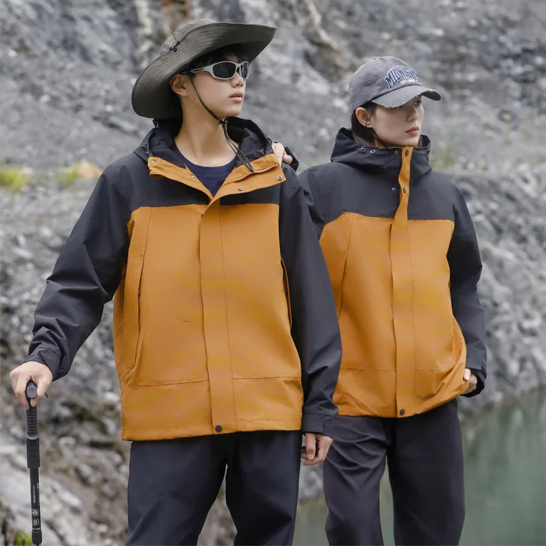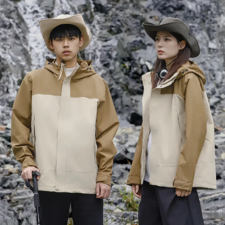 Outdoor Trendy Windproof Waterproof Hooded Long-sleeved Jacket for Men Women Spring Autumn Winter Casual Mountaineering Solid