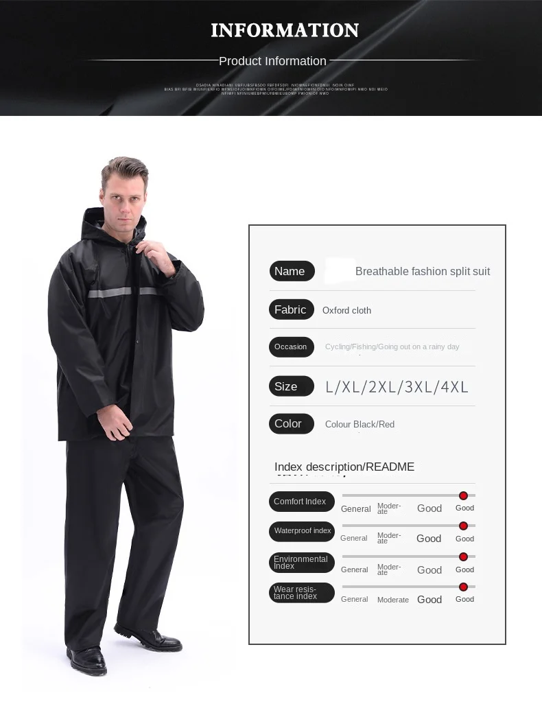 Oxford Cloth Thickened Waterproof Windproof Single-Person Hiking Camping Long Raincoat & Rain Pants Set
